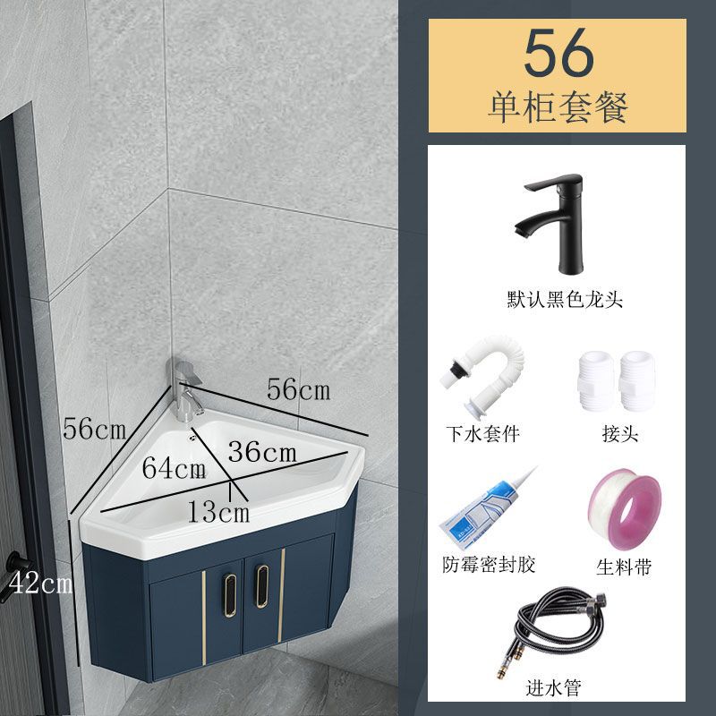 • Blue-5656 세면대 캐비닛 + 배수구 + 수도꼭지 + 삼각형 거울 캐비닛