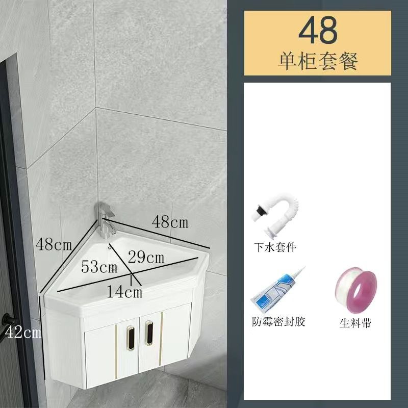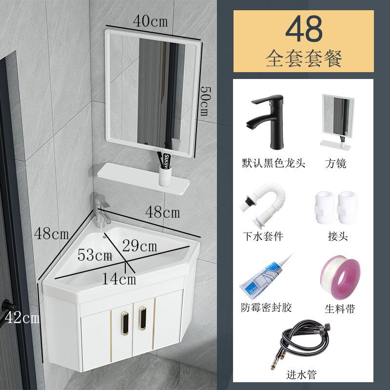 • 화이트-4848 세면대 캐비닛 + 배수구 + 수도꼭지 + 삼각형 거울 캐비닛