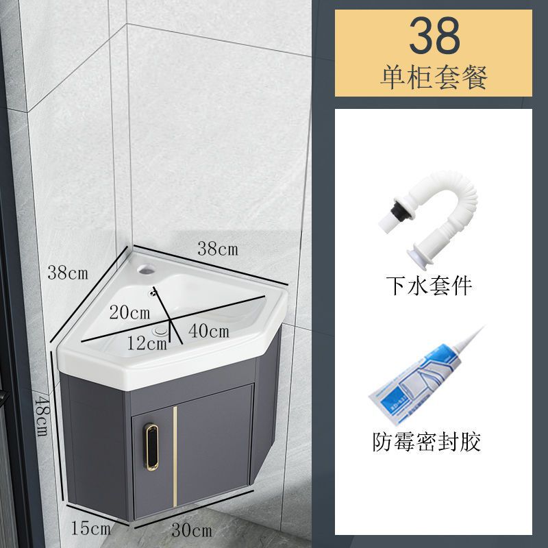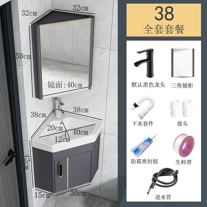• 그레이-3838 세면대 캐비닛 + 배수구 + 수도꼭지 + 삼각 거울 캐비닛