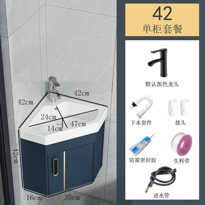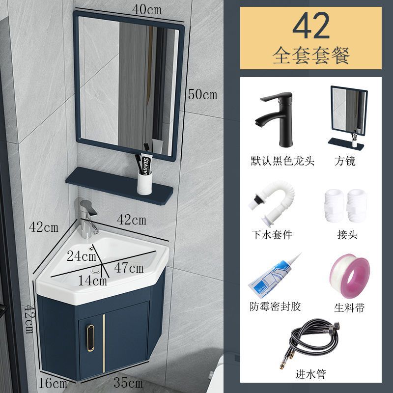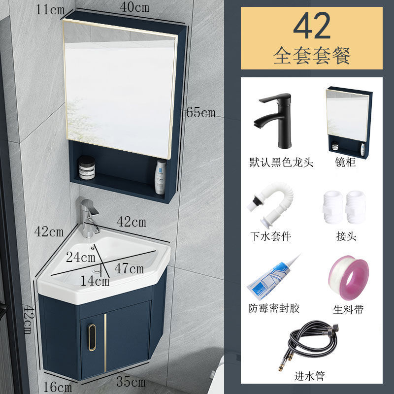 • Blue-4242 세면대 캐비닛 + 배수구 + 수도꼭지 + 삼각형 거울 캐비닛