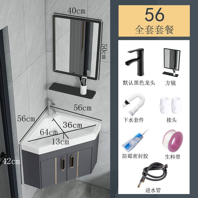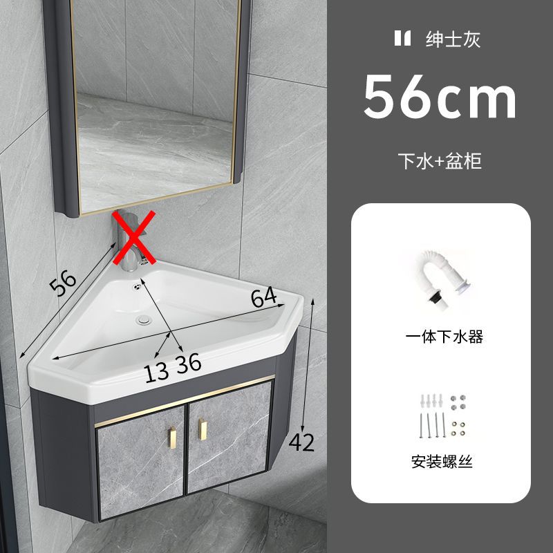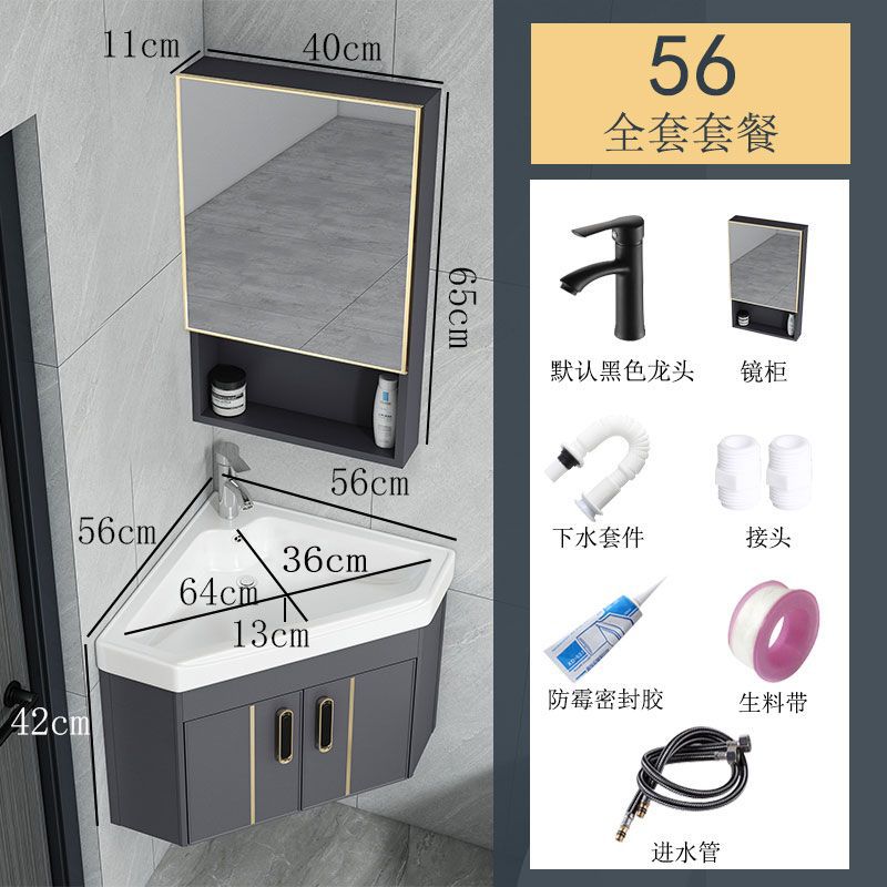 • 그레이-5656 세면대 캐비닛 + 배수구 + 수도꼭지 + 삼각 거울 캐비닛