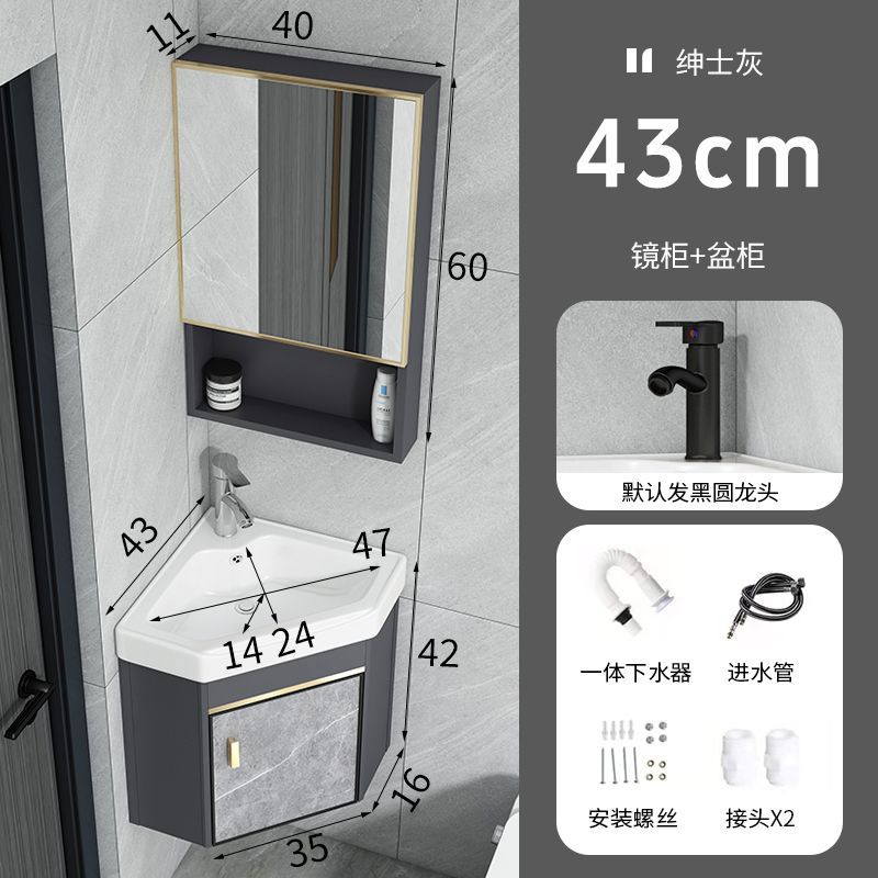• 그레이-4242 세면대 캐비닛 + 배수구 + 수도꼭지 + 삼각 거울 캐비닛