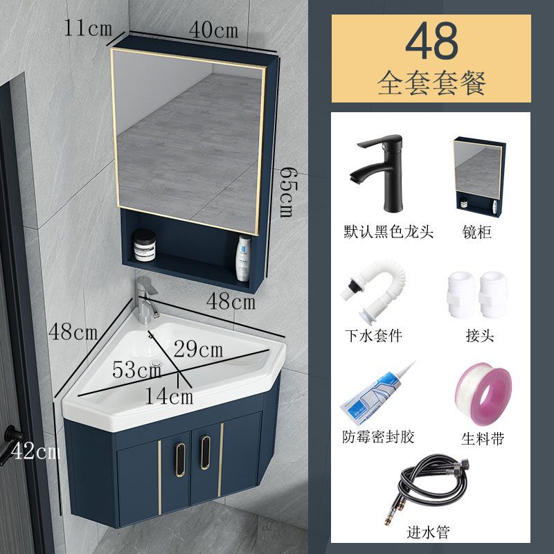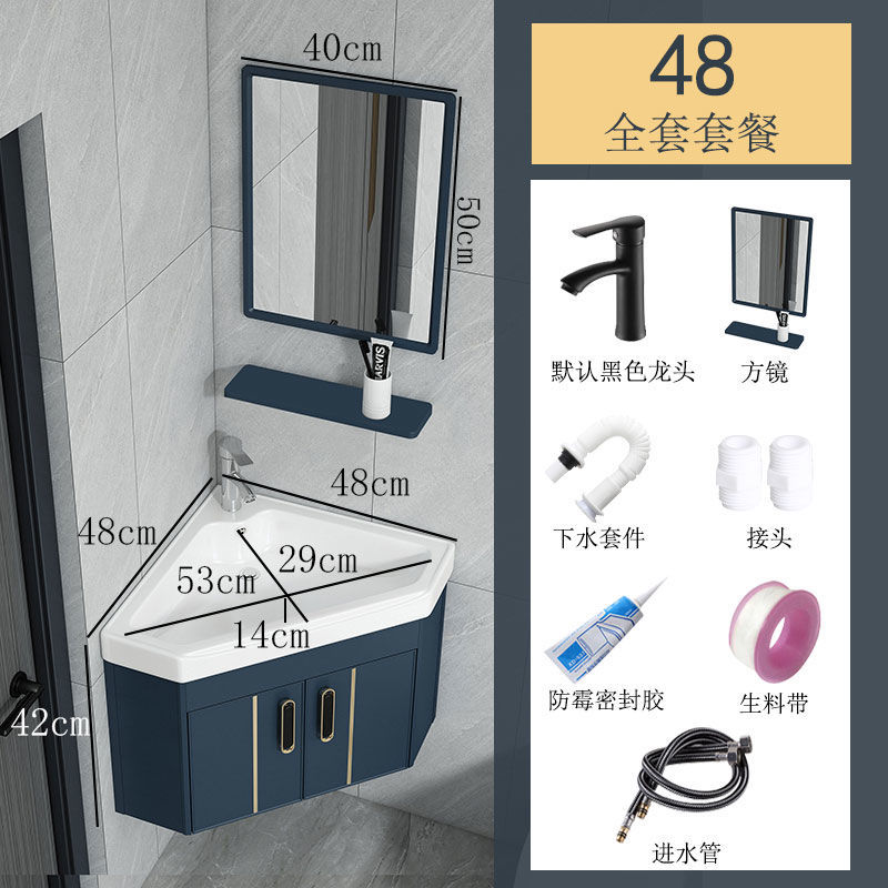 • Blue-4848 세면대 캐비닛 + 배수구 + 수도꼭지 + 삼각형 거울 캐비닛