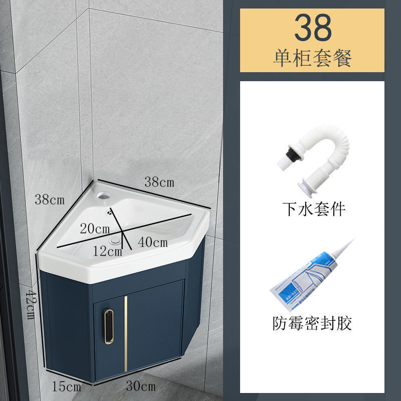 • Blue-3838 세면대 캐비닛 + 배수구 + 수도꼭지 + 삼각형 거울 캐비닛