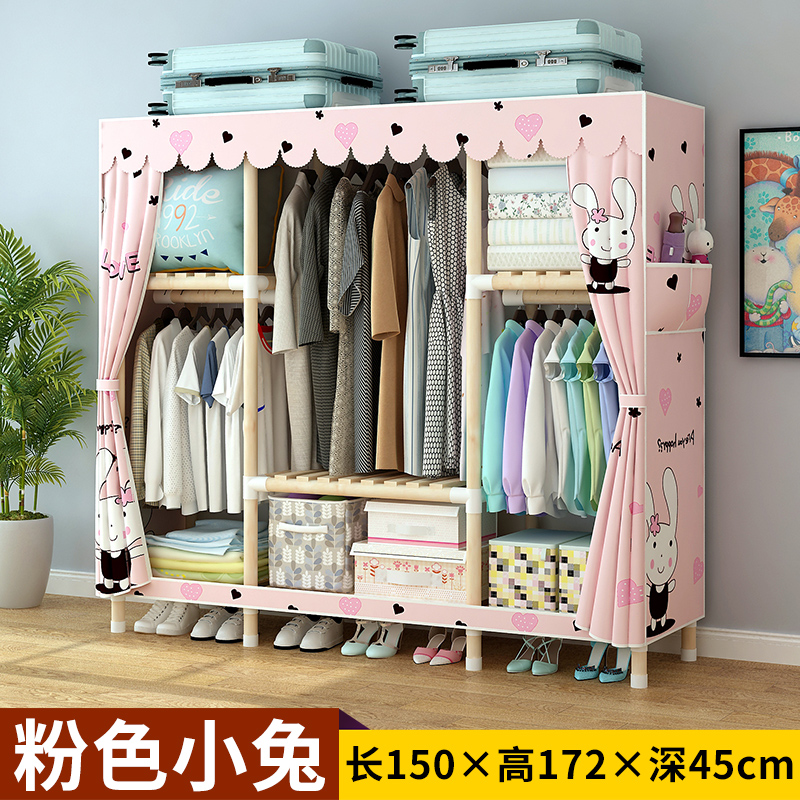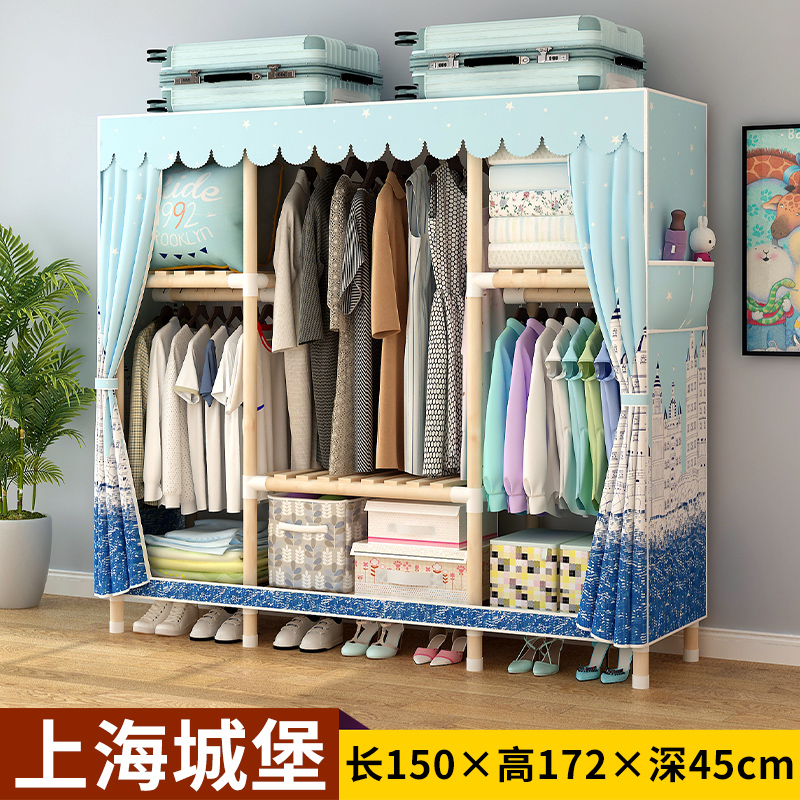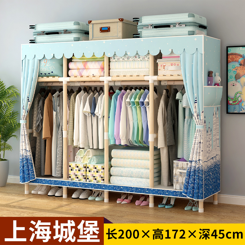간단한 옷장 홈 침실 임대 방 현대 간단한 천 캐비닛 단단한 나무 저장 경제적 인 교수형 옷장