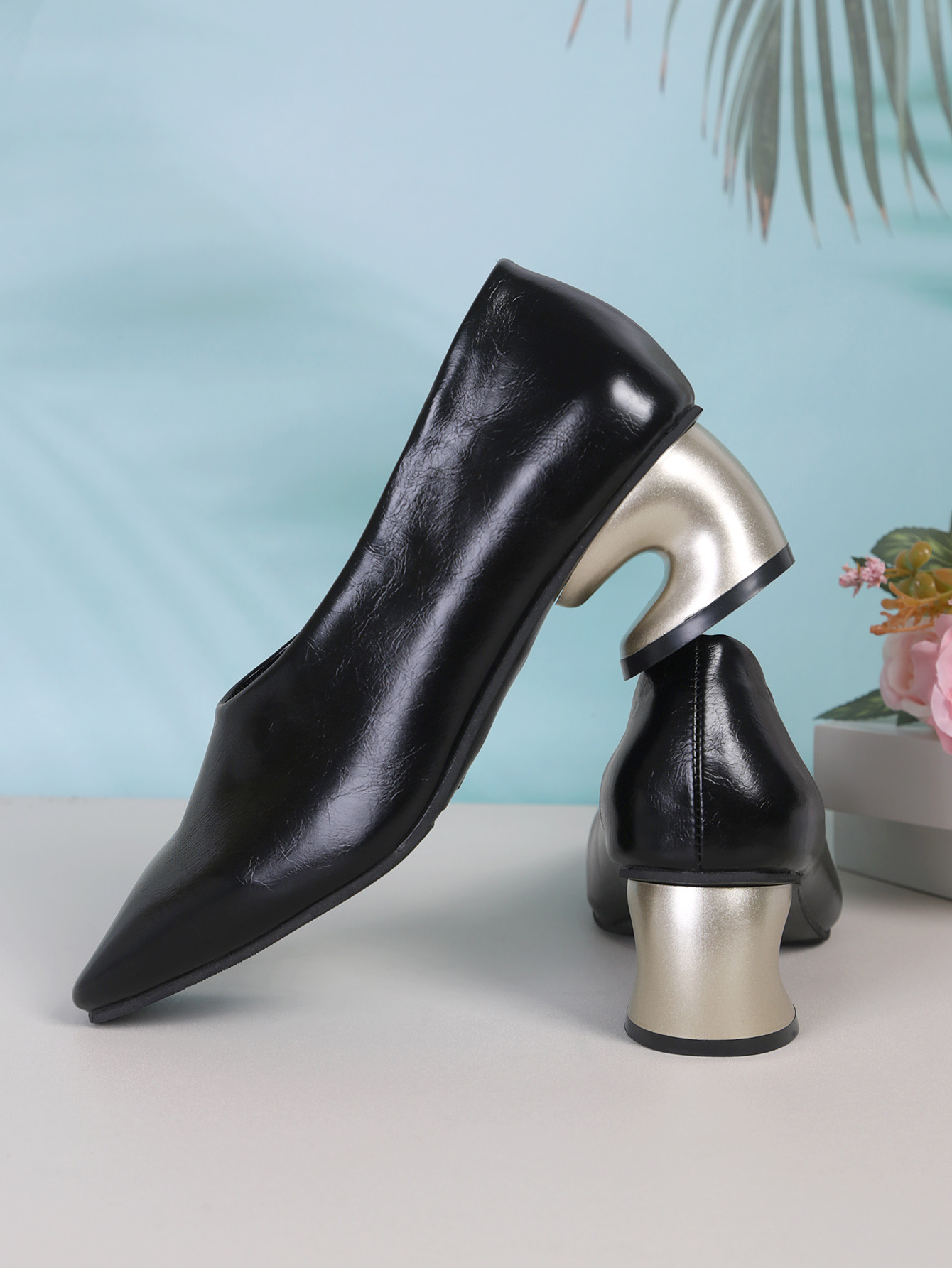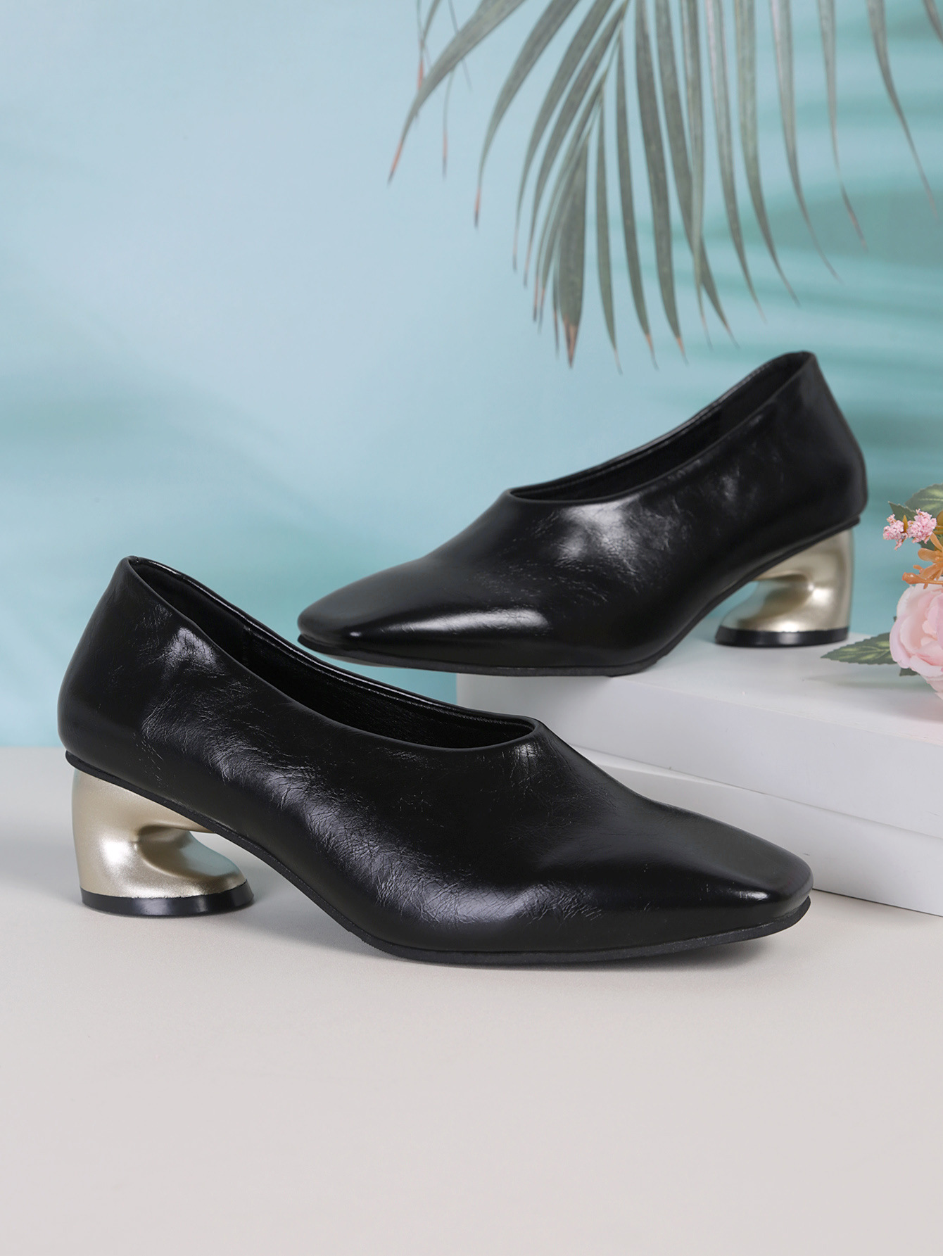 여성을위한 크로스 보더 대형 특수 모양의 힐 싱글 슈즈 2025 봄, 가을 새로운 유럽과 미국 스타일의 세련된 스퀘어 토 다용도 두꺼운 힐 작은 가죽 신발