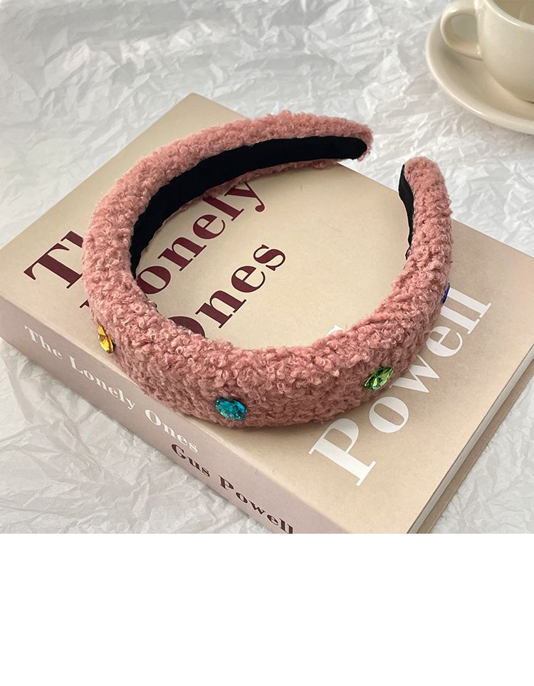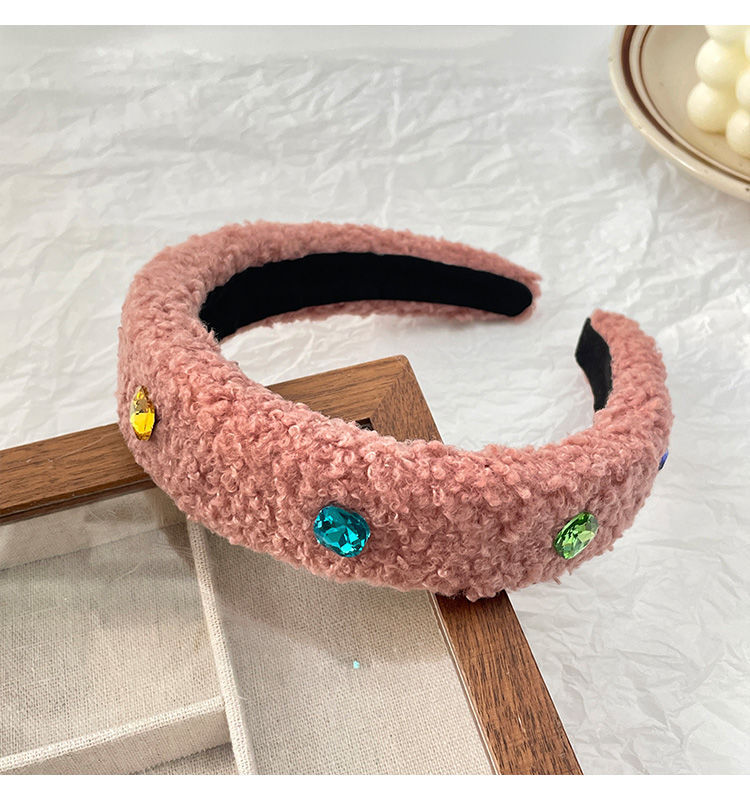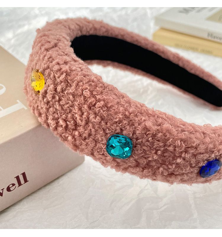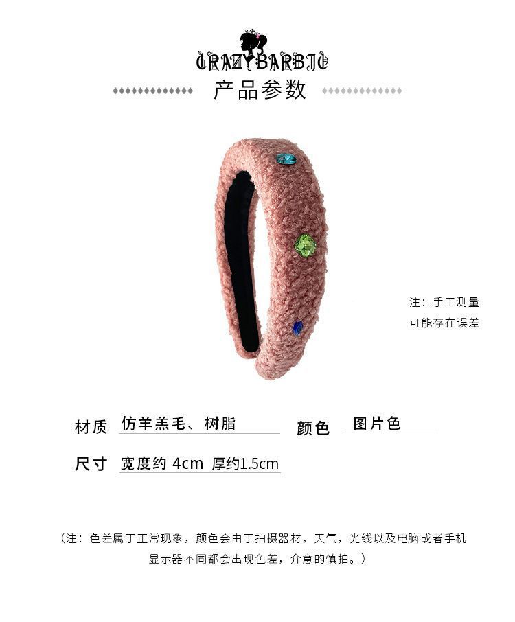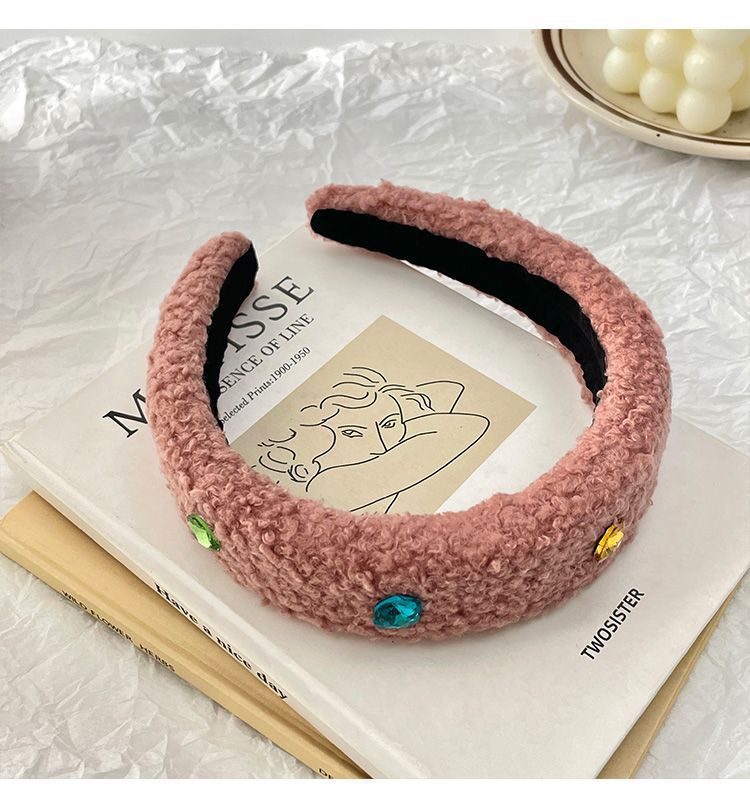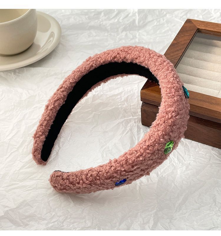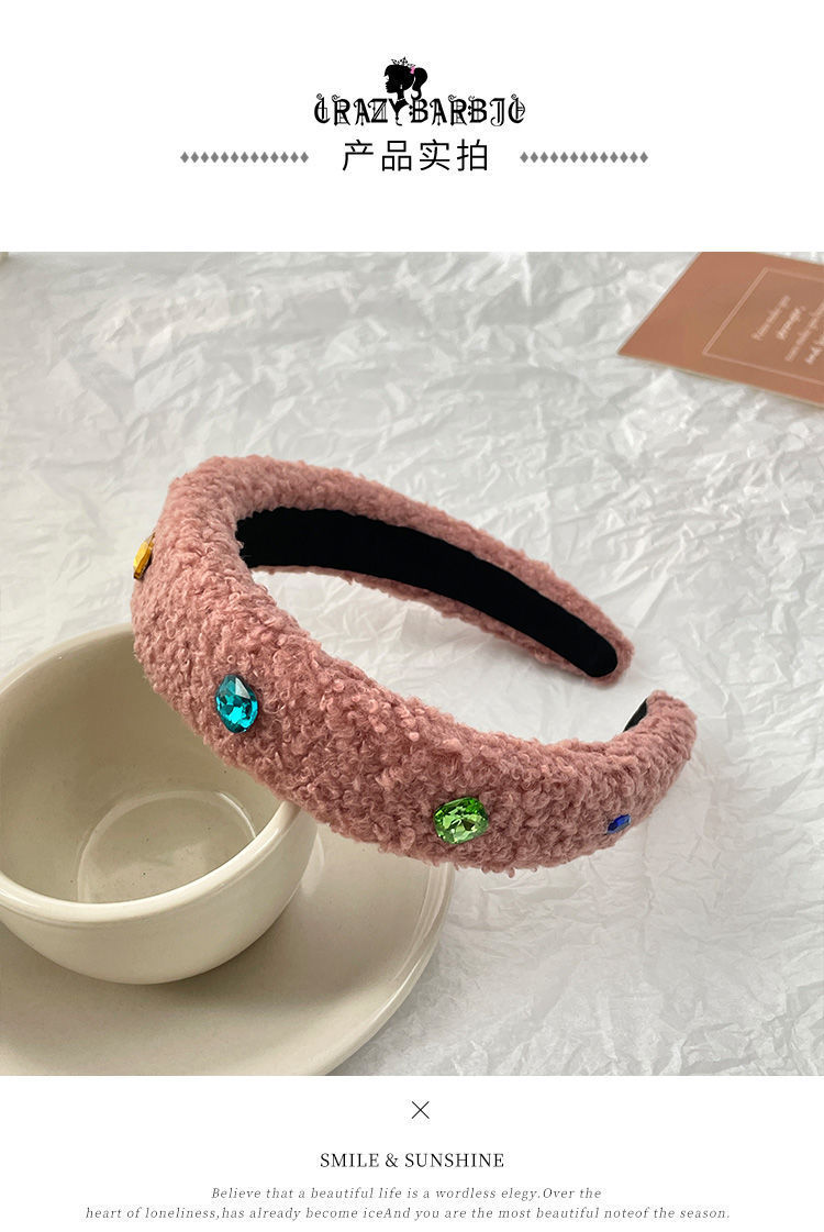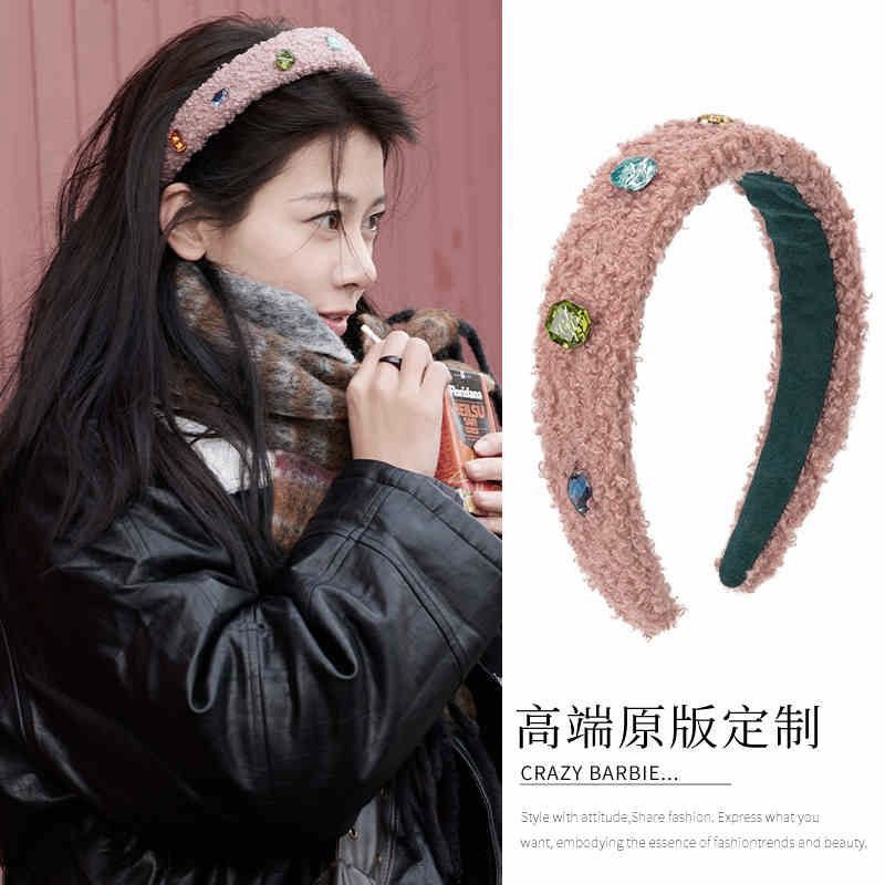 Huaer와 Junior Zhao Zhaoyi 같은 스타일의 머리띠 머리띠 핑크 봉제 색 돌 헤드웨어 가을 및 겨울 여성의 새로운 높은 두개골 탑