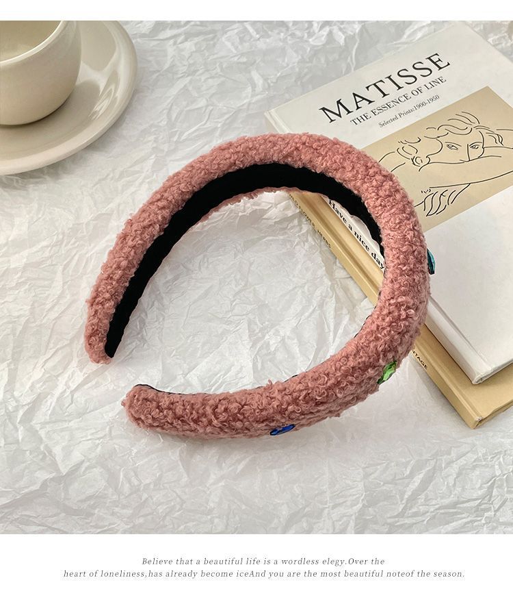Huaer와 Junior Zhao Zhaoyi 같은 스타일의 머리띠 머리띠 핑크 봉제 색 돌 헤드웨어 가을 및 겨울 여성의 새로운 높은 두개골 탑스토어 가기