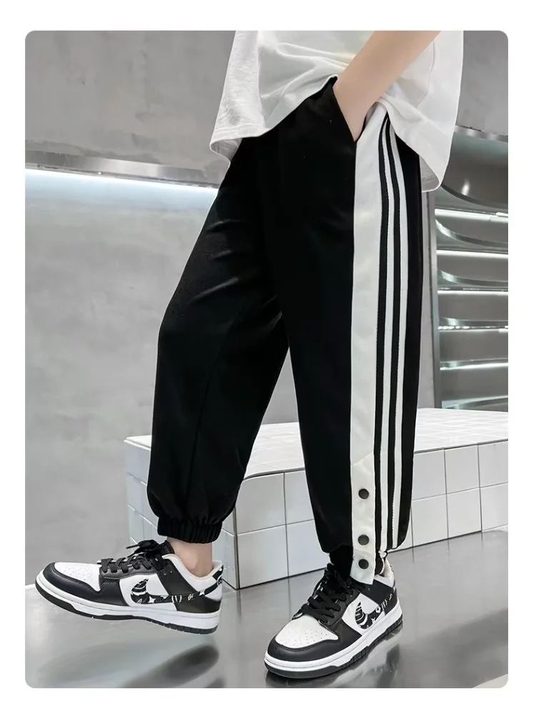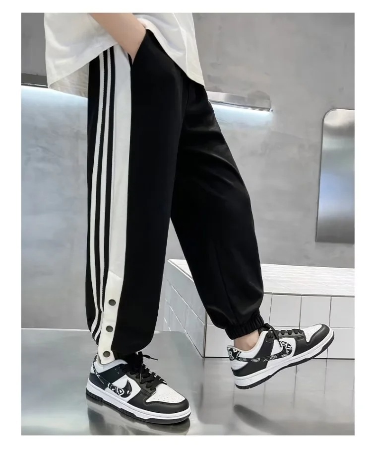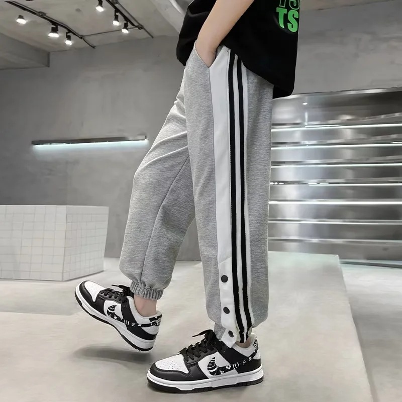 아동복 소년 바지 2024 년 봄과 가을 새로운 대형 어린이 울퉁불퉁 한 소년 버클 바지 어린이 스포츠 땀 바지