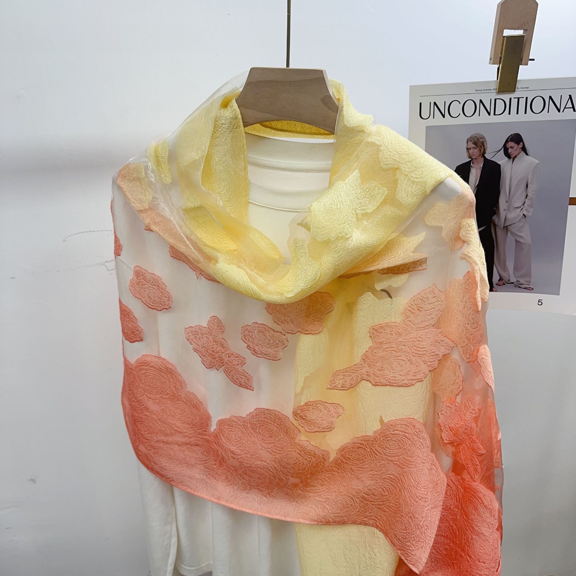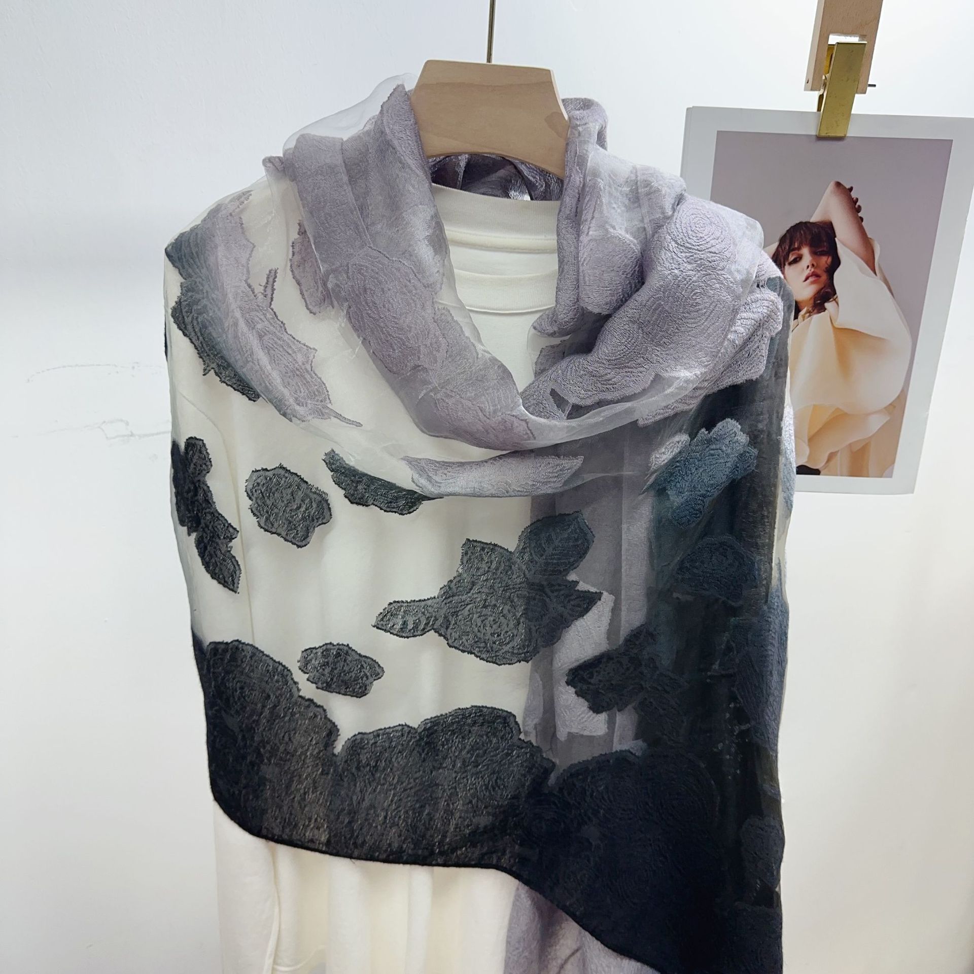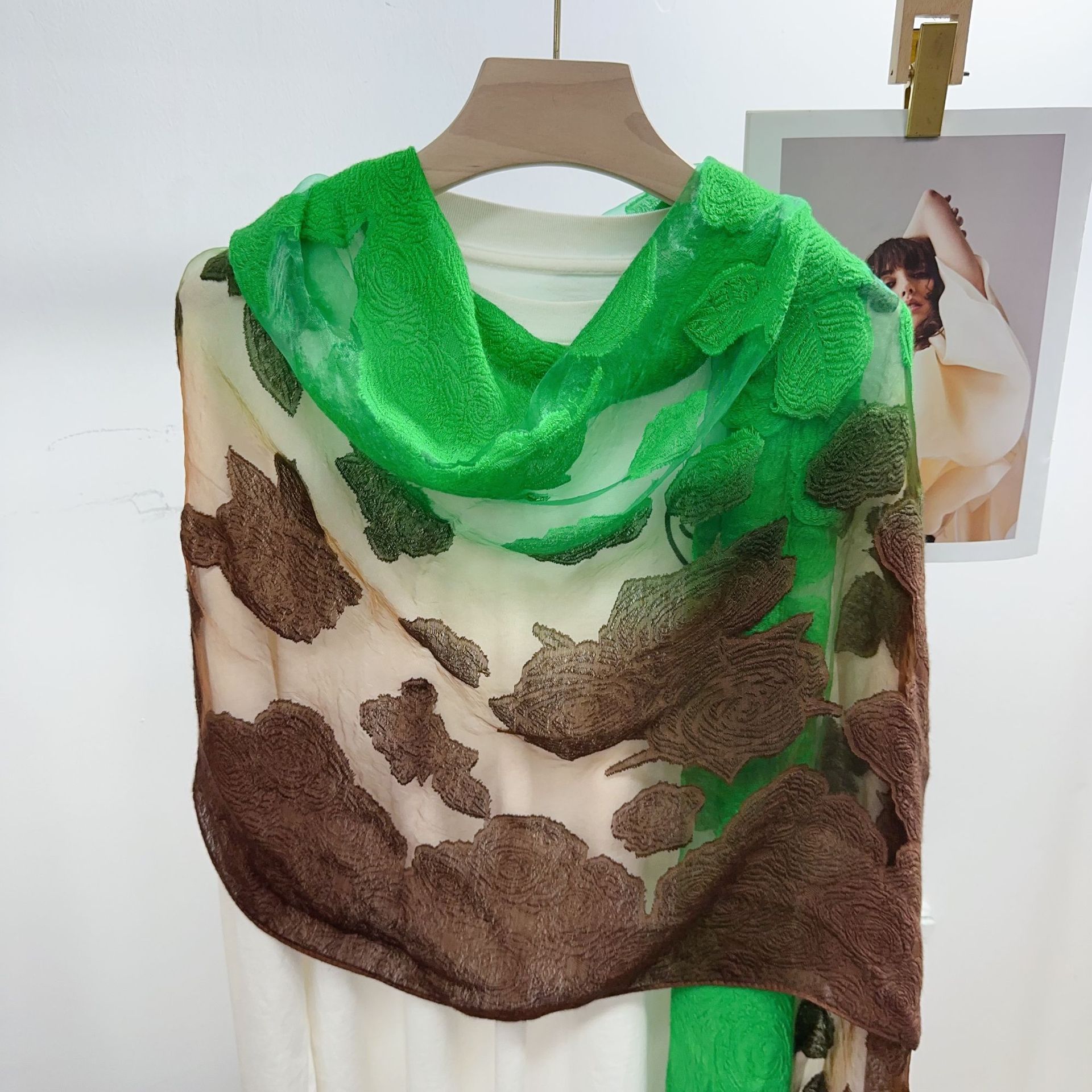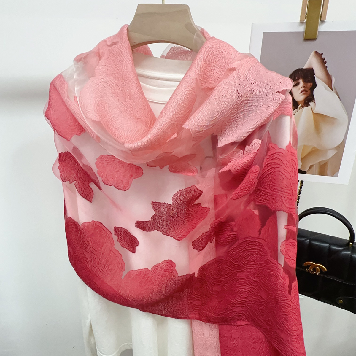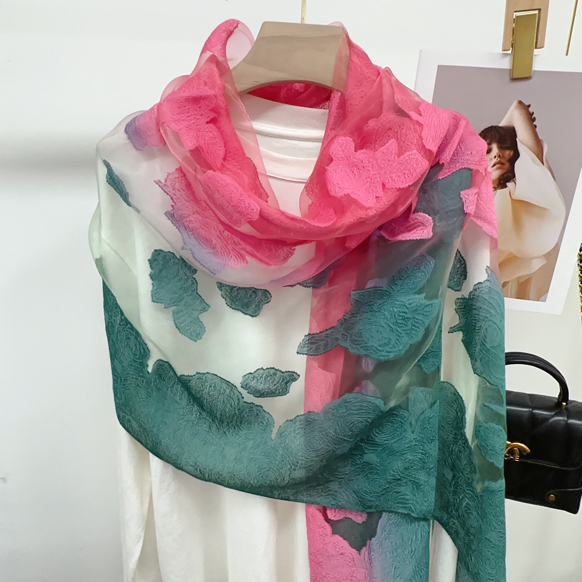 국경을 넘나 드는 새 스카프 여성의 봄과 가을 한국식 오간자 장미 컷 꽃 그라디언트 긴 스카프 외부 목도리스토어 가기