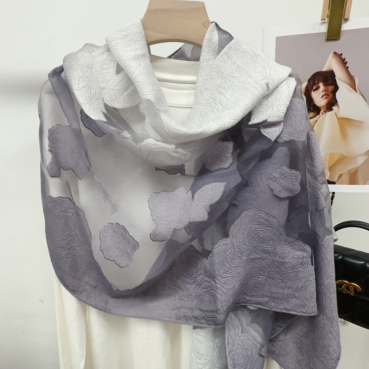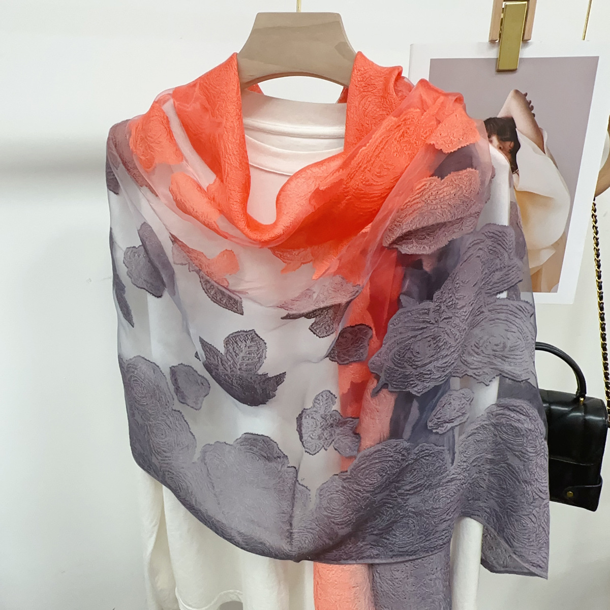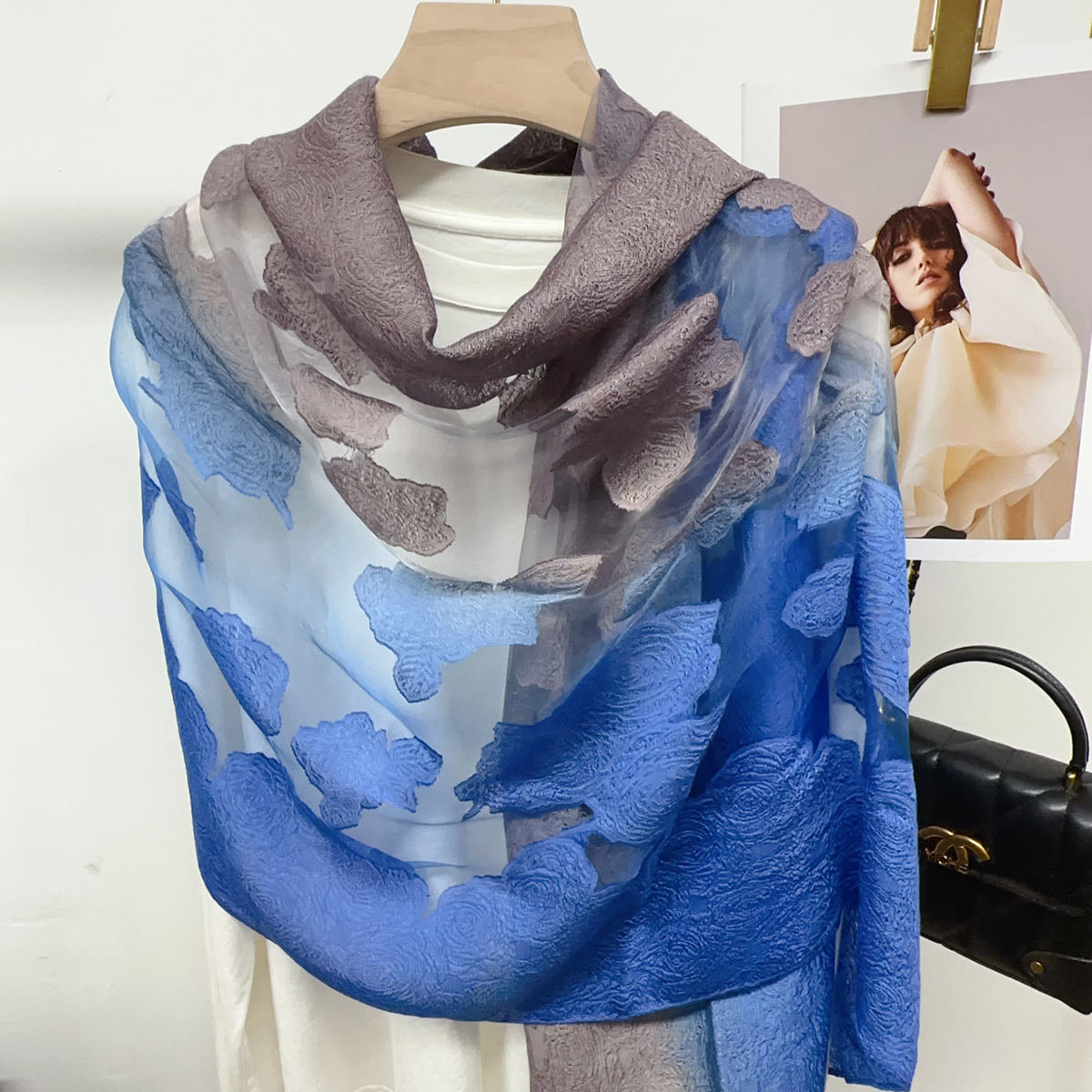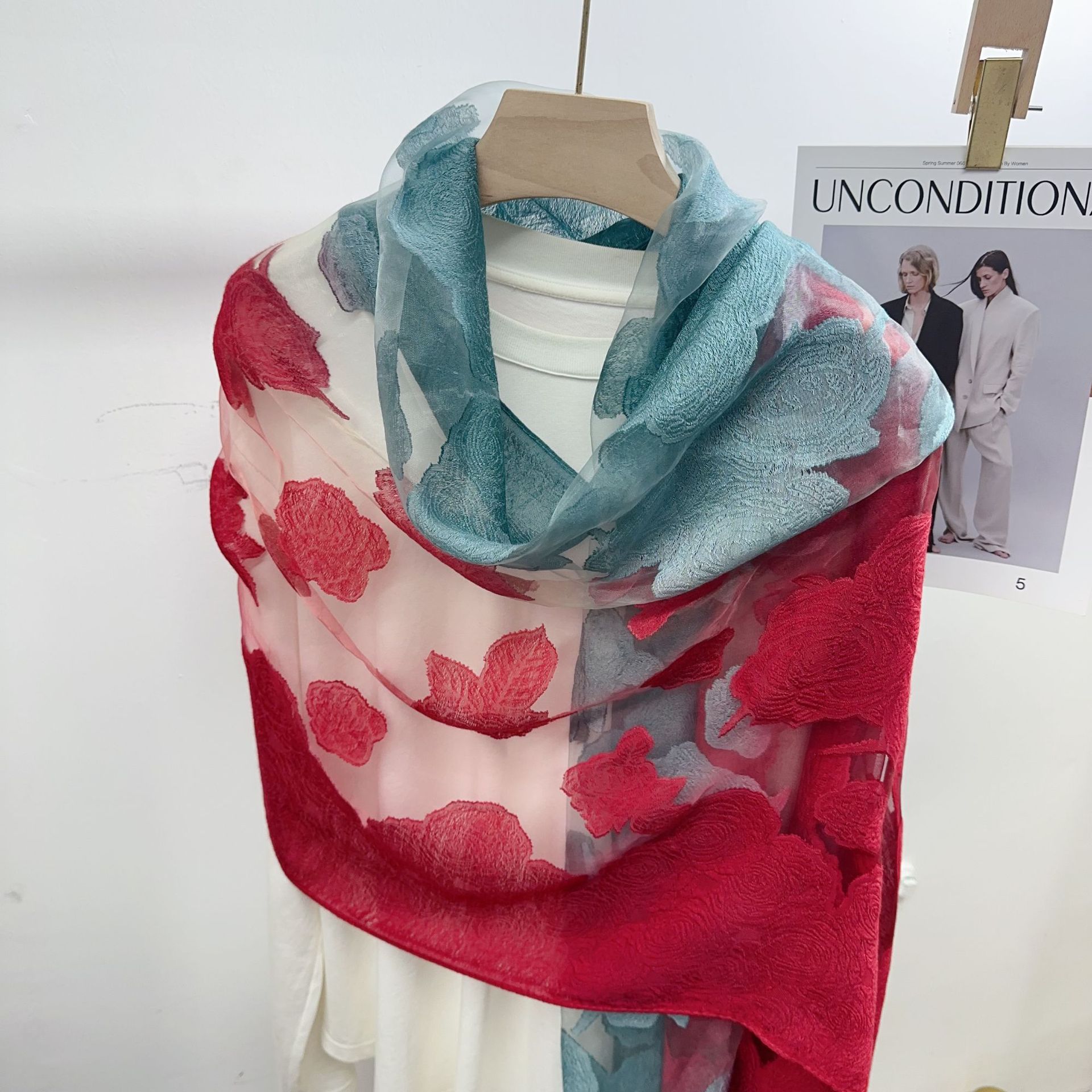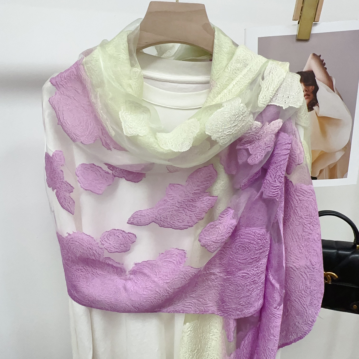 국경을 넘나 드는 새 스카프 여성의 봄과 가을 한국식 오간자 장미 컷 꽃 그라디언트 긴 스카프 외부 목도리스토어 가기