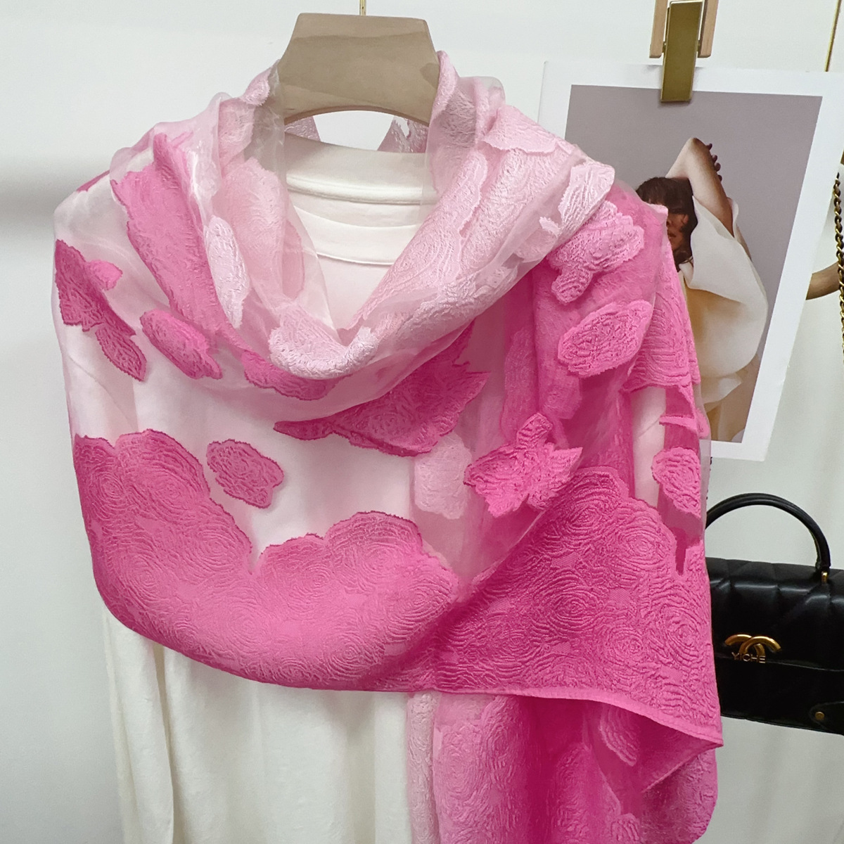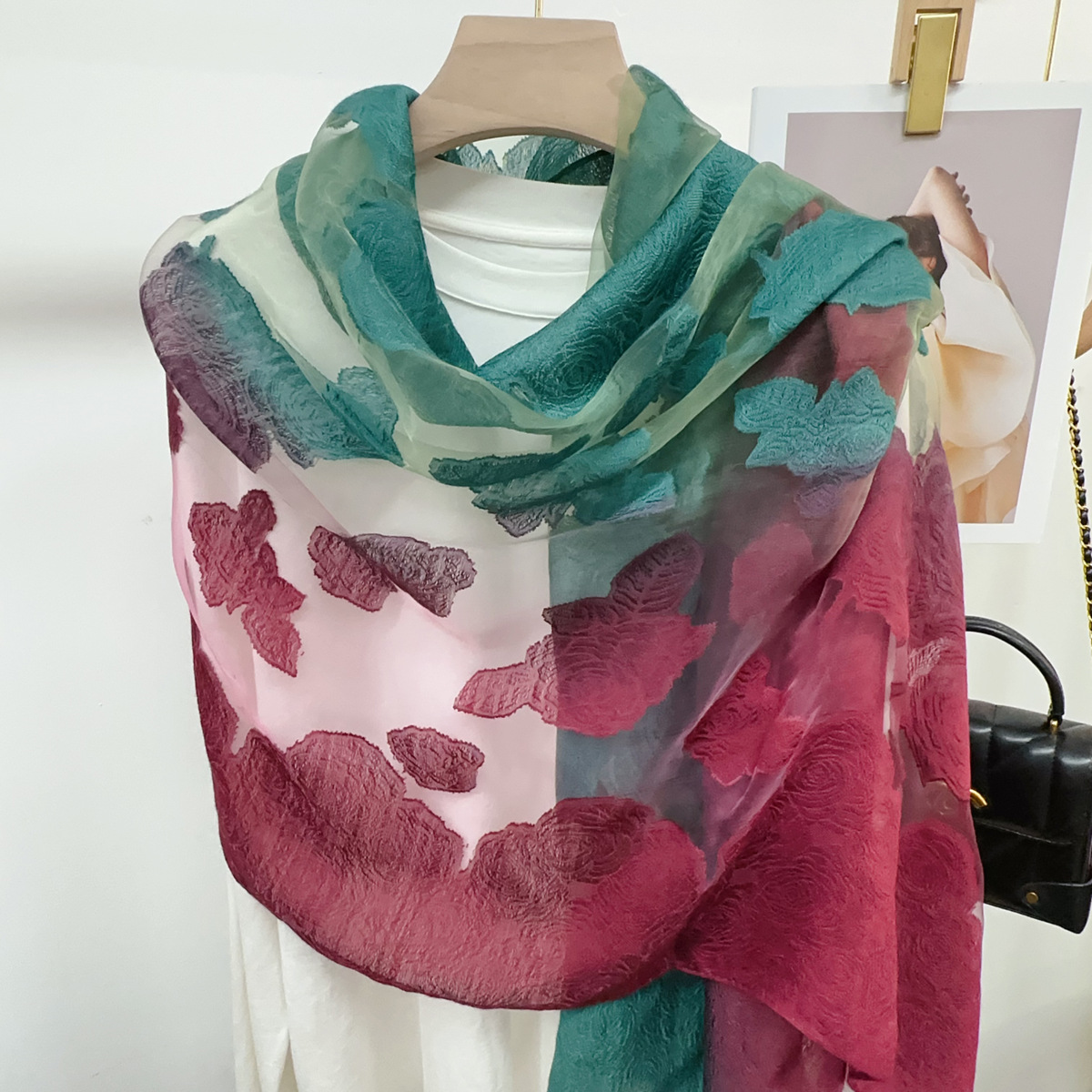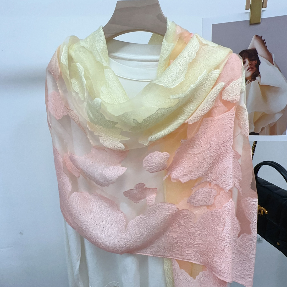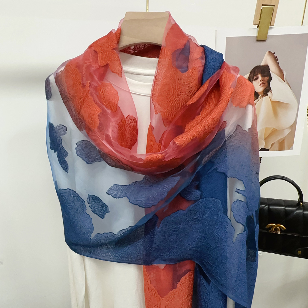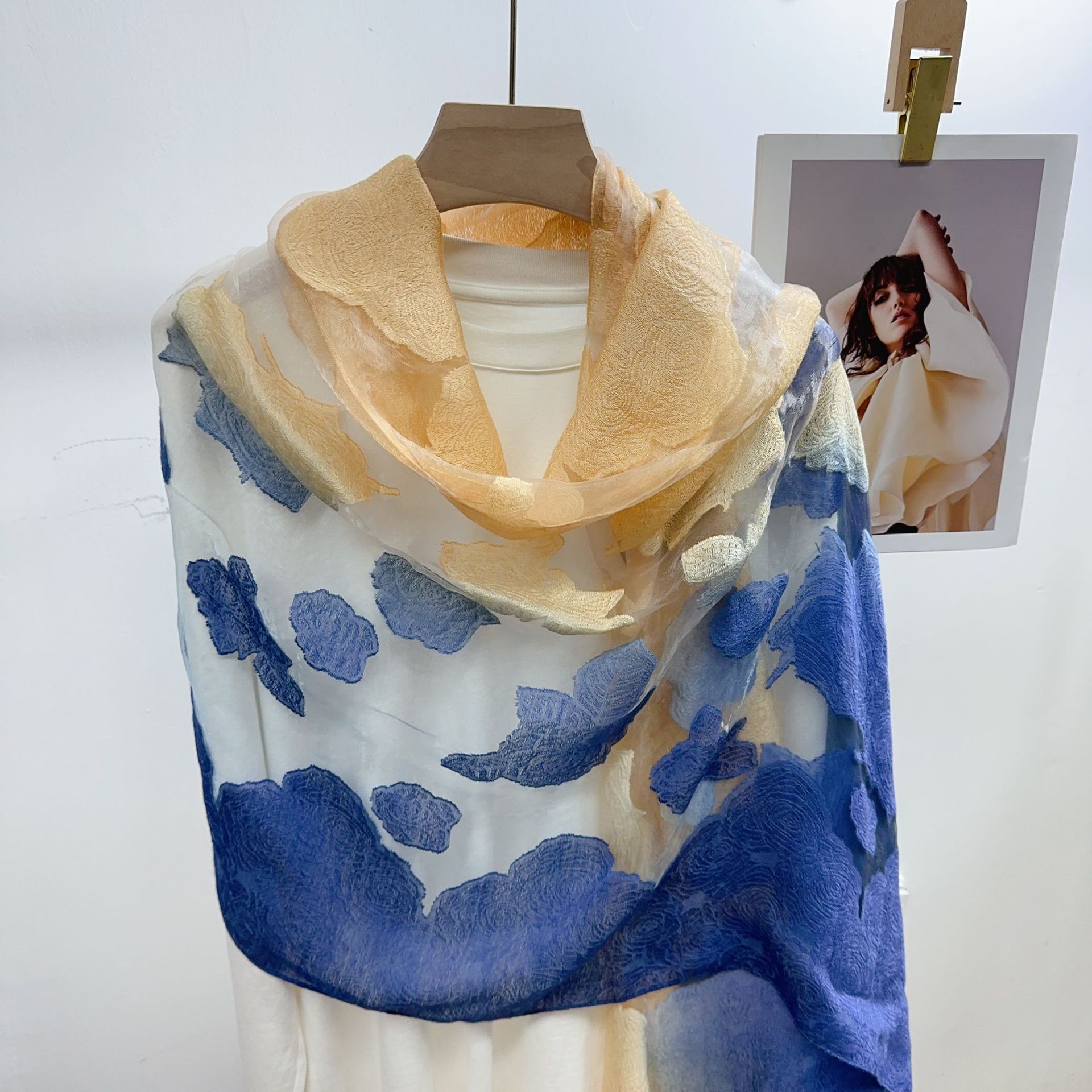 국경을 넘나 드는 새 스카프 여성의 봄과 가을 한국식 오간자 장미 컷 꽃 그라디언트 긴 스카프 외부 목도리스토어 가기