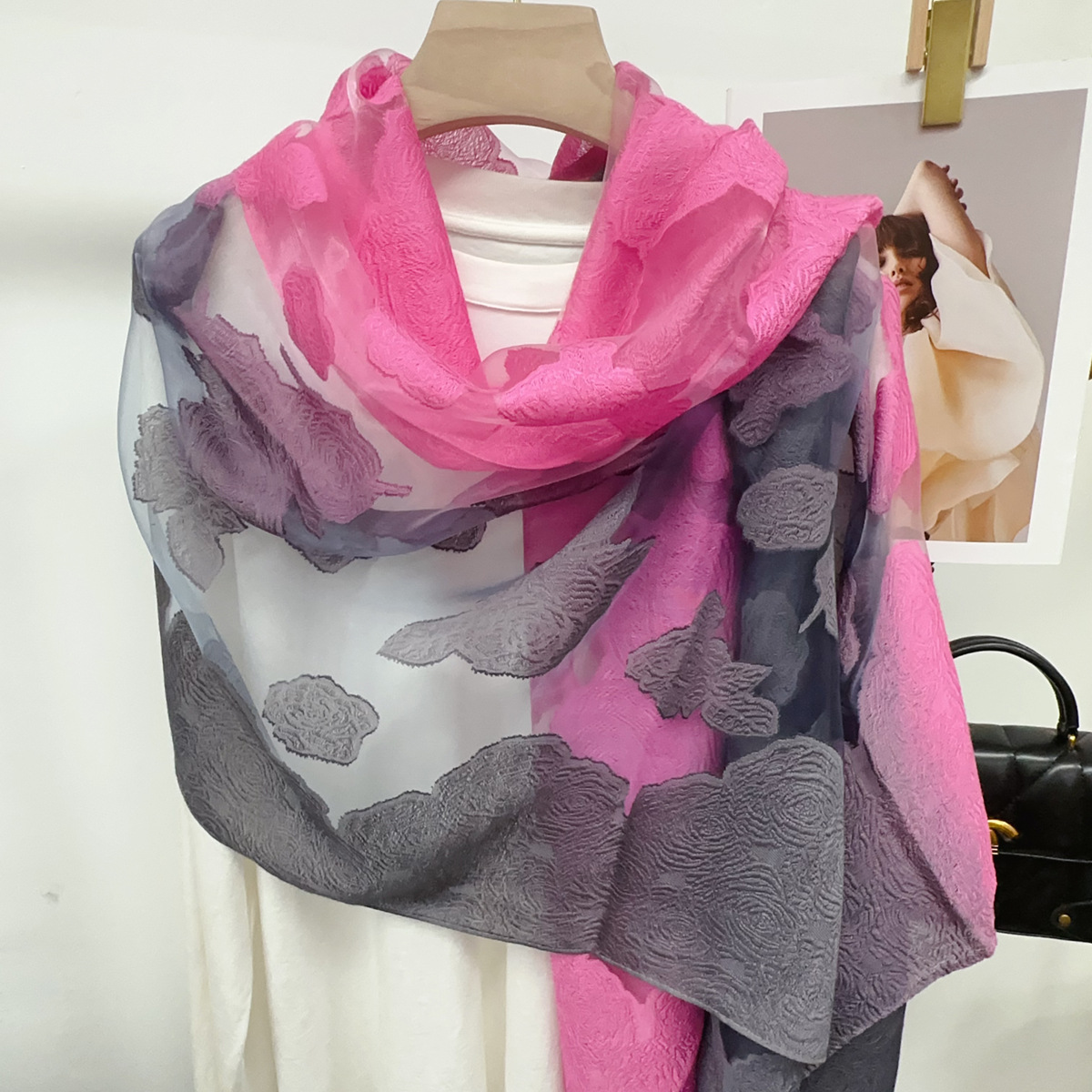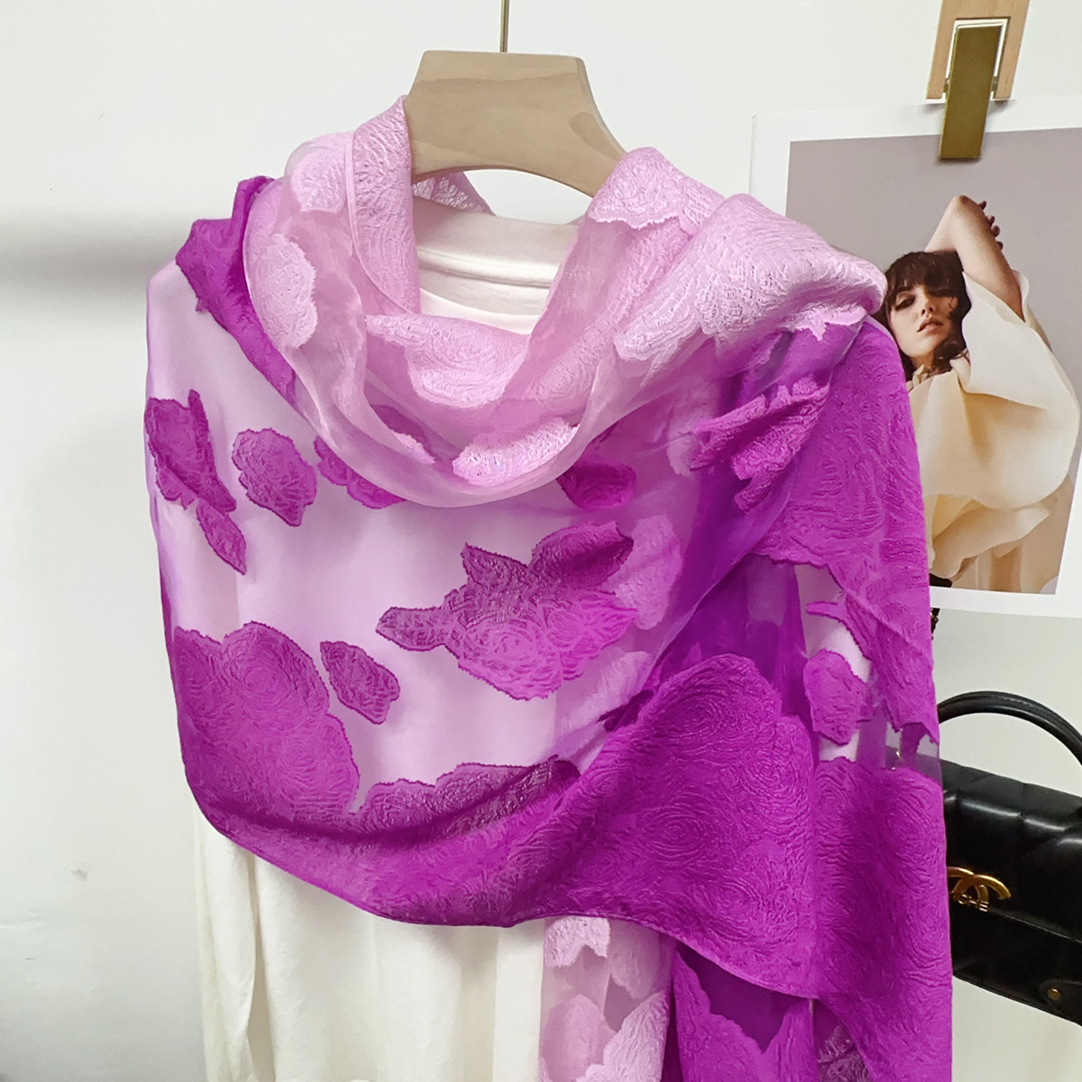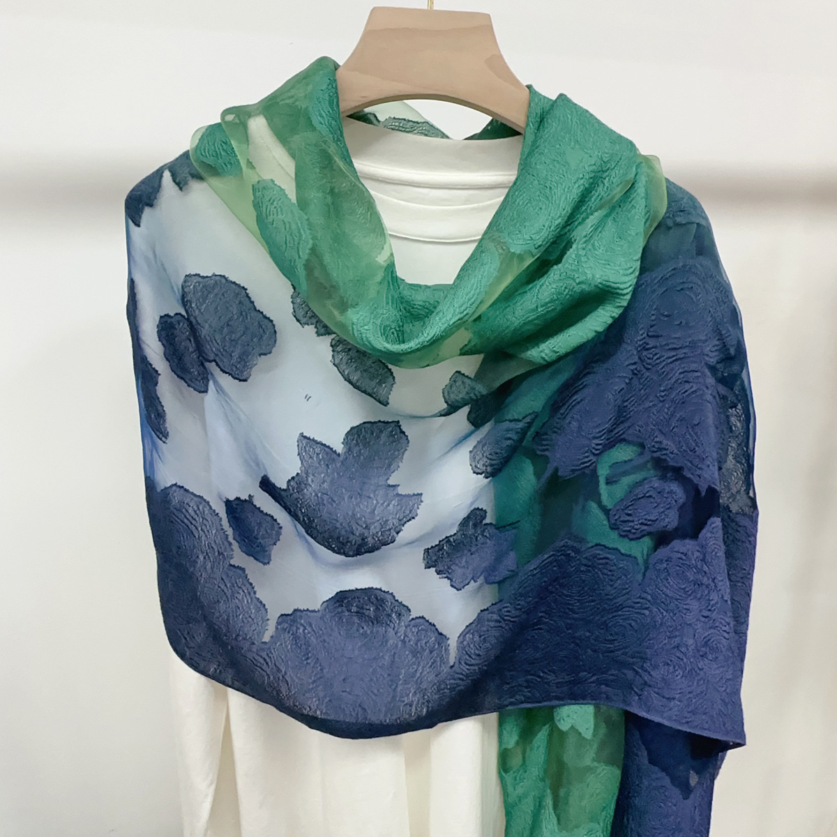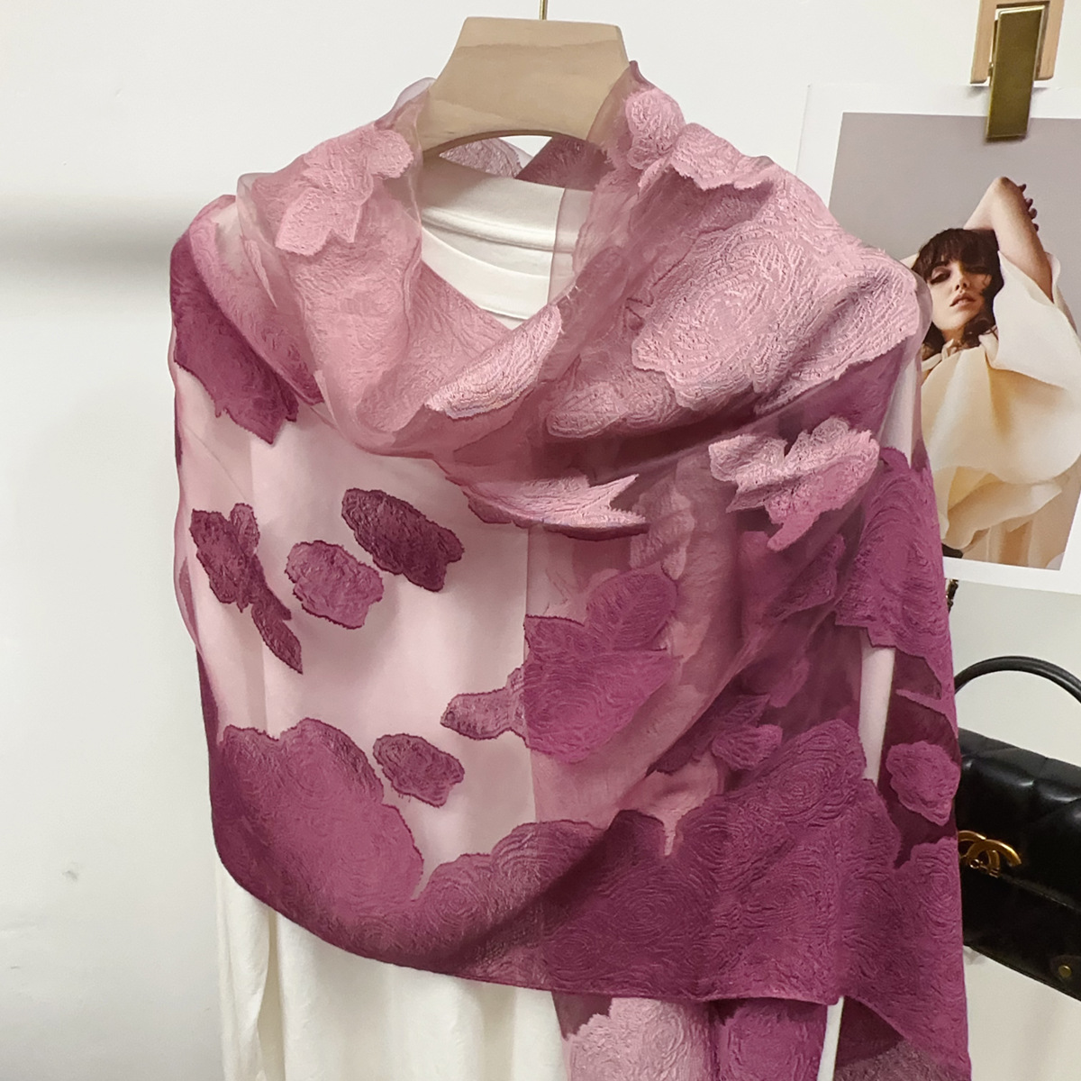 국경을 넘나 드는 새 스카프 여성의 봄과 가을 한국식 오간자 장미 컷 꽃 그라디언트 긴 스카프 외부 목도리스토어 가기