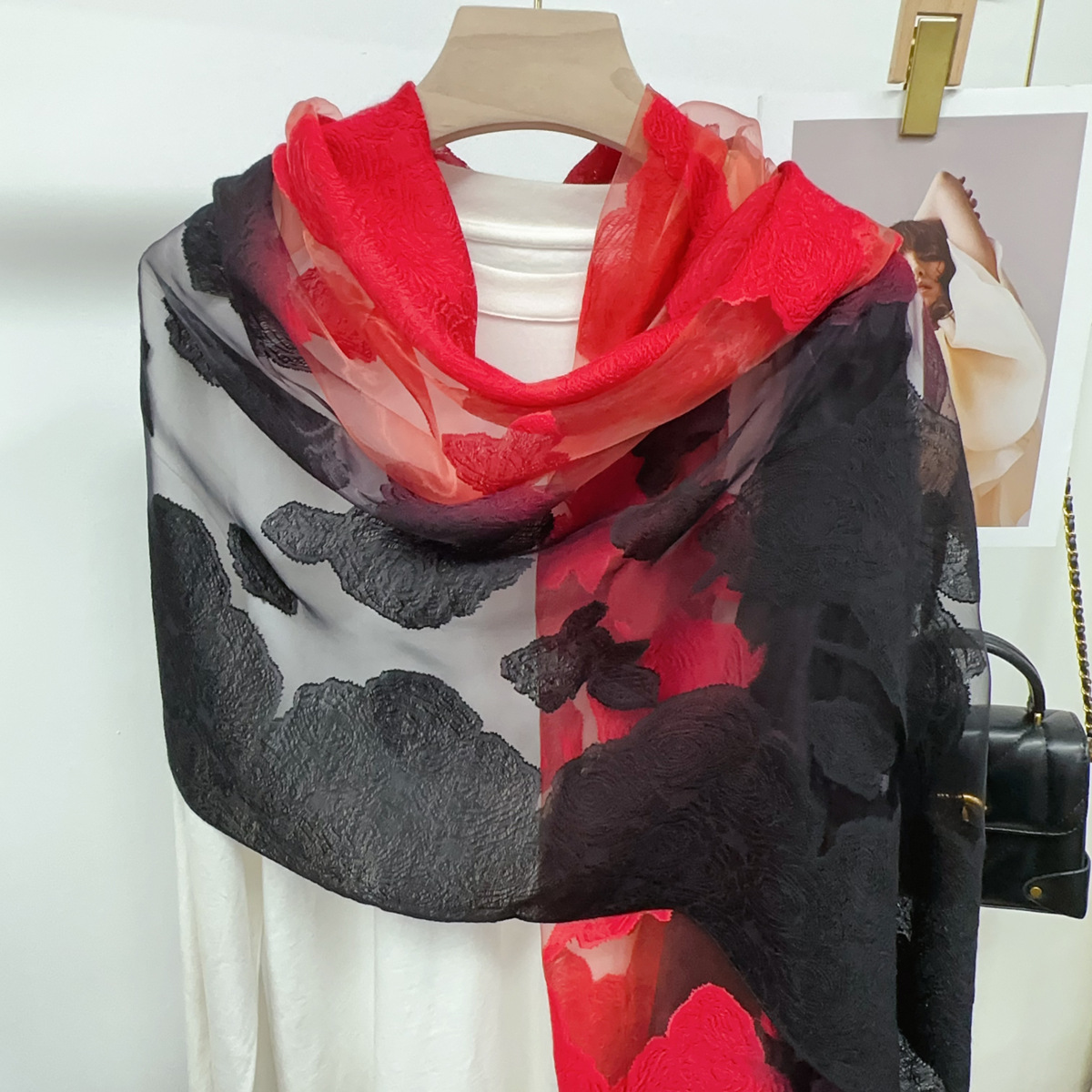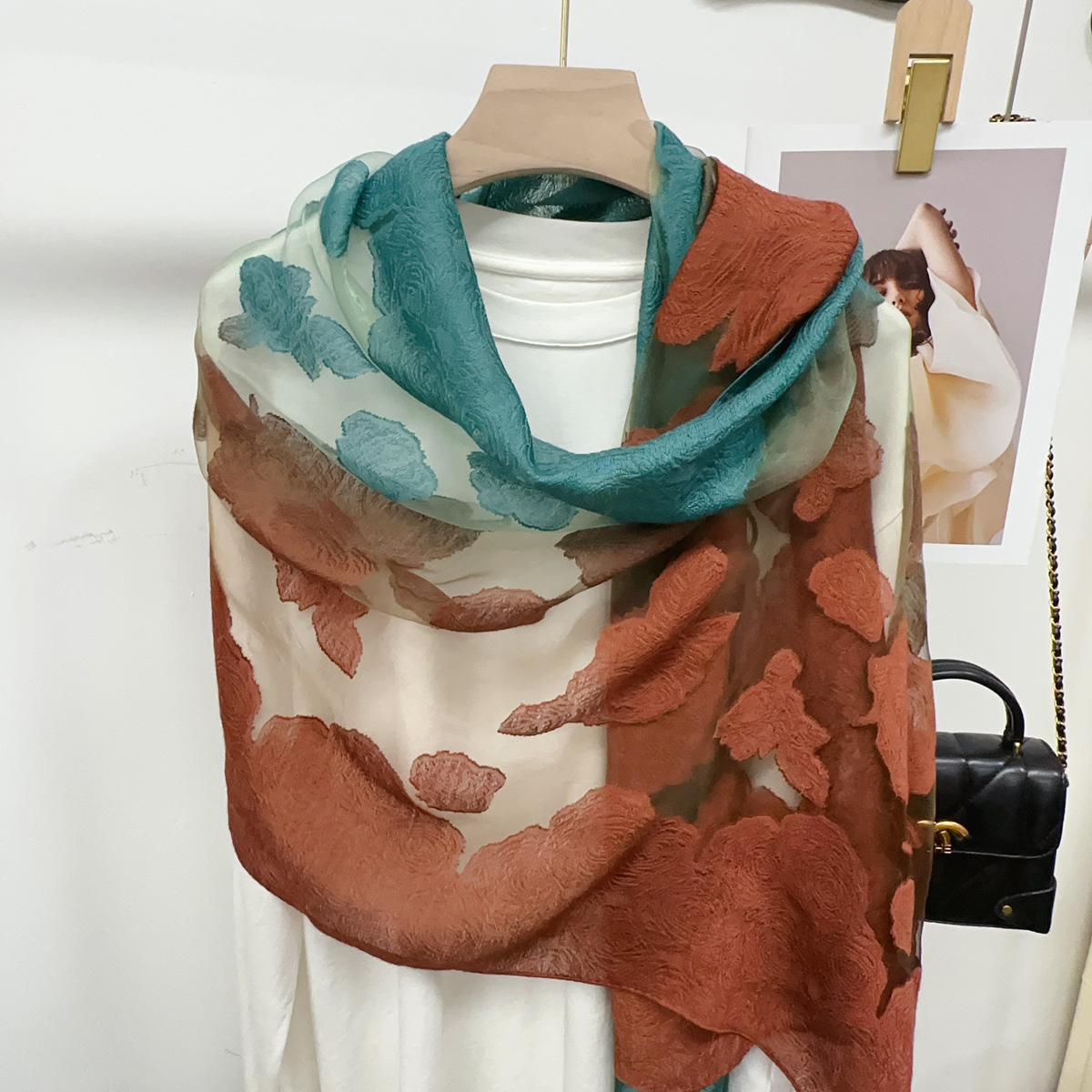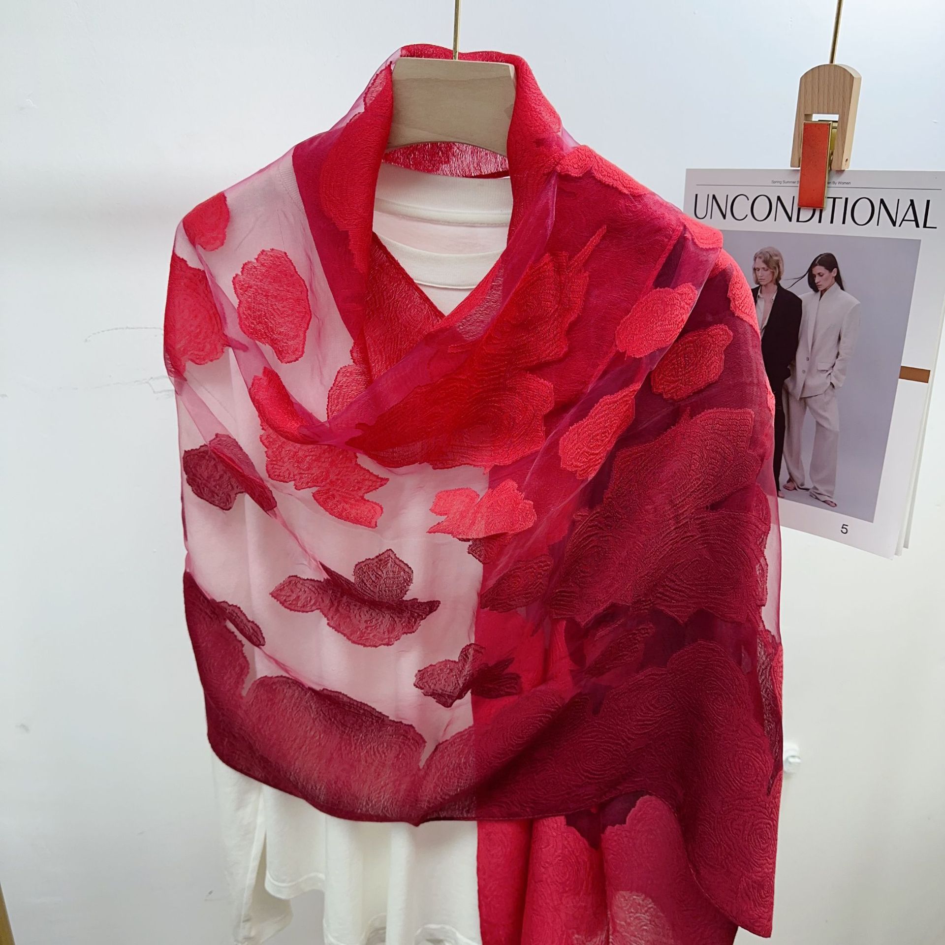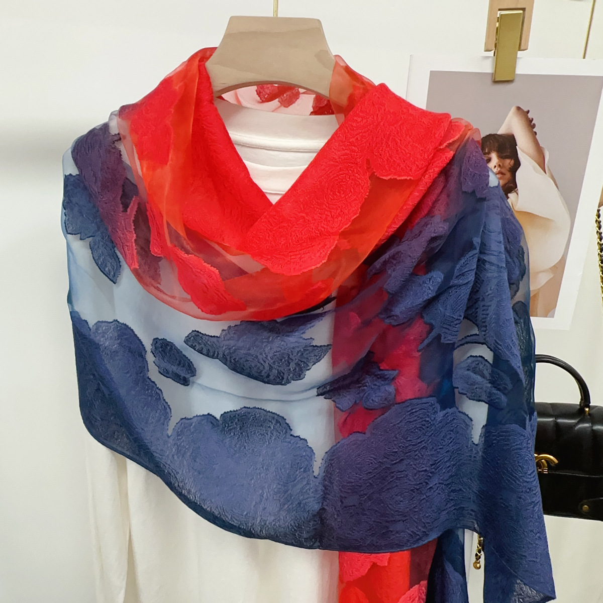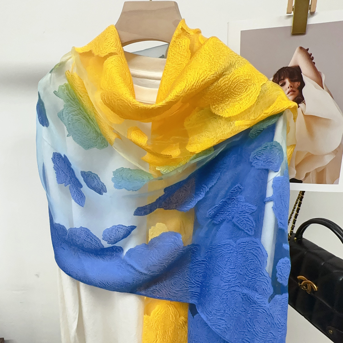 국경을 넘나 드는 새 스카프 여성의 봄과 가을 한국식 오간자 장미 컷 꽃 그라디언트 긴 스카프 외부 목도리스토어 가기