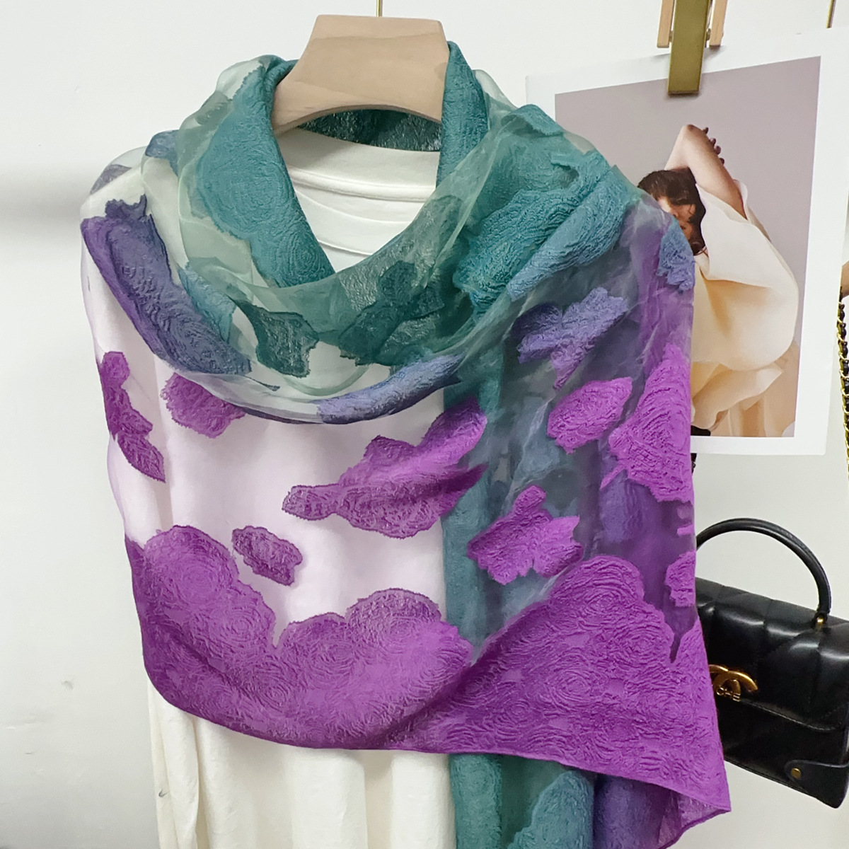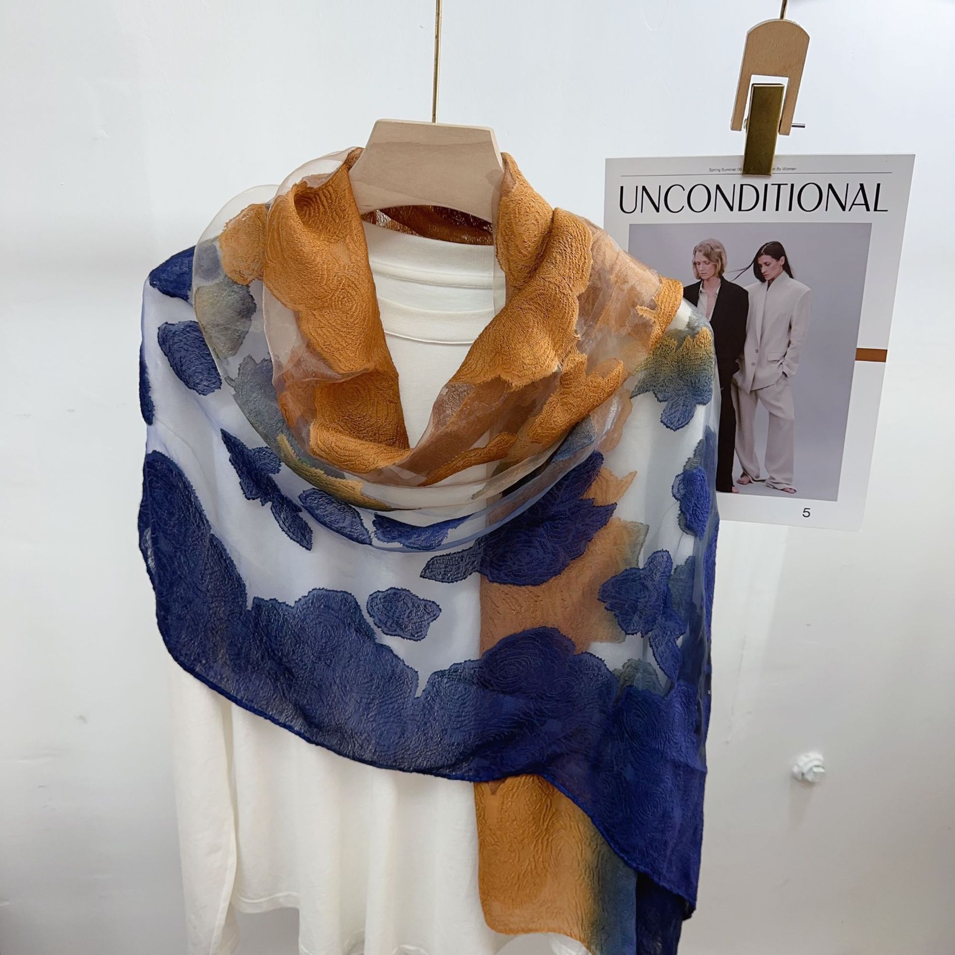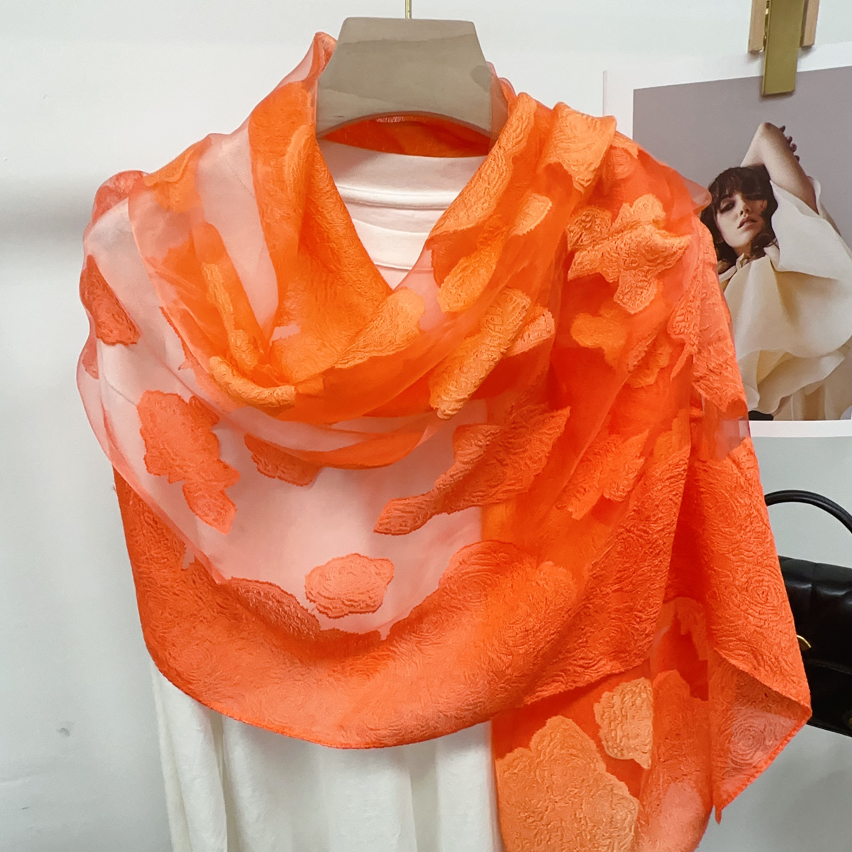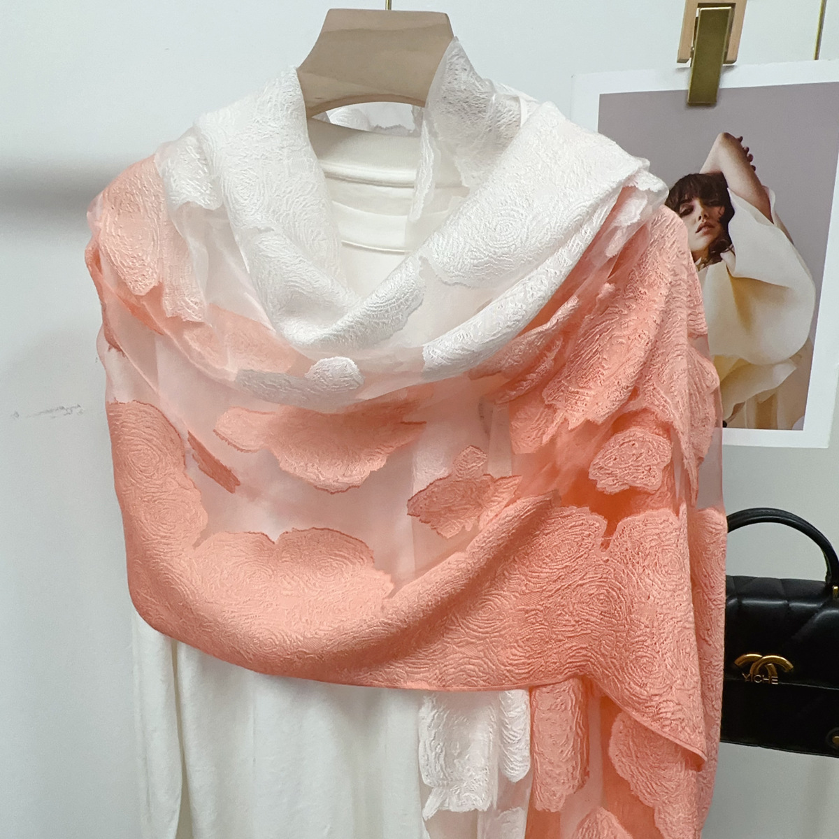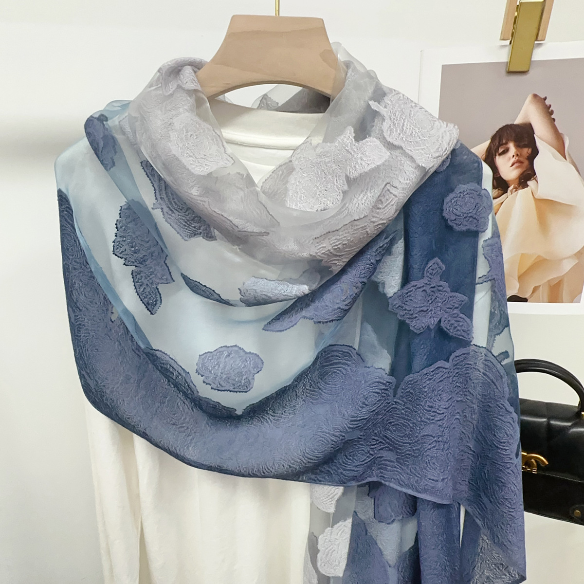 국경을 넘나 드는 새 스카프 여성의 봄과 가을 한국식 오간자 장미 컷 꽃 그라디언트 긴 스카프 외부 목도리스토어 가기