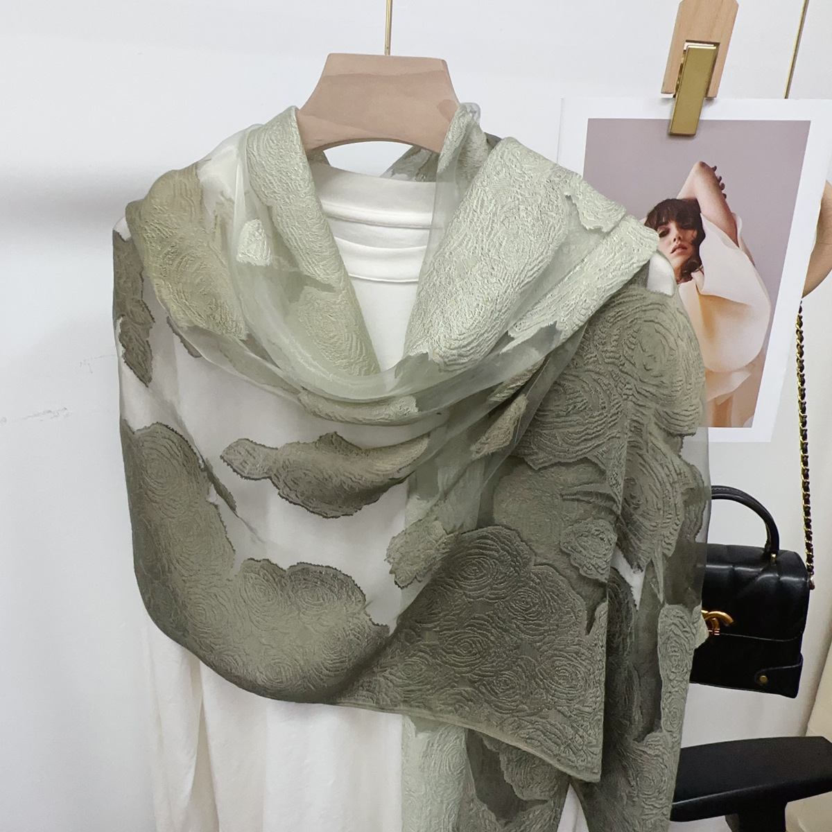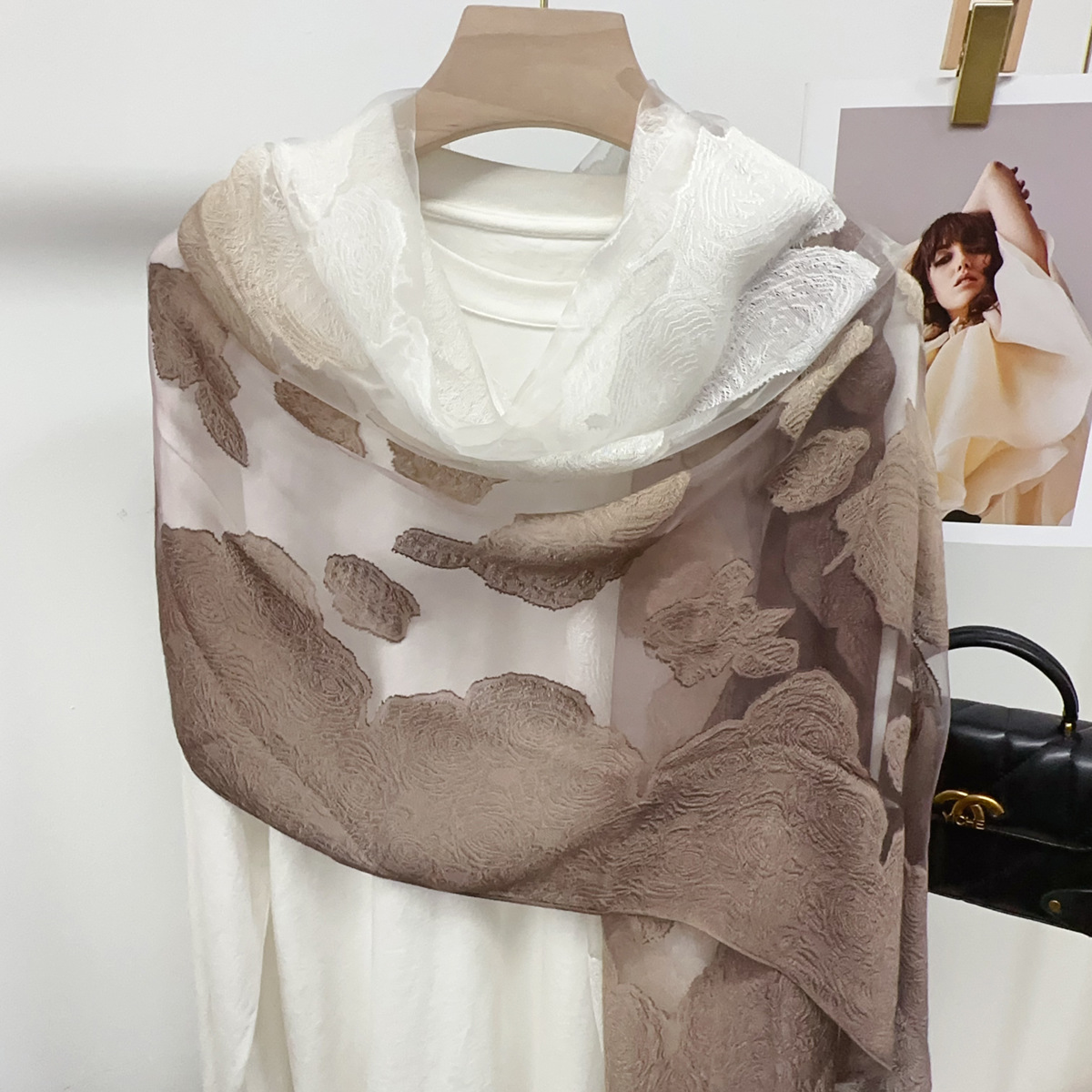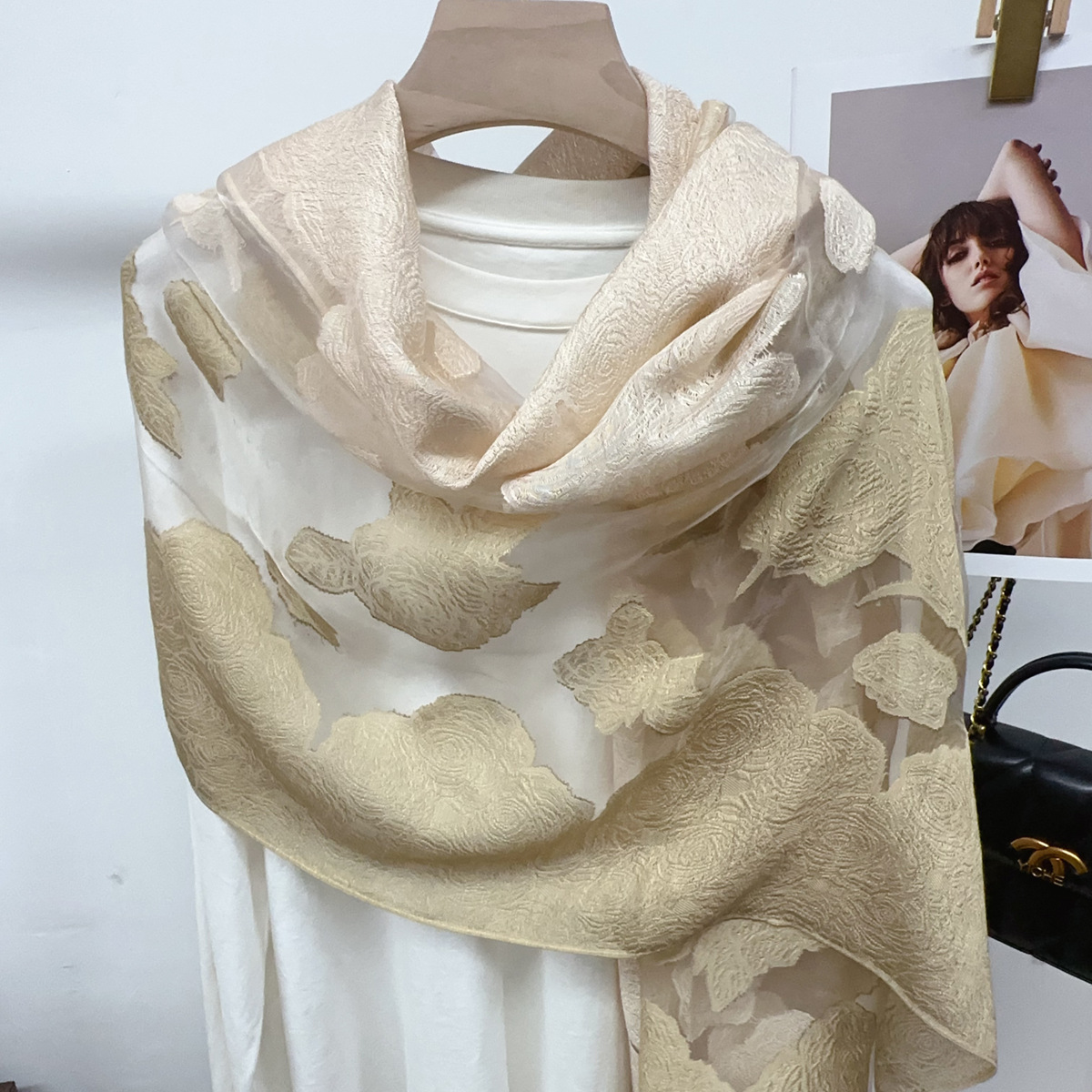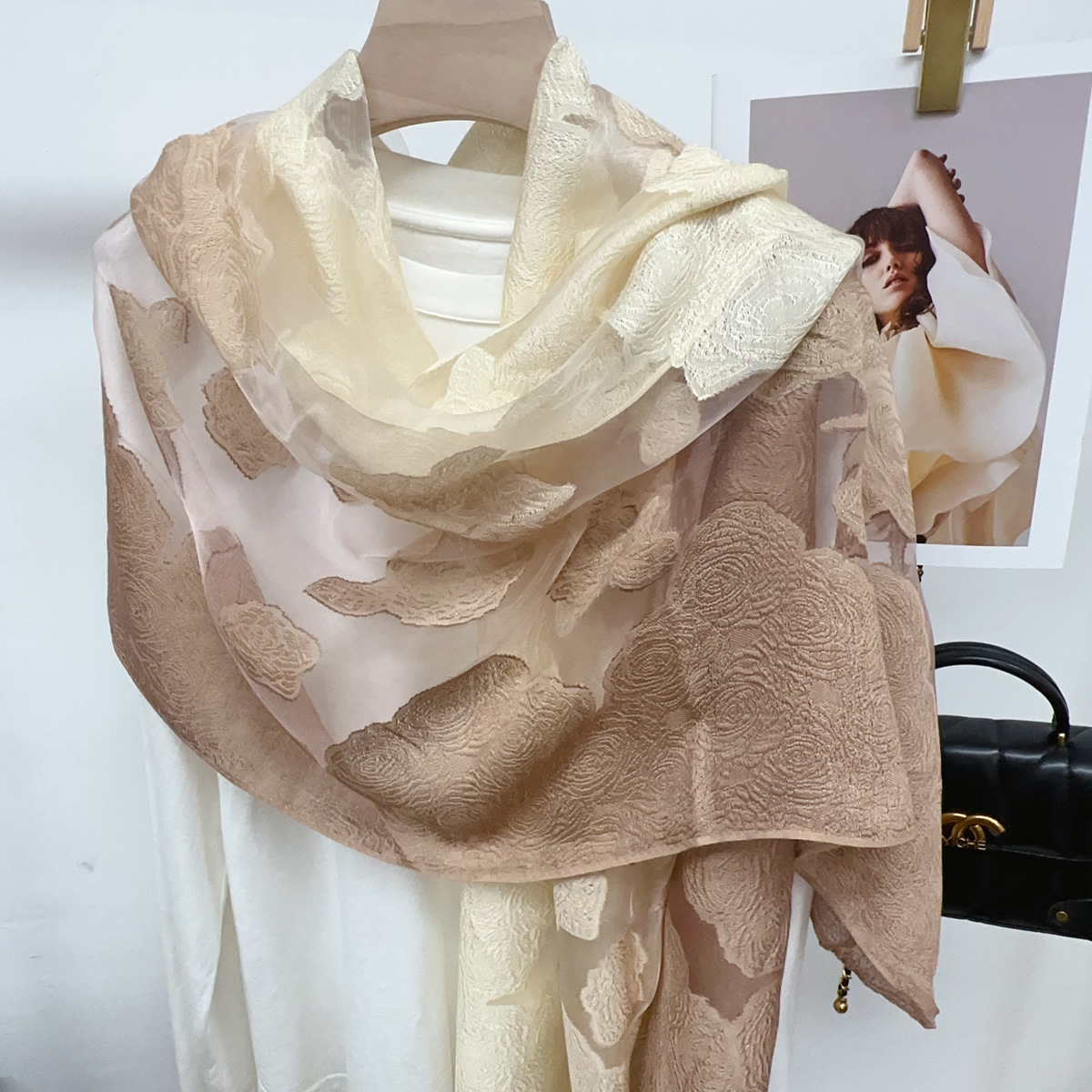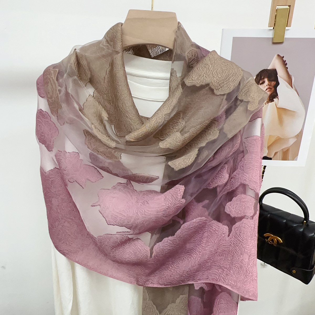 국경을 넘나 드는 새 스카프 여성의 봄과 가을 한국식 오간자 장미 컷 꽃 그라디언트 긴 스카프 외부 목도리스토어 가기