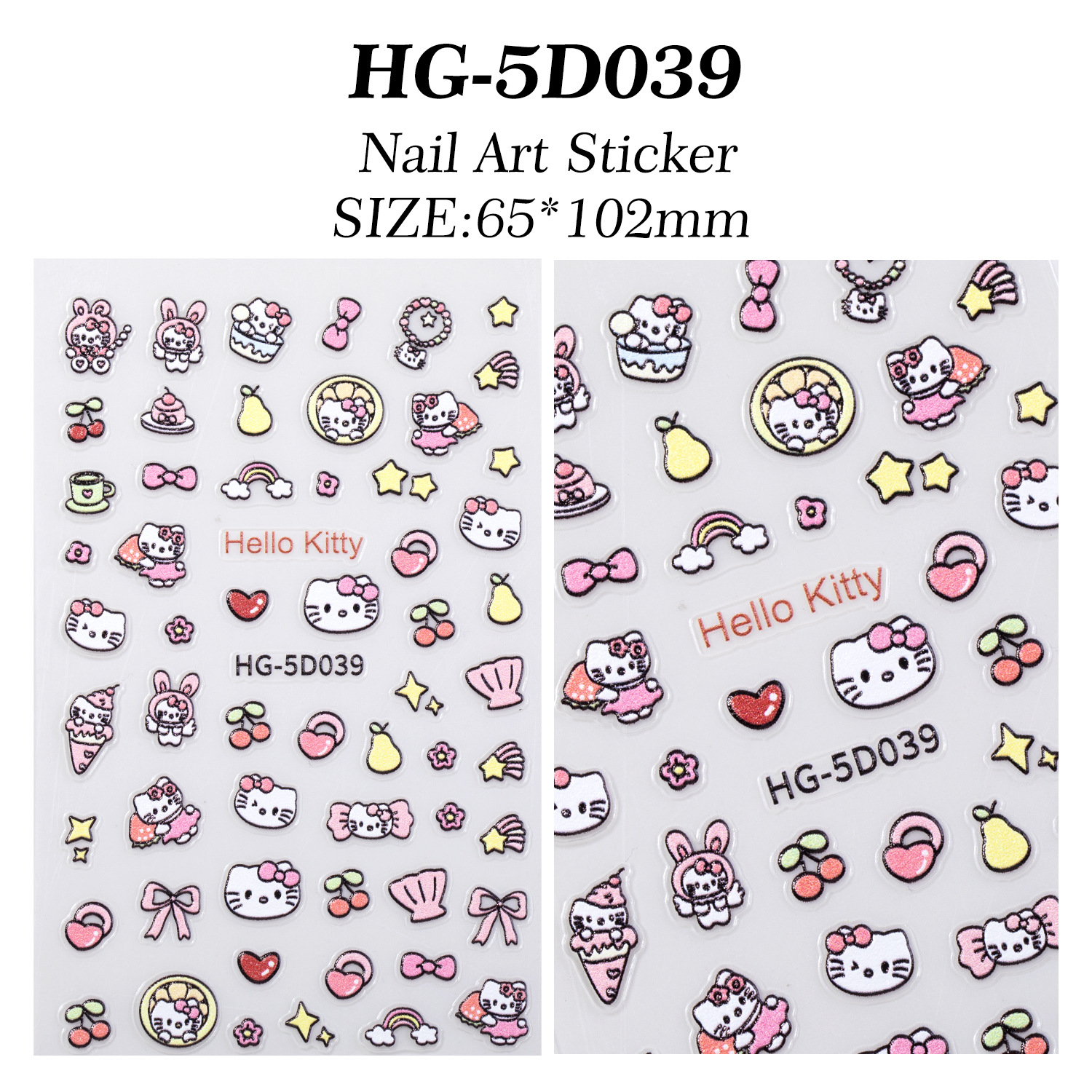 귀여운 KT 고양이 네일 아트 스티커 5D 양각 입체 만화 헬로키티 고양이 네일 스티커 액세서리 HG 스타일