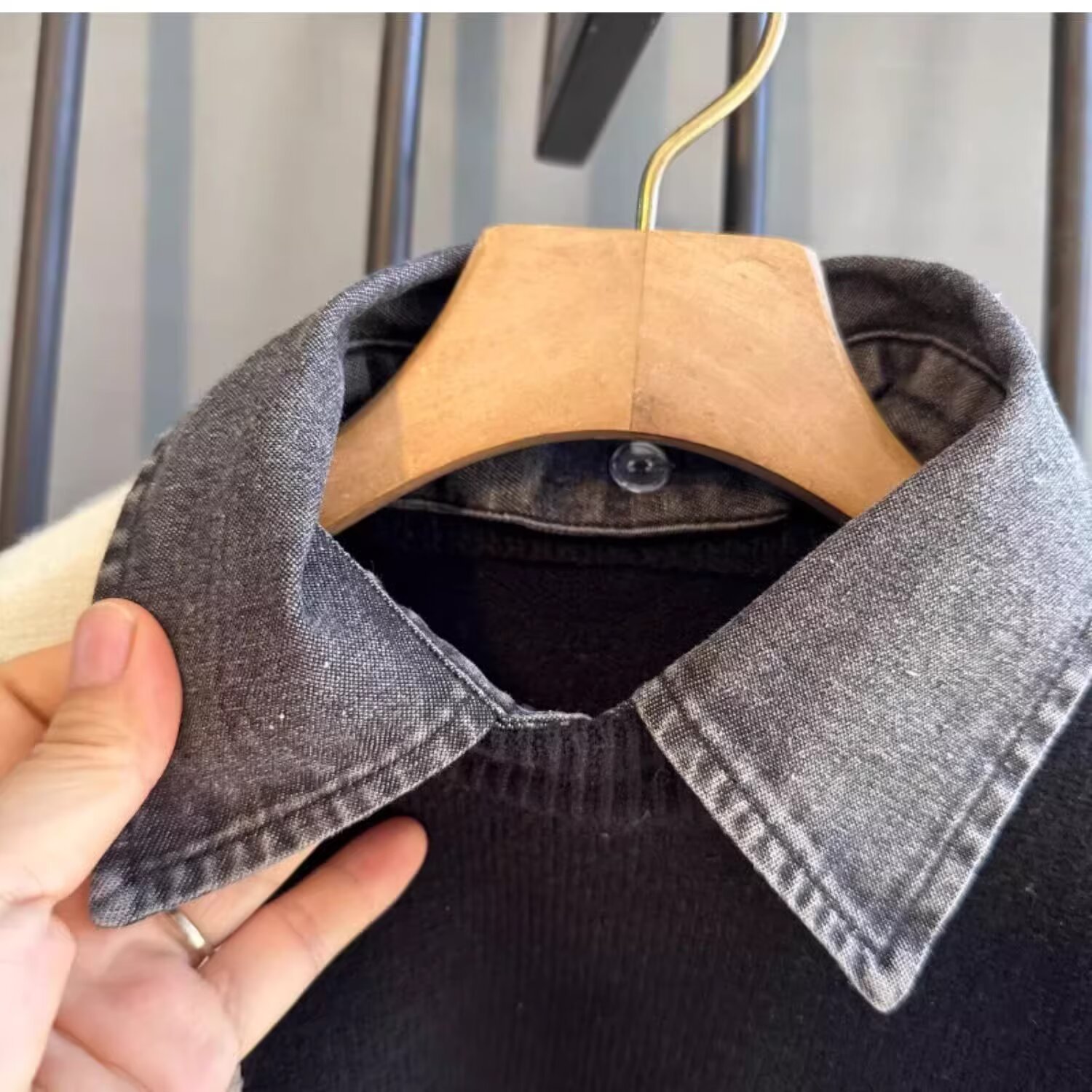 스웨터 소년 가을과 겨울 2024 새로운 홍콩 바람 새로운 따뜻한 스웨터 조수 브랜드 컬러 매칭 셔츠 칼라 헤어 세대스토어 가기