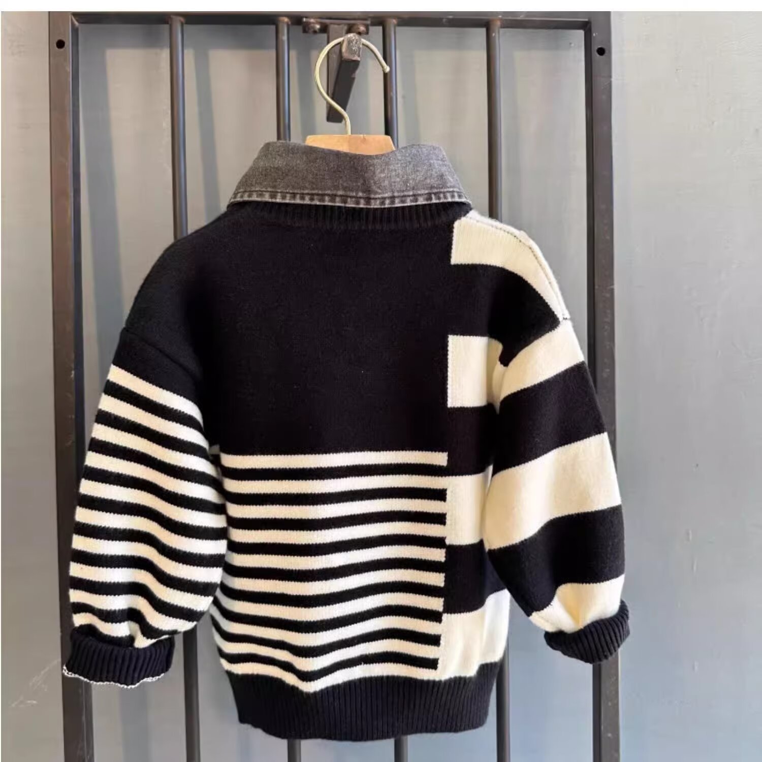 스웨터 소년 가을과 겨울 2024 새로운 홍콩 바람 새로운 따뜻한 스웨터 조수 브랜드 컬러 매칭 셔츠 칼라 헤어 세대
