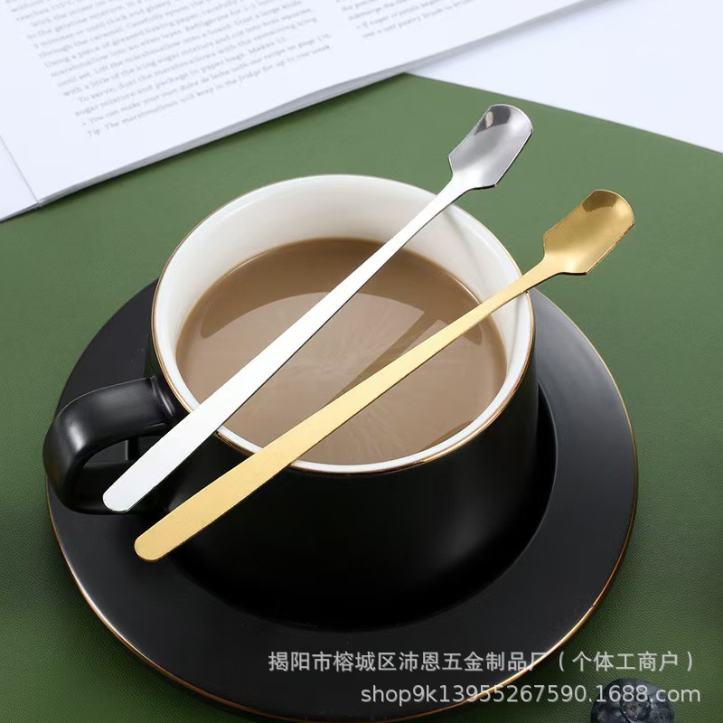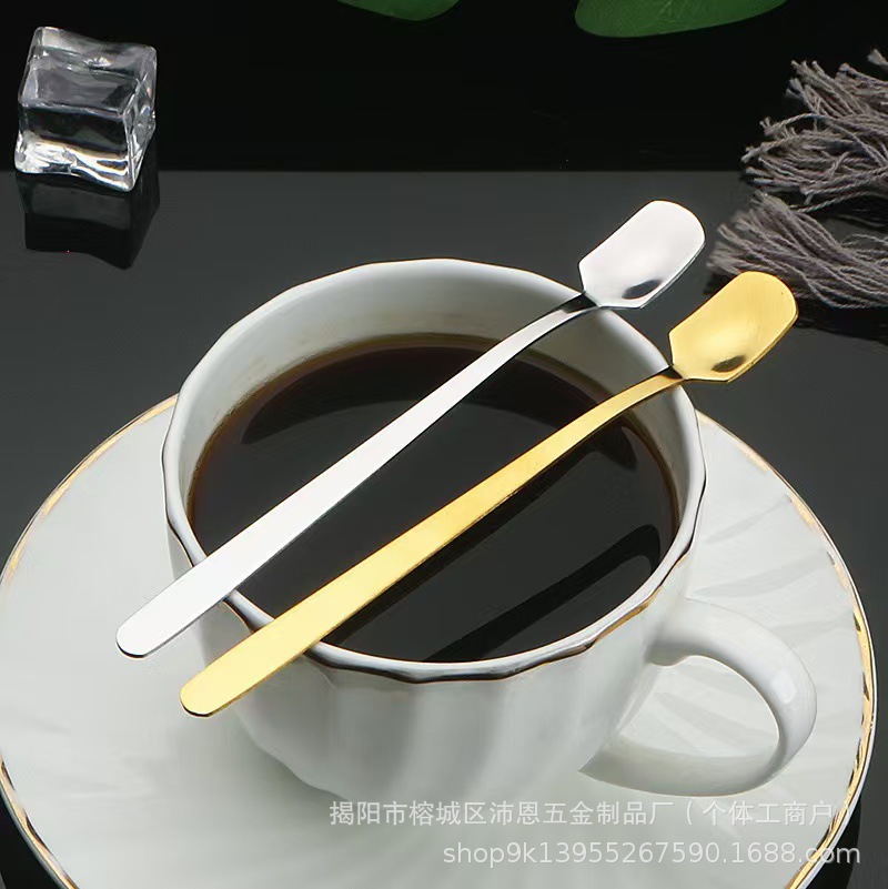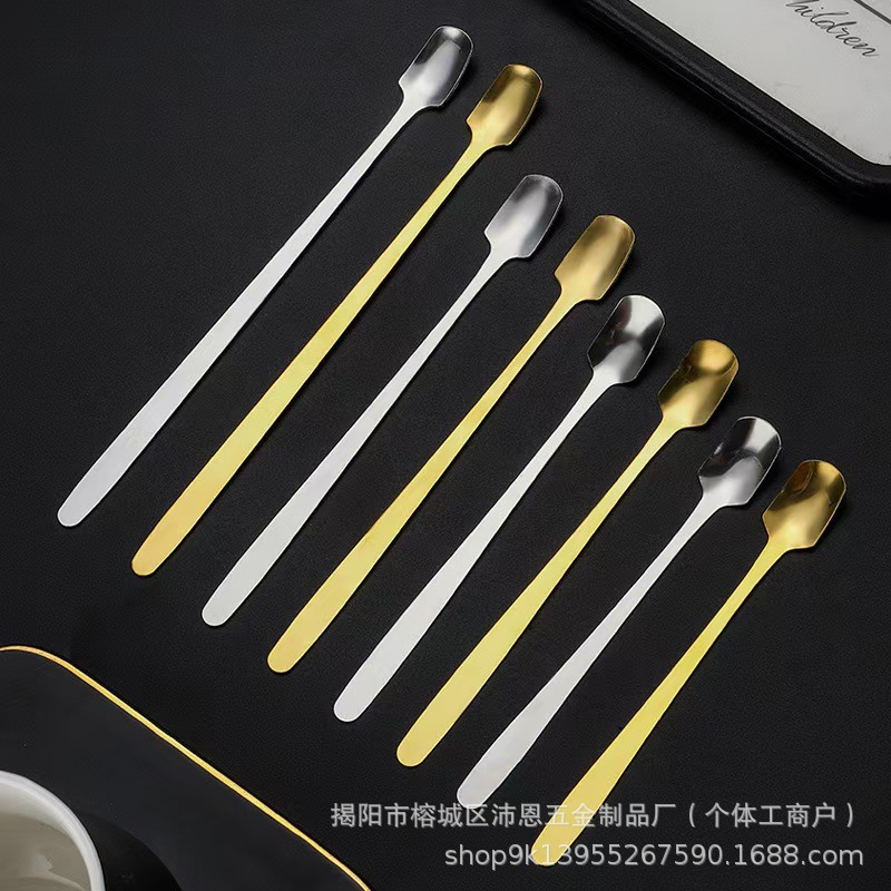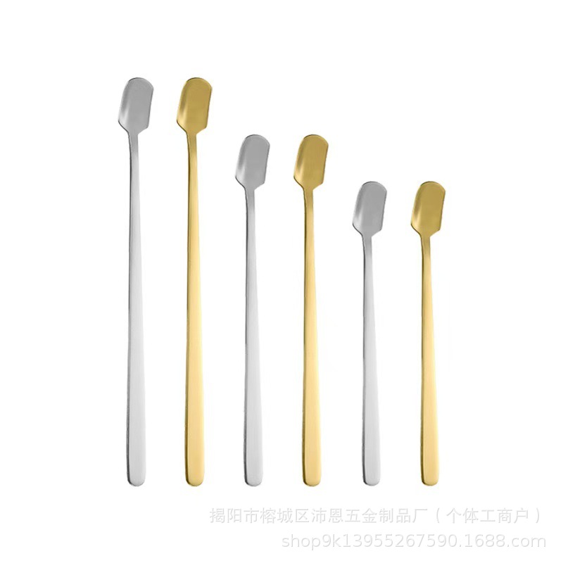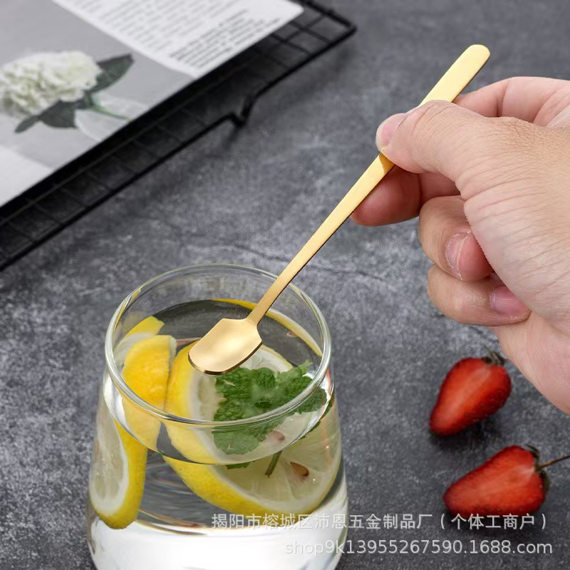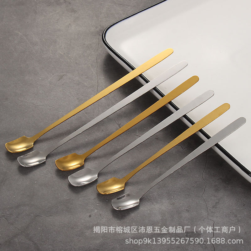 스테인레스 스틸 스퀘어 스푼 창조적 인 황금 커피 작은 숟가락 꿀 긴 손잡이 얼음 숟가락 머그잔 혼합 숟가락 디저트 스푼
