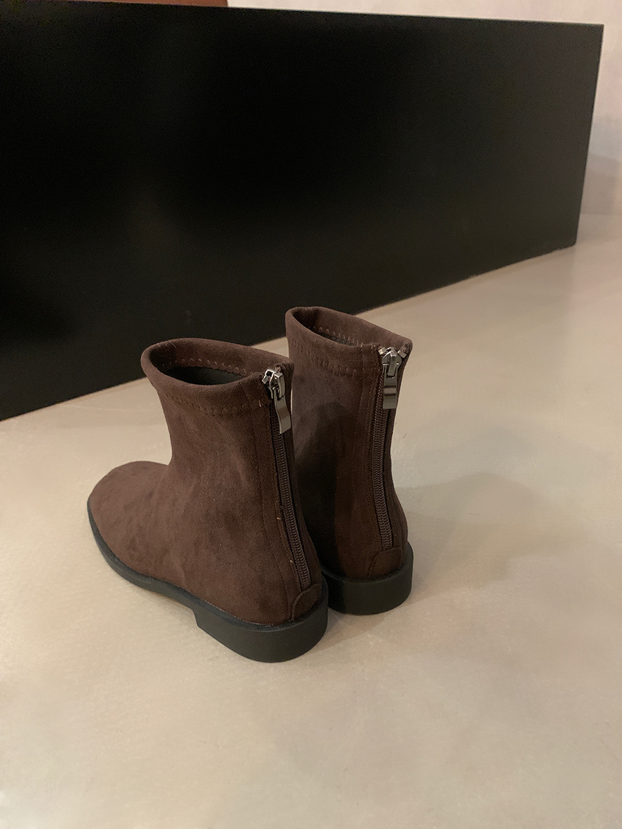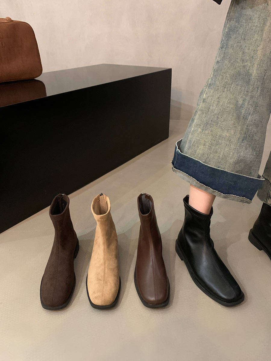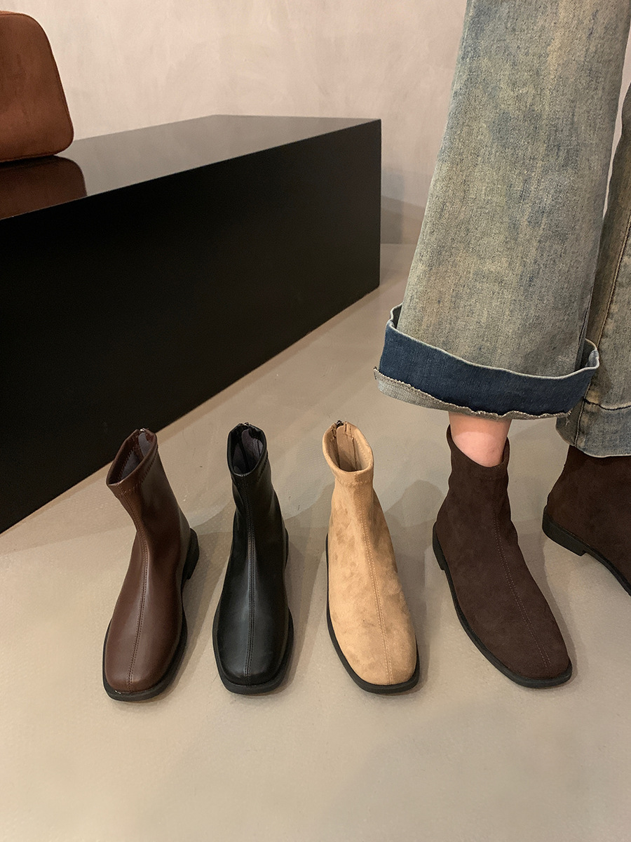 빈티지 스웨이드 프랑스 발목 부츠 여성의 2024 새로운 가을과 겨울 낮은 뒤꿈치 블랙 얇은 짧은 튜브 마틴 부츠스토어 가기