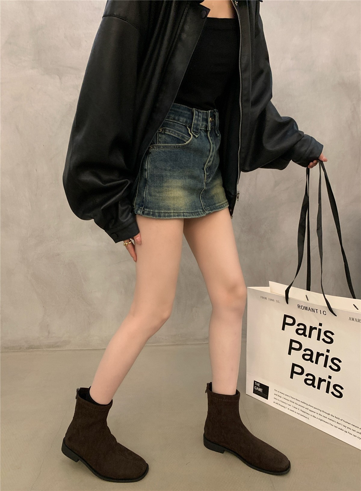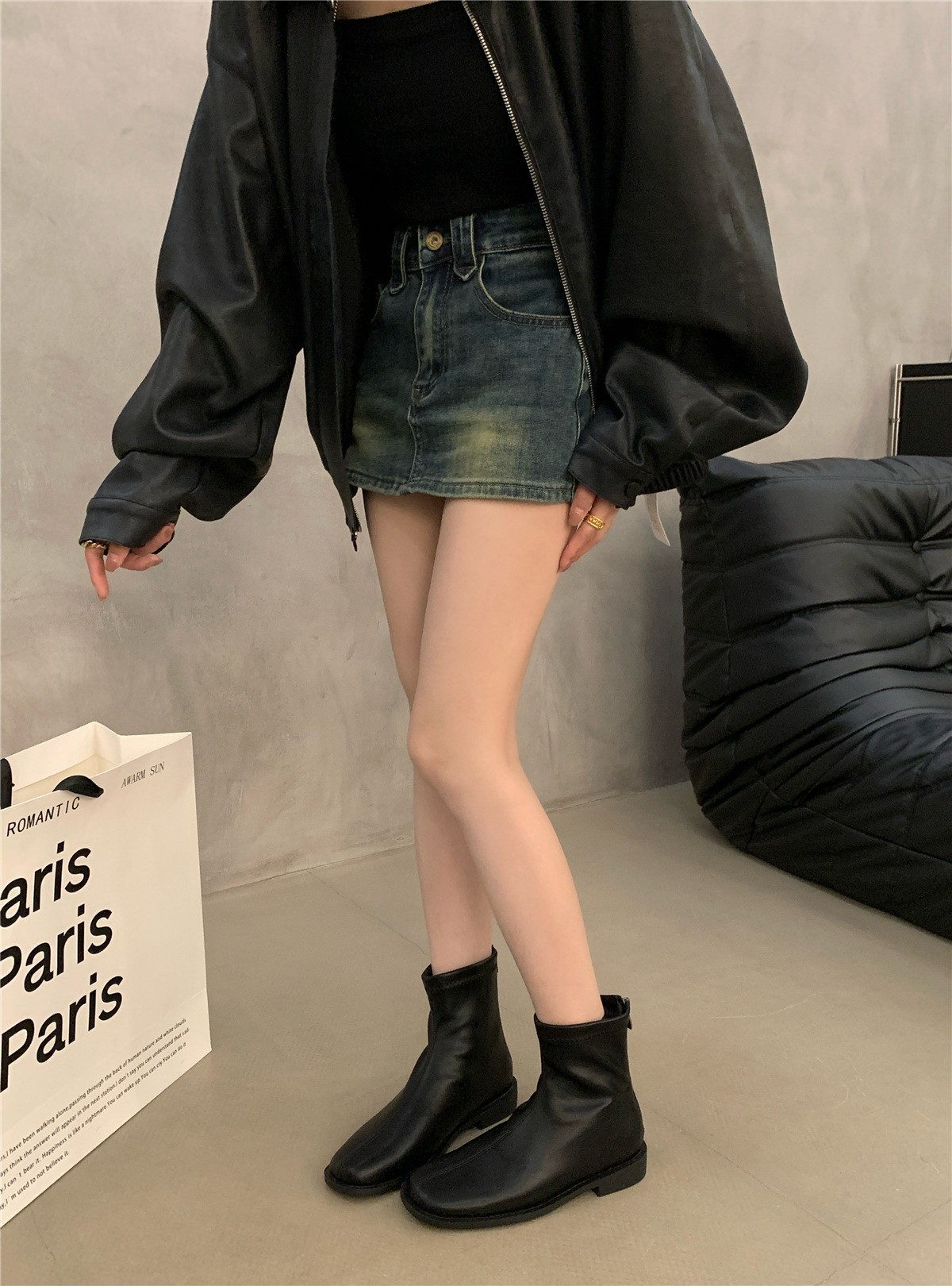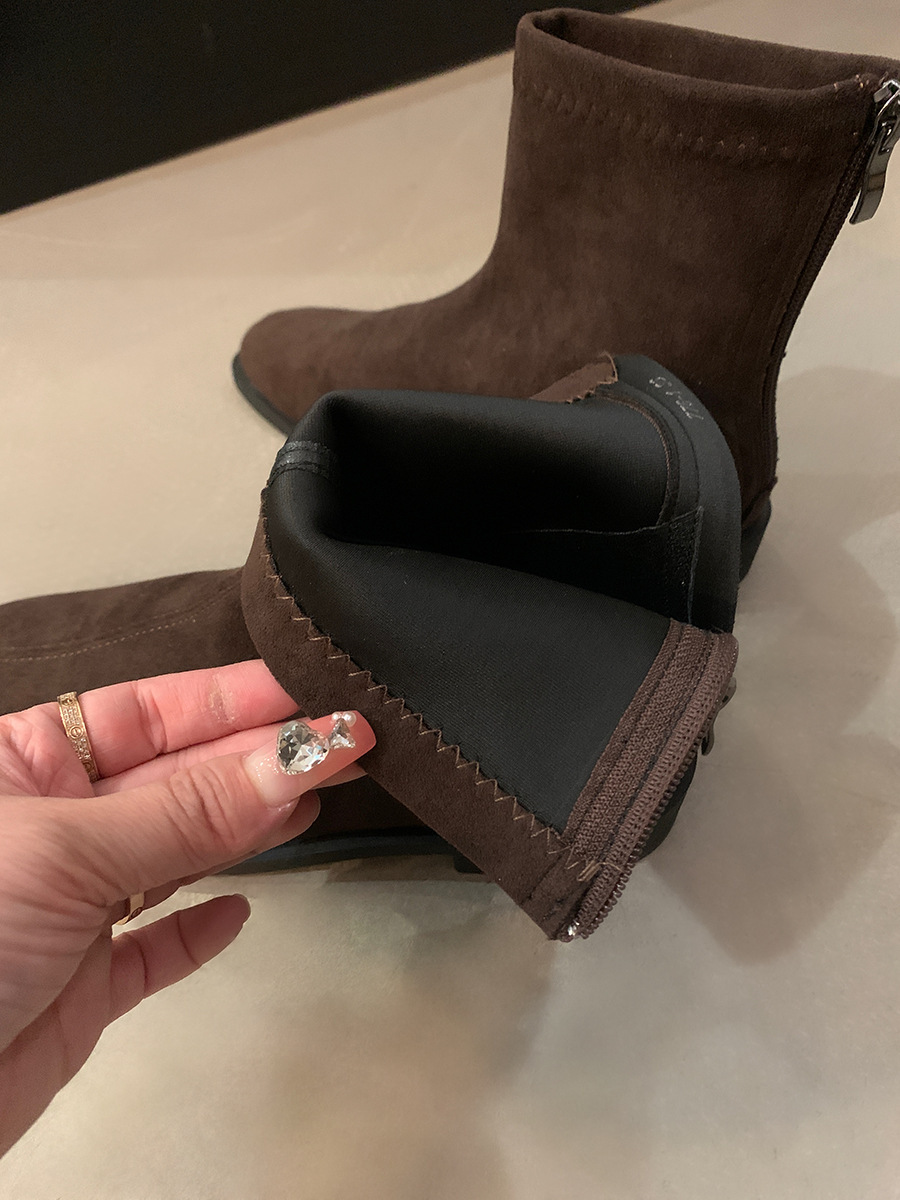 빈티지 스웨이드 프랑스 발목 부츠 여성의 2024 새로운 가을과 겨울 낮은 뒤꿈치 블랙 얇은 짧은 튜브 마틴 부츠스토어 가기