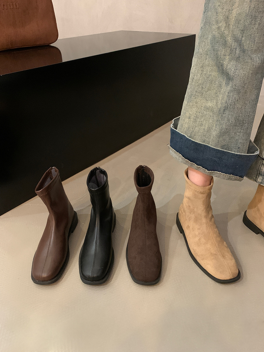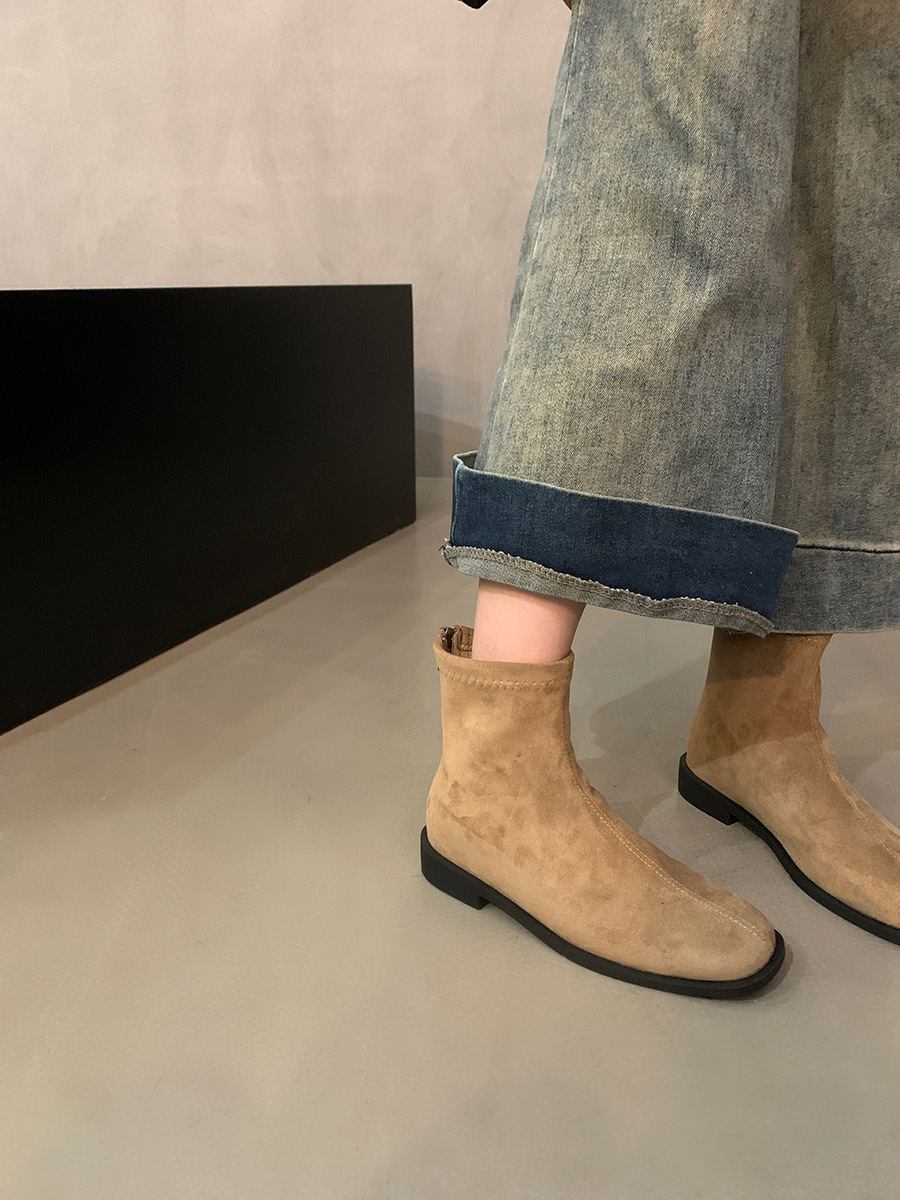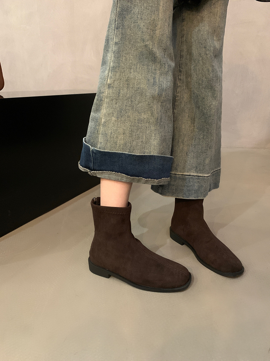 빈티지 스웨이드 프랑스 발목 부츠 여성의 2024 새로운 가을과 겨울 낮은 뒤꿈치 블랙 얇은 짧은 튜브 마틴 부츠