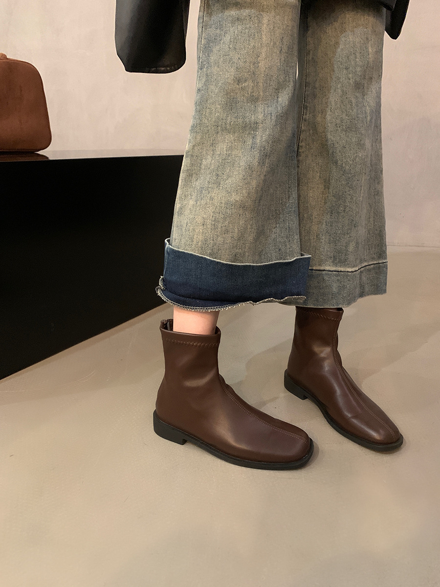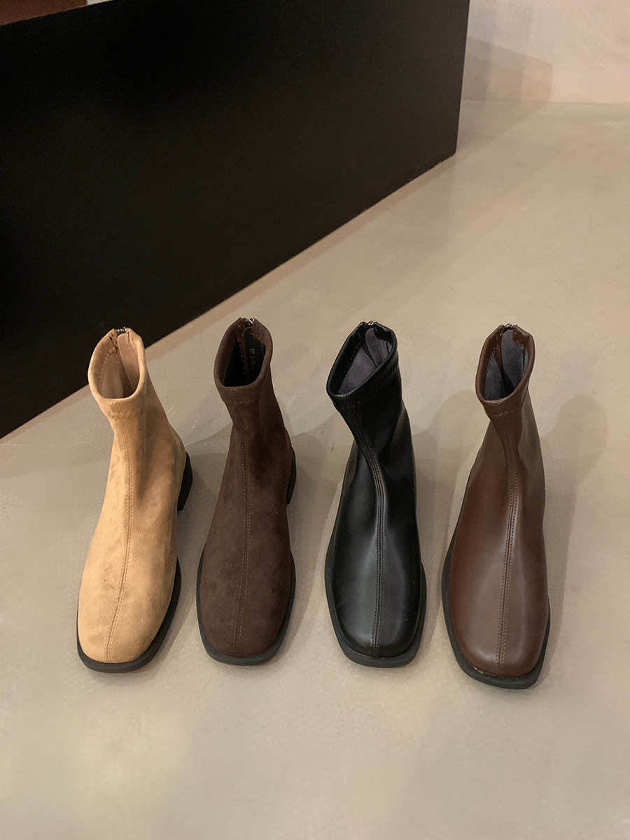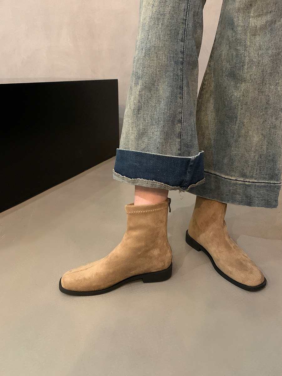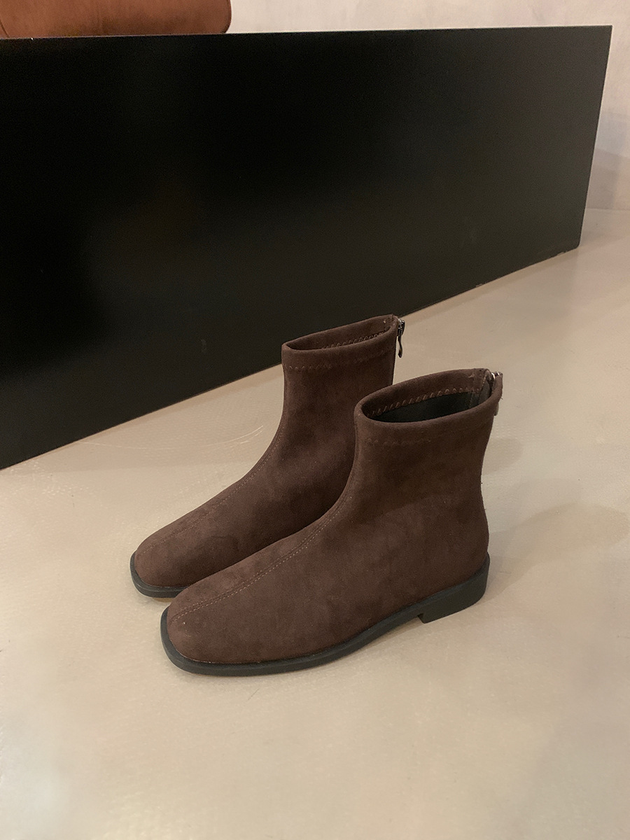 빈티지 스웨이드 프랑스 발목 부츠 여성의 2024 새로운 가을과 겨울 낮은 뒤꿈치 블랙 얇은 짧은 튜브 마틴 부츠