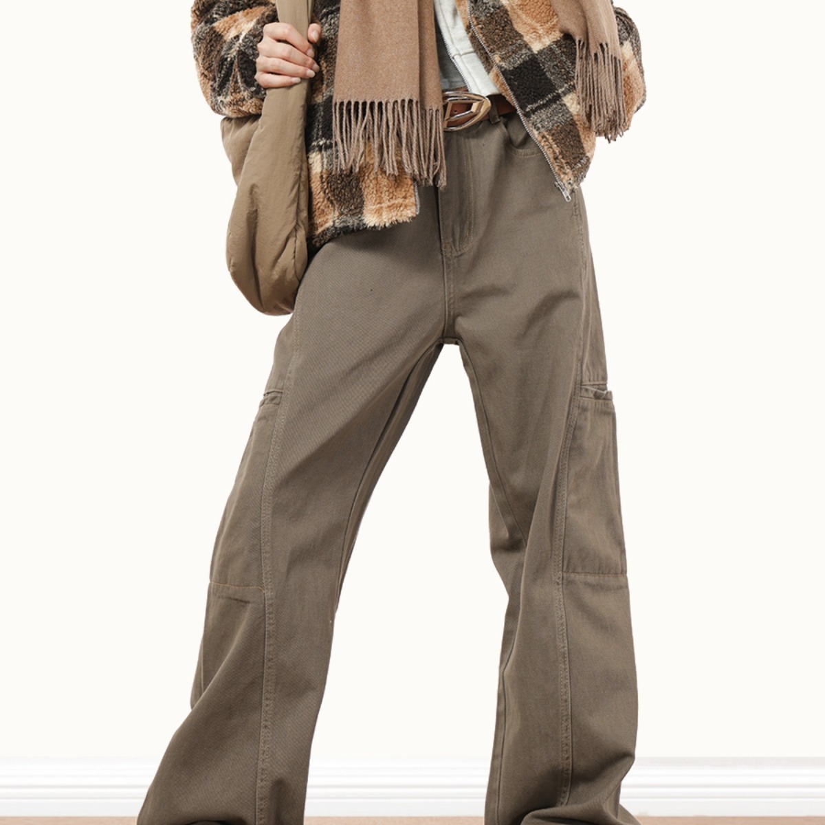 아메리칸 스타일 레트로 마일라드 다크 브라운 멀티 포켓 툴링 청바지 남성용 하이 스트리트 스트레이트 마이크로 클렌핏 바지스토어 가기
