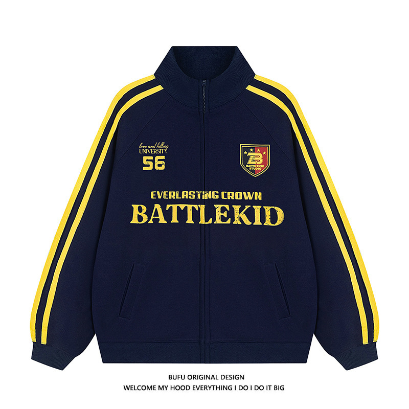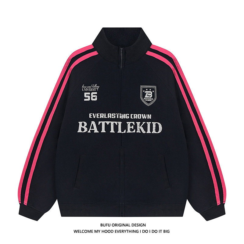 미국 스타일의 트렌디 한 브랜드 스트라이프 카디건 지퍼 스웨트 남성과 여성을위한 봄과 가을 느슨한 캐주얼 스포츠 커플 재킷 올 매치