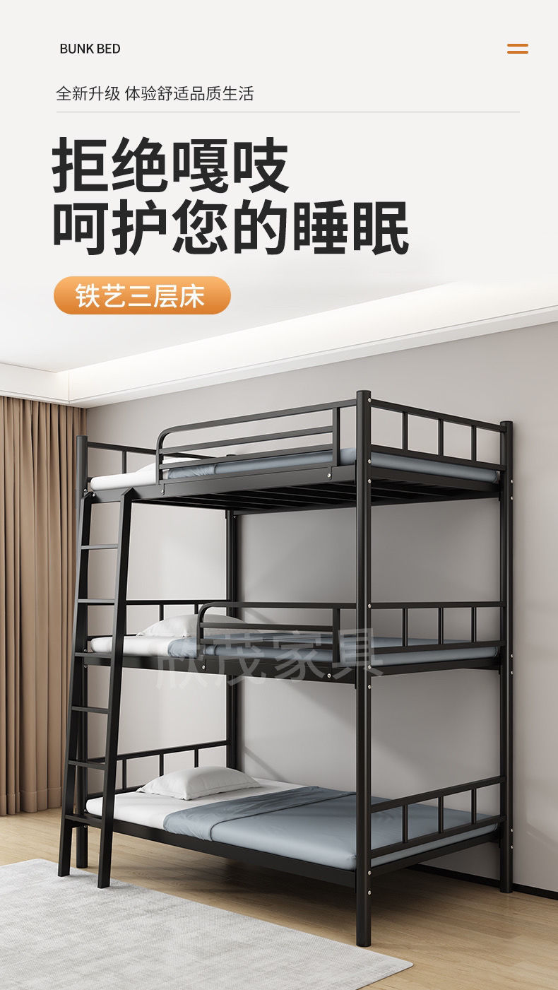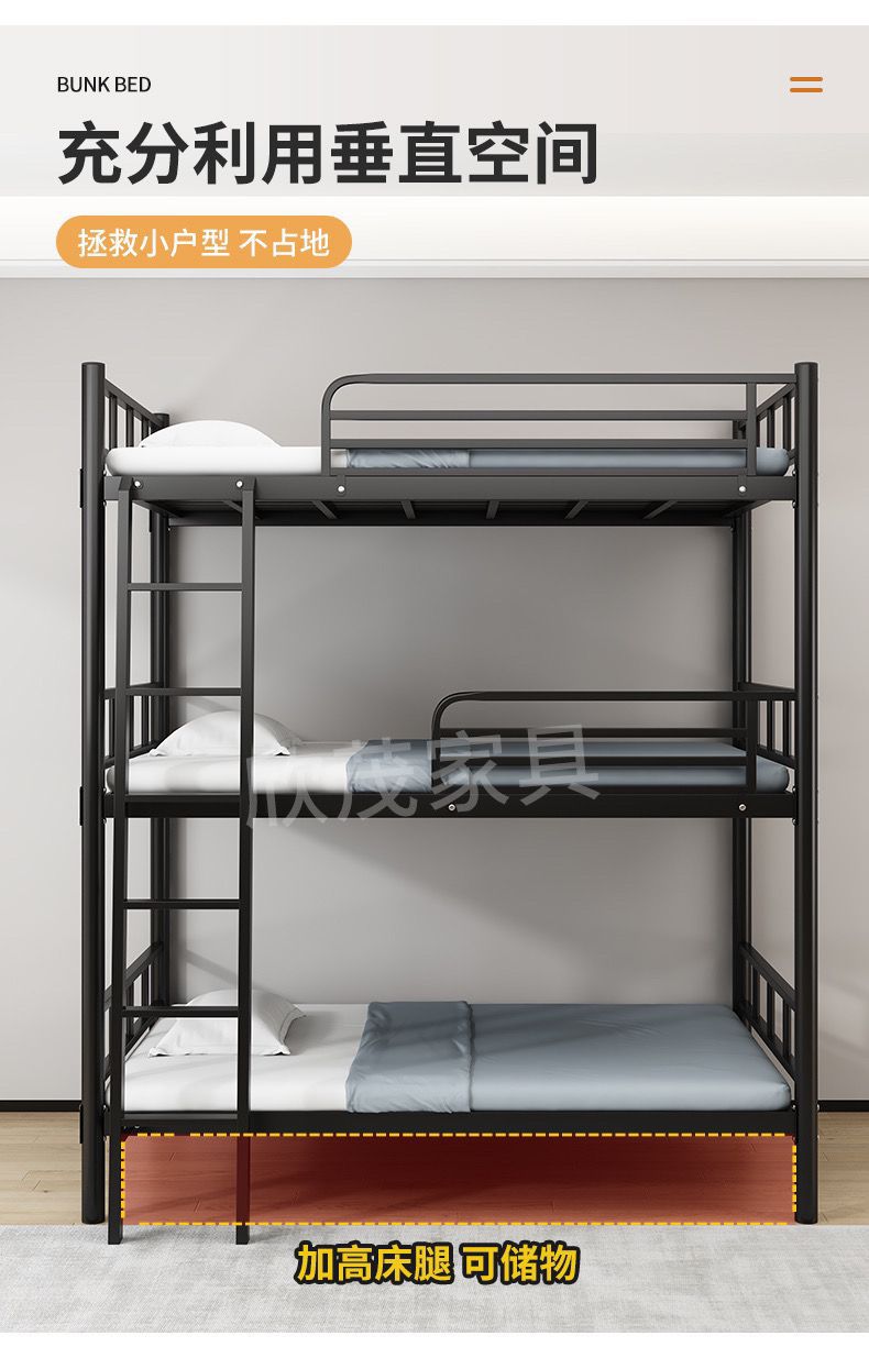 높고 낮은 철 철 프레임 침대 기숙사 철 침대 벙크 침대 스틸 프레임 직원 기숙사 아파트 더블 3 층 침대스토어 가기