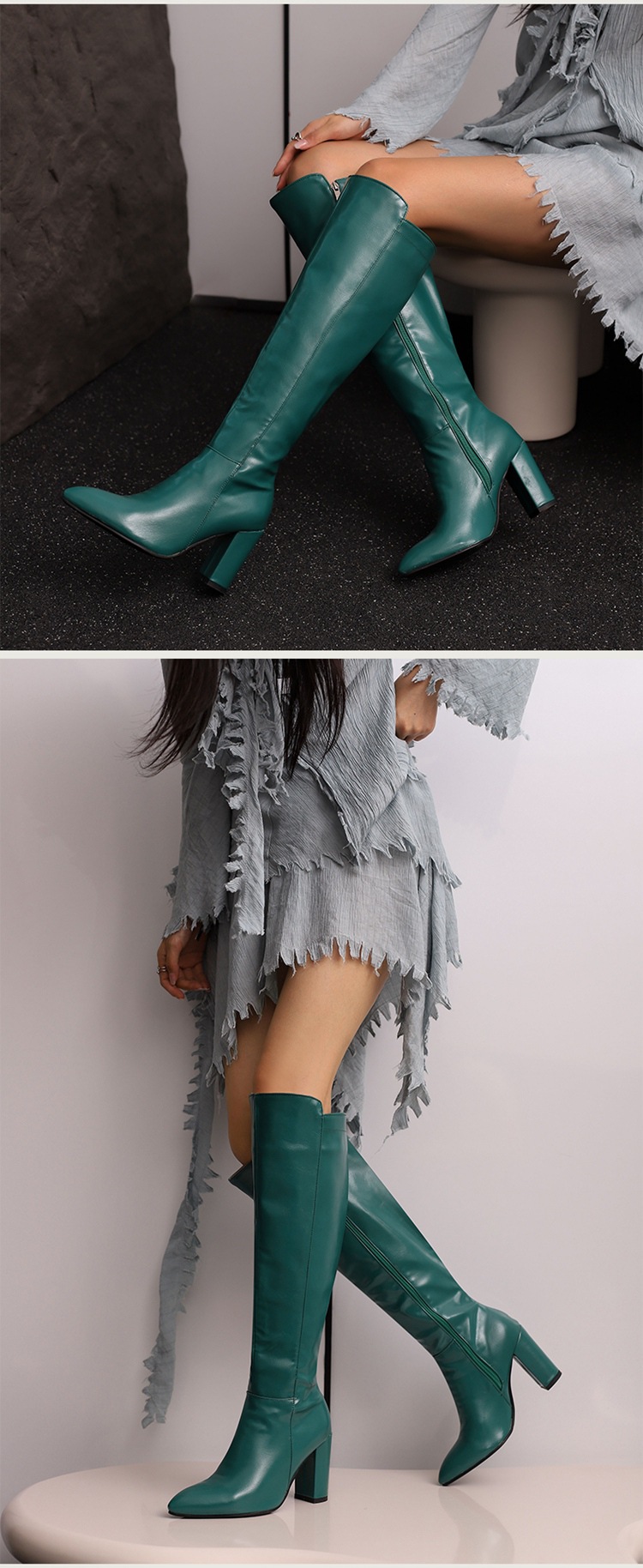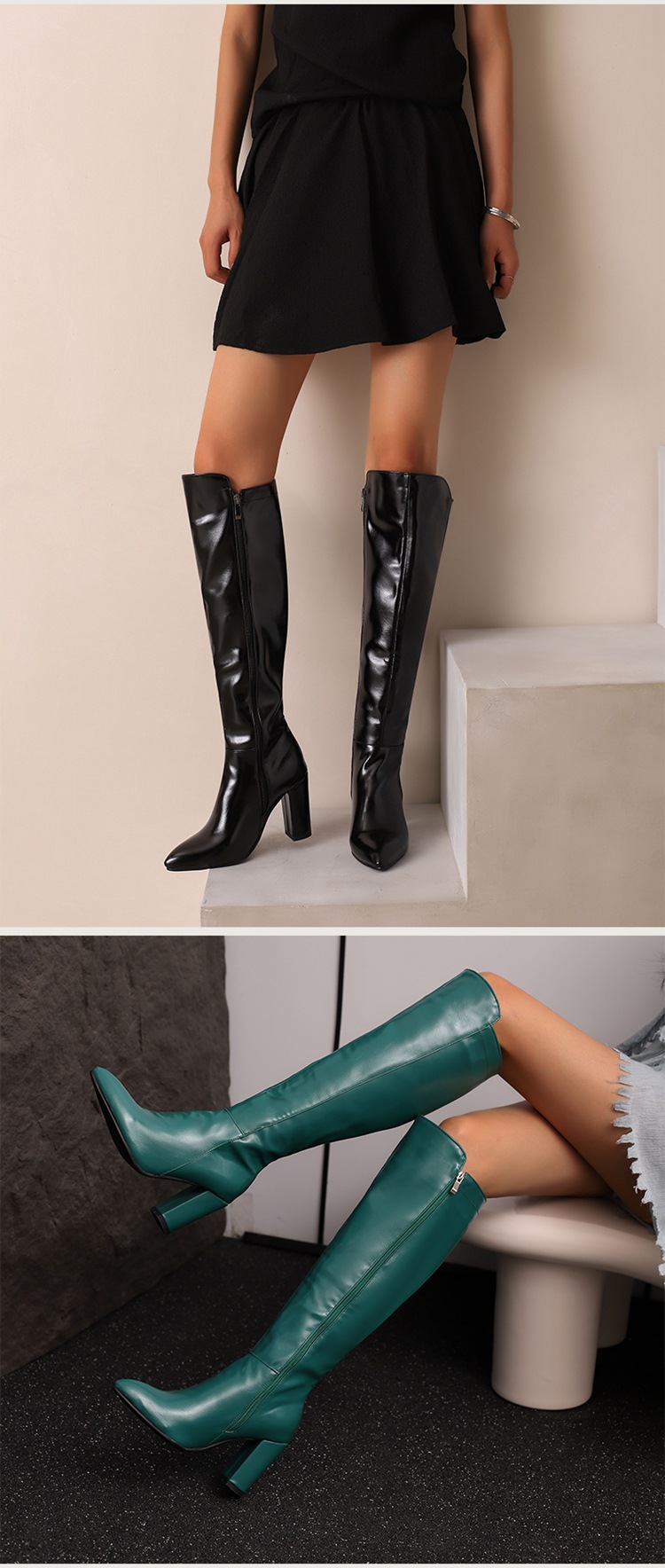 34-43 대형 부츠 레트로 뾰족한 두꺼운 힐 높은 부츠 여성 가을 및 겨울 새 기사 부츠 그러나 무릎 부츠는 국경을 넘어