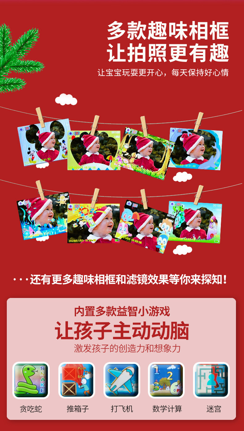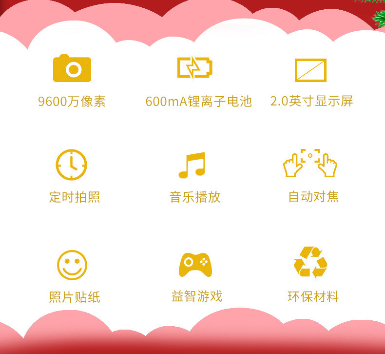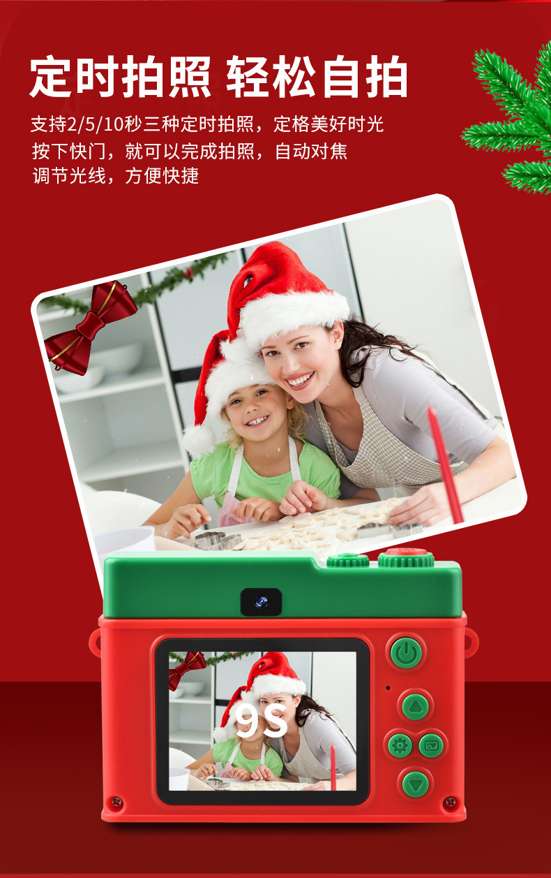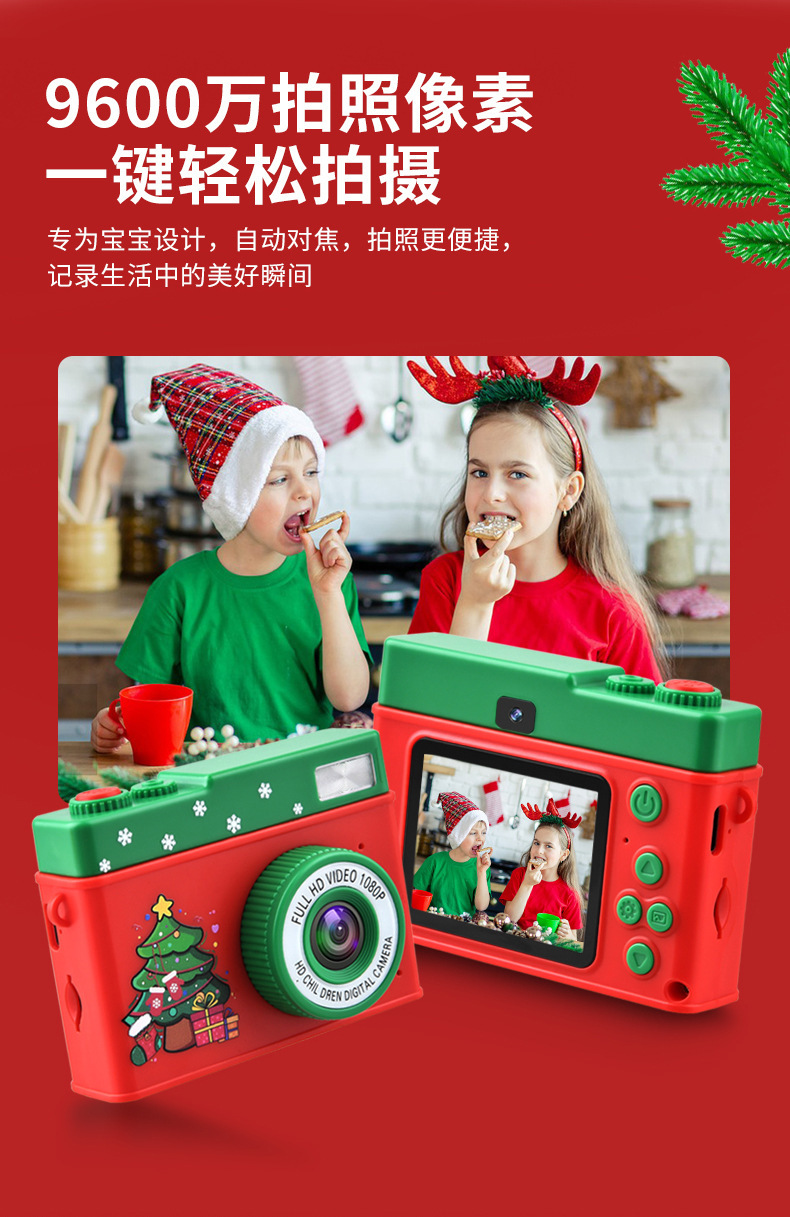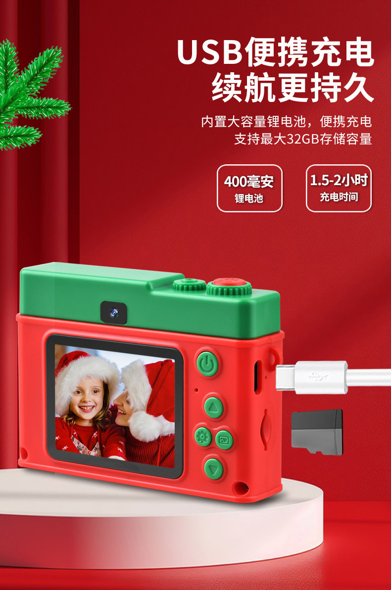 새로운 크리스마스 선물 어린이 카메라 9600W 전면 및 후면 더블 카메라 사진 및 비디오 전송 휴대 전화 장난감 도매스토어 가기