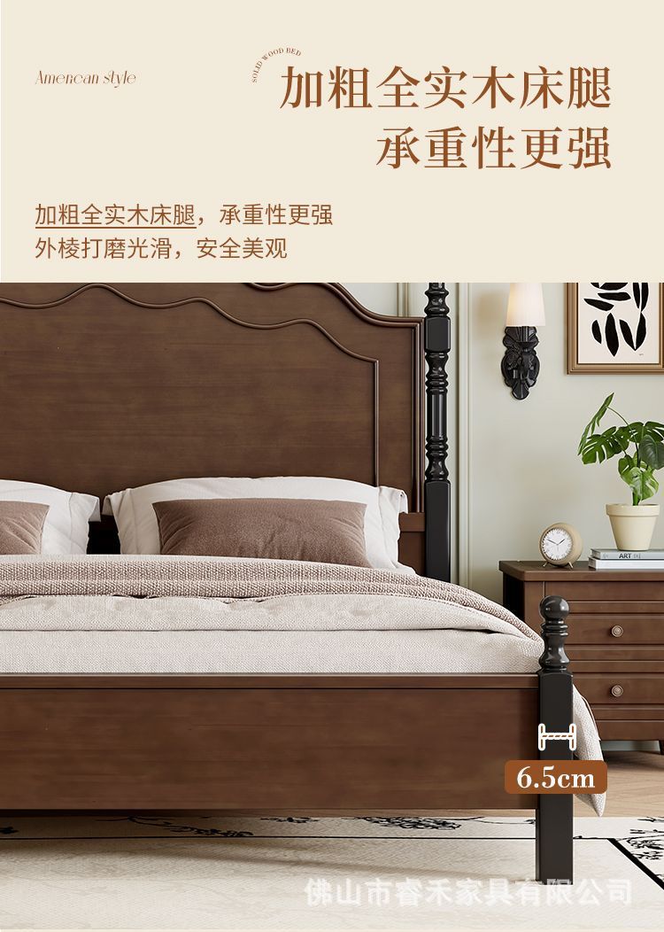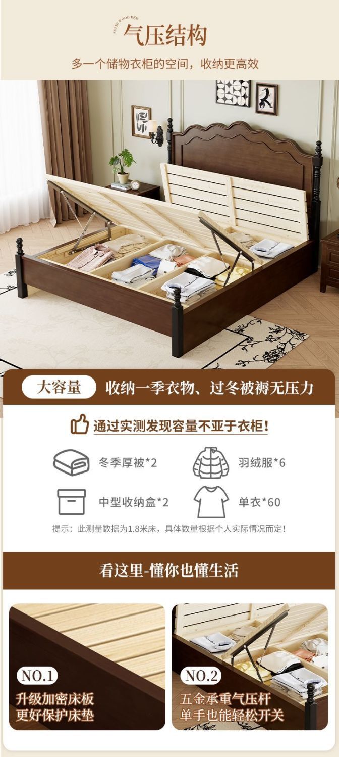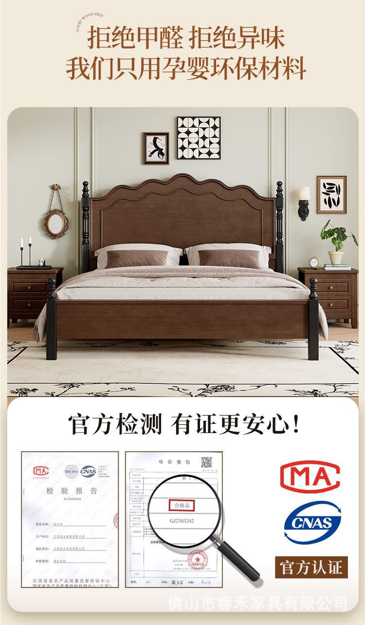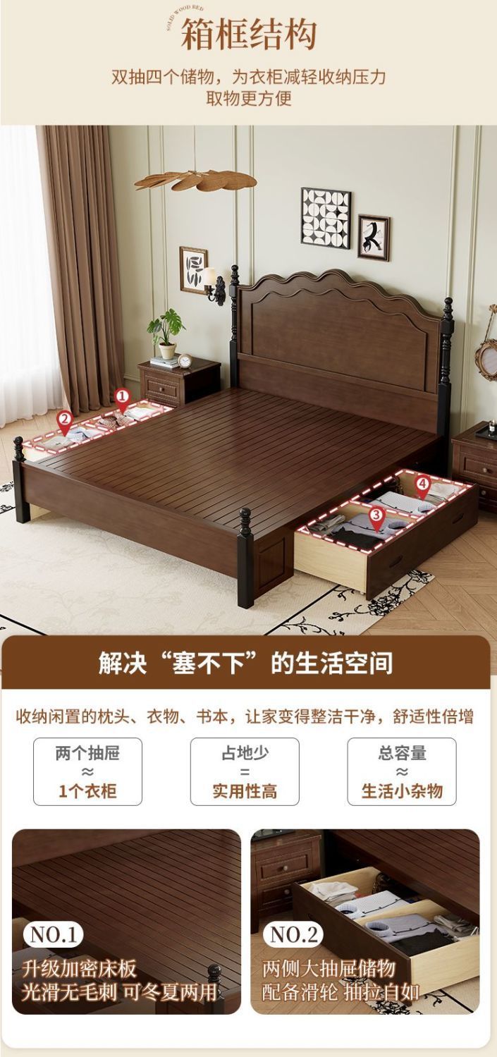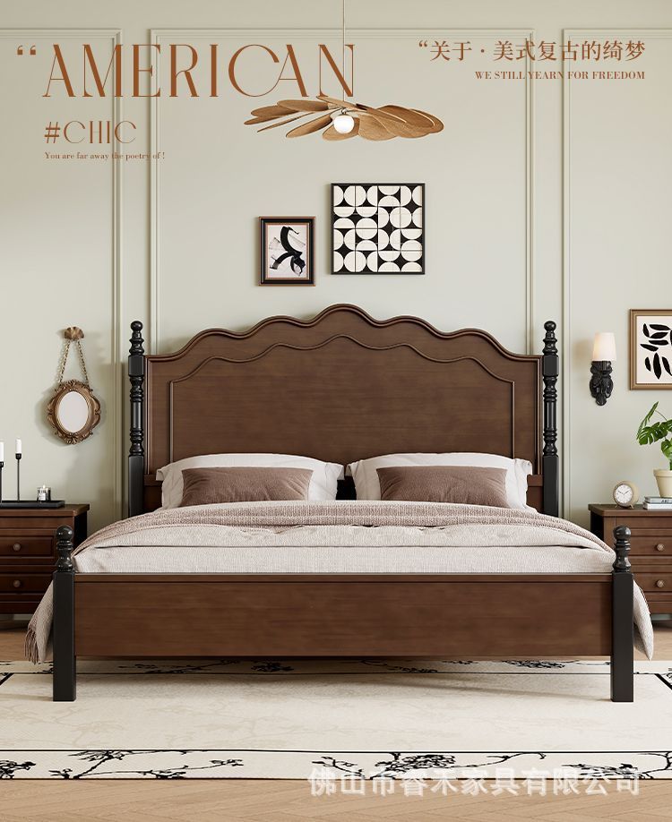 미국 스타일의 단단한 나무 침대 현대 간단한 1.5m1.8m 더블 침대 중간 고대 침대 복고풍 프랑스 스타일 침대 마스터 침실 빛 고급 웨딩 침대스토어 가기