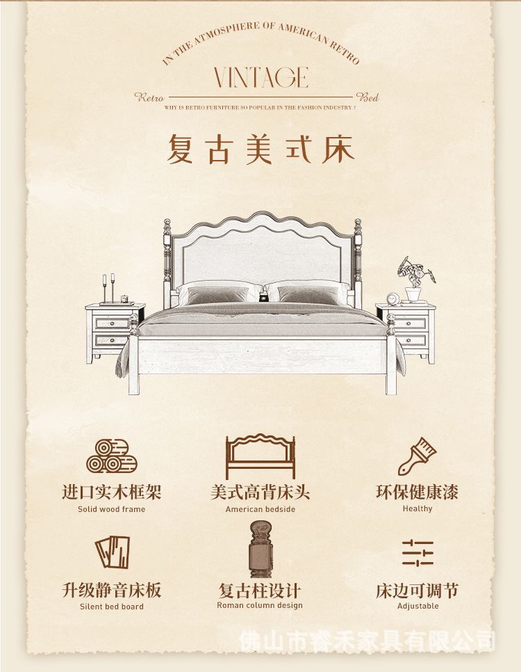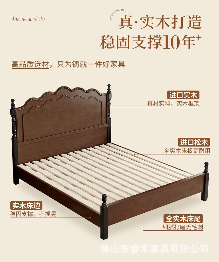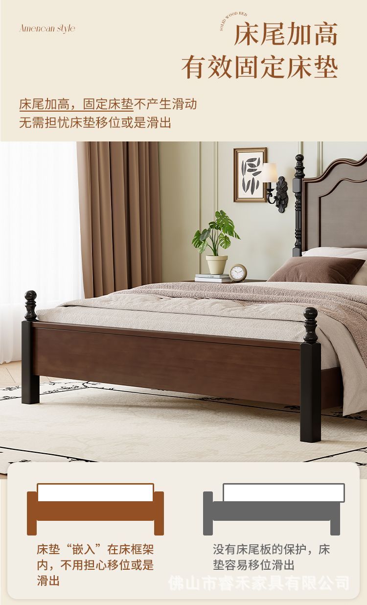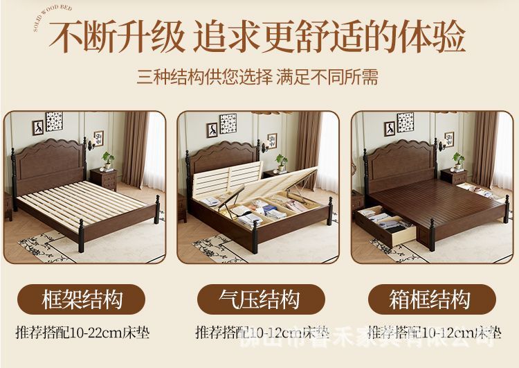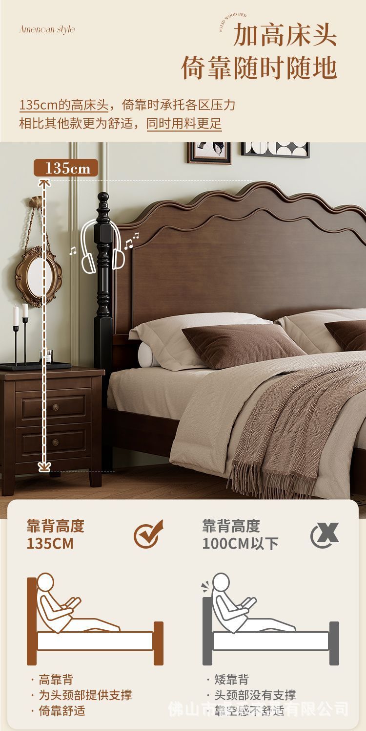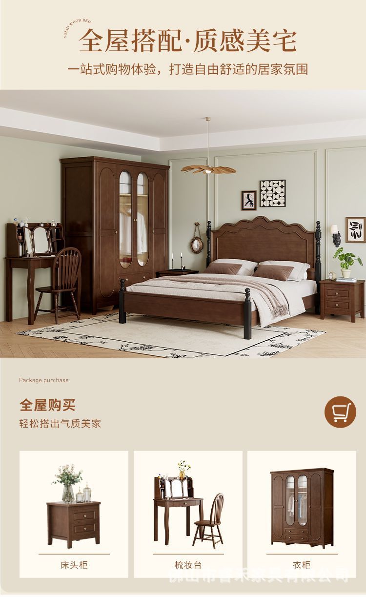 미국 스타일의 단단한 나무 침대 현대 간단한 1.5m1.8m 더블 침대 중간 고대 침대 복고풍 프랑스 스타일 침대 마스터 침실 빛 고급 웨딩 침대스토어 가기