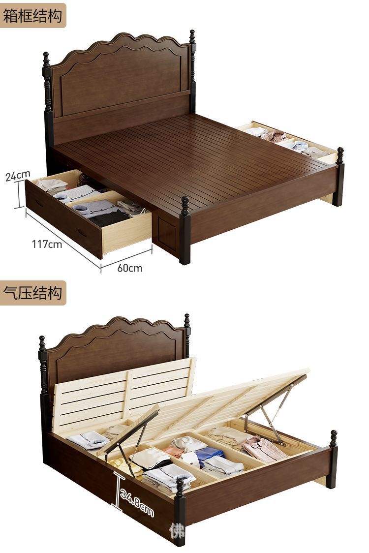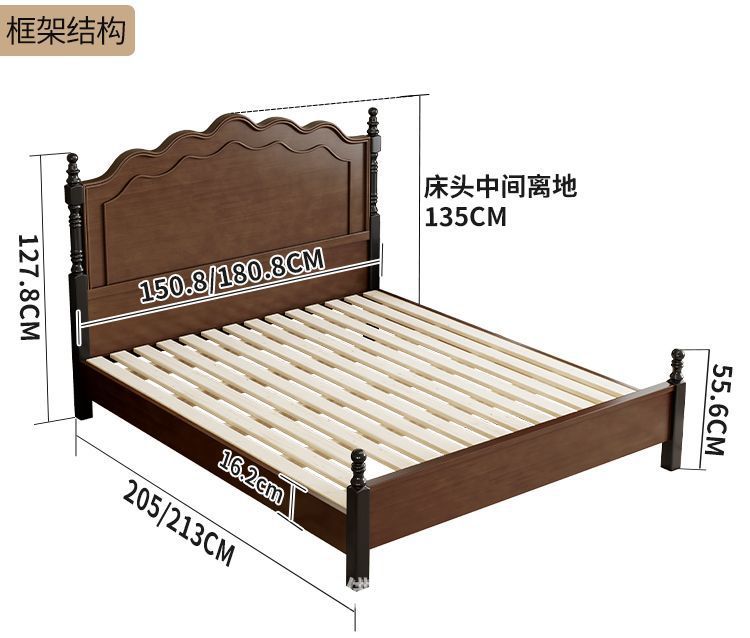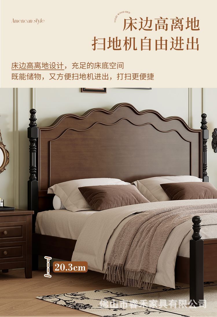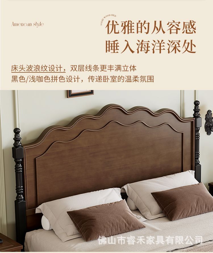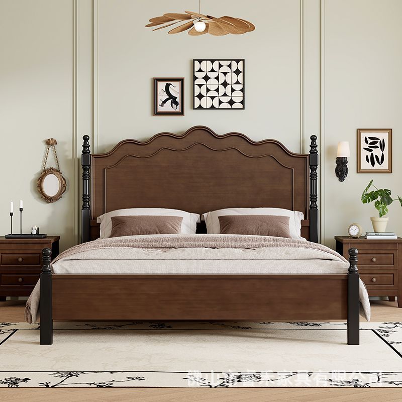 미국 스타일의 단단한 나무 침대 현대 간단한 1.5m1.8m 더블 침대 중간 고대 침대 복고풍 프랑스 스타일 침대 마스터 침실 빛 고급 웨딩 침대