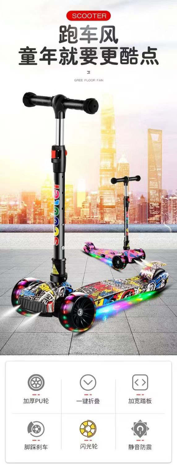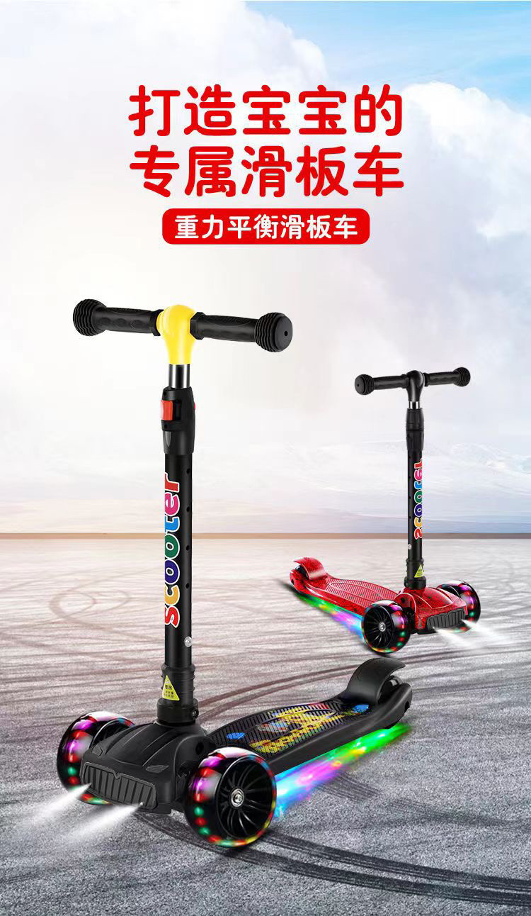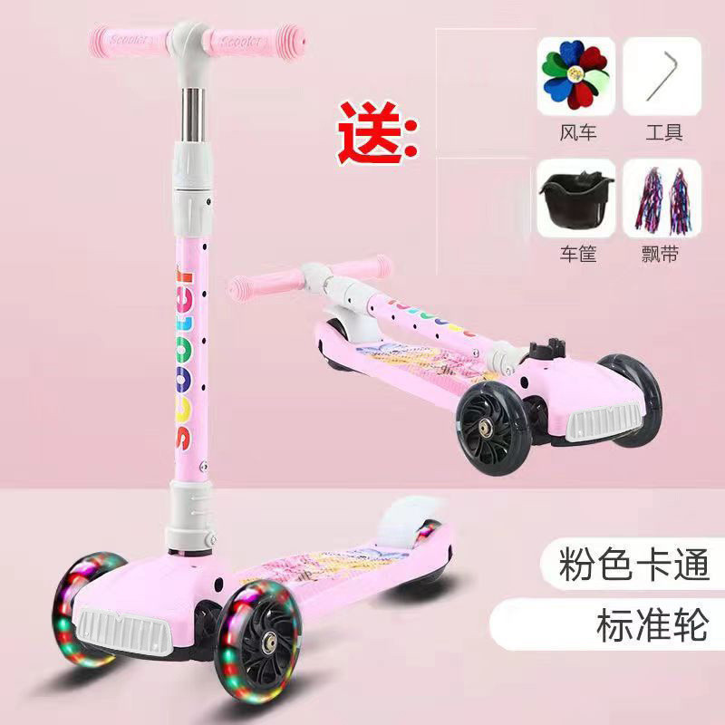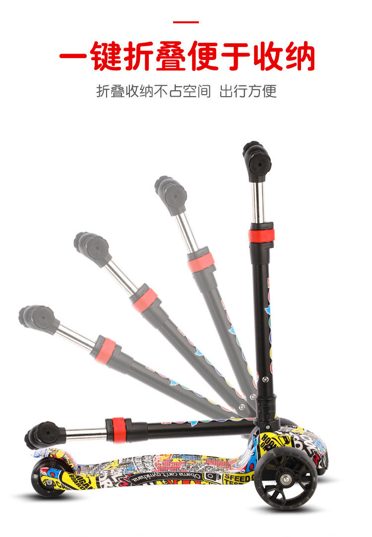 스쿠터 어린이 2-6-12 세 접는 음악 플래시 3 륜 스쿠터 아기 소년과 소녀 초보자 스쿠터
