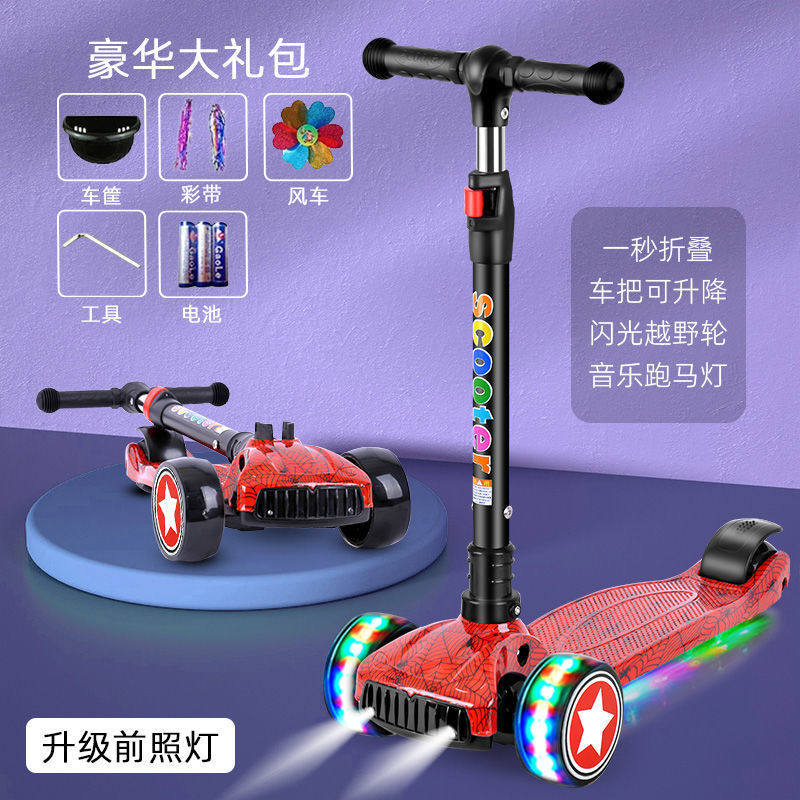스쿠터 어린이 2-6-12 세 접는 음악 플래시 3 륜 스쿠터 아기 소년과 소녀 초보자 스쿠터스토어 가기