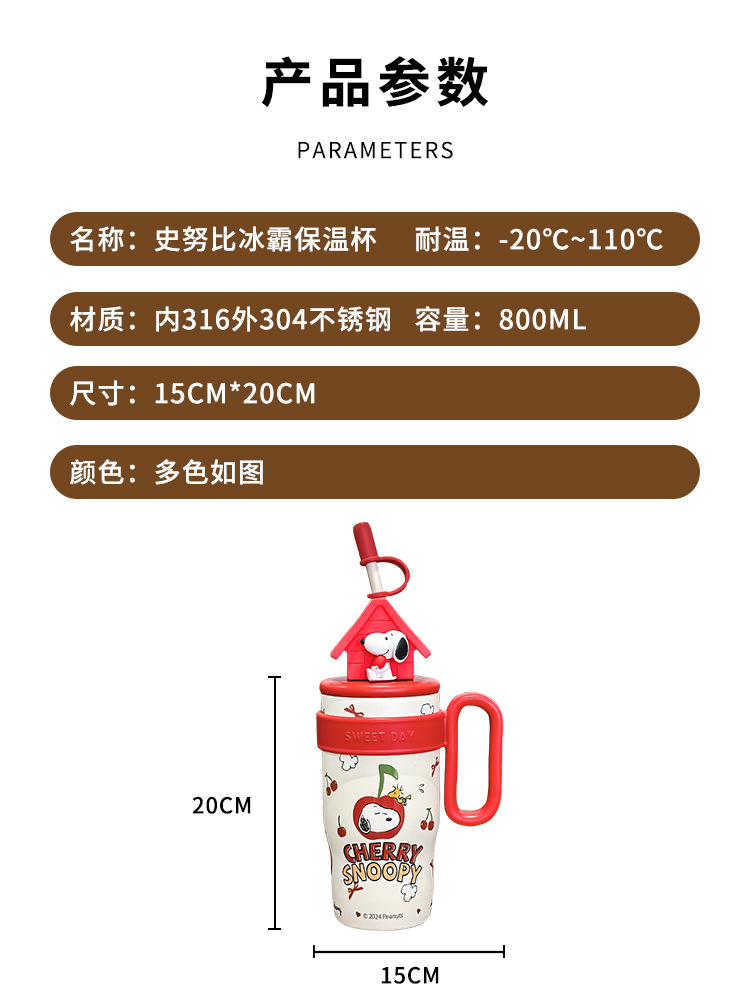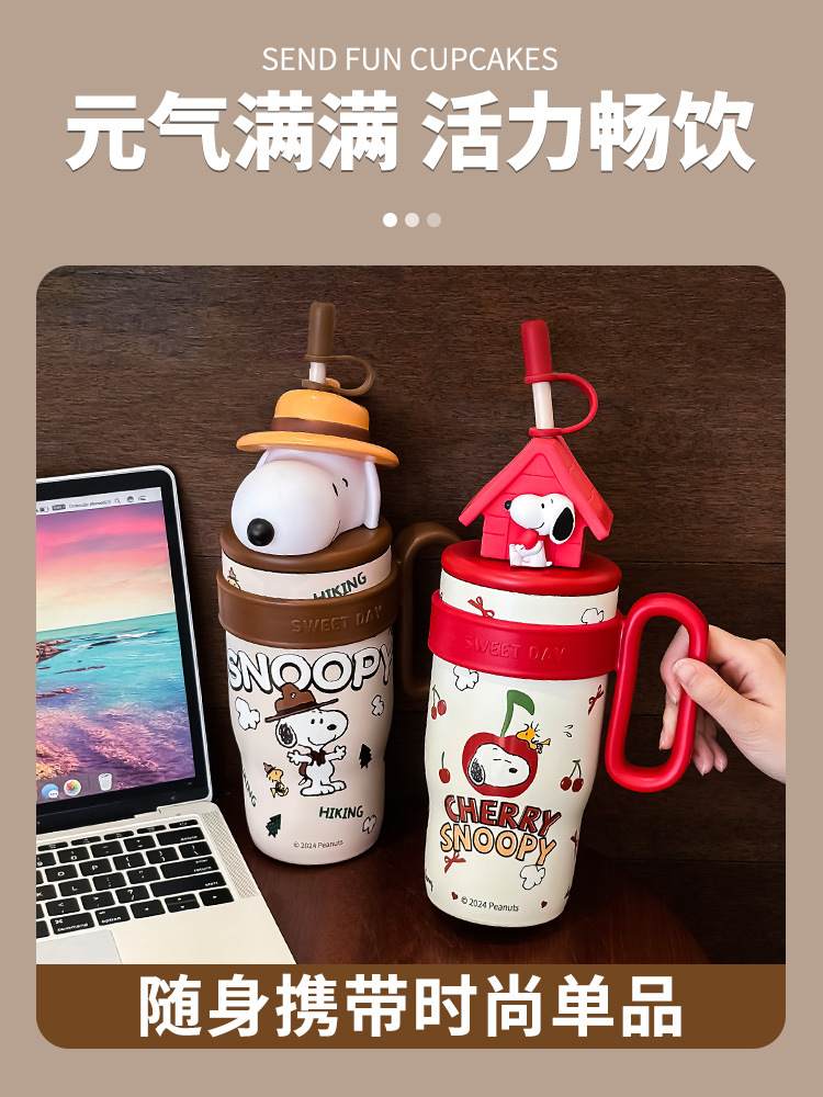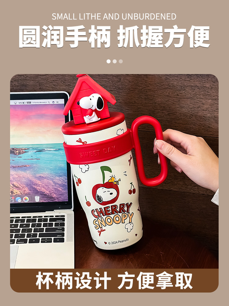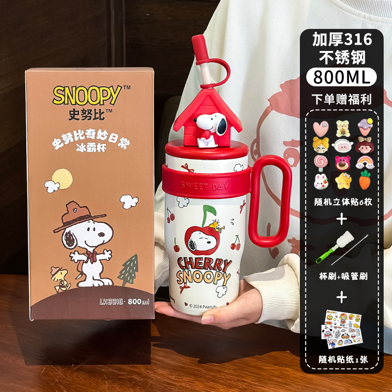 스누피 대용량 316 스테인레스 스틸 보온병 컵 소녀용 고급스러운 맥도날드 워터 컵 귀여운 학생 새 스타일