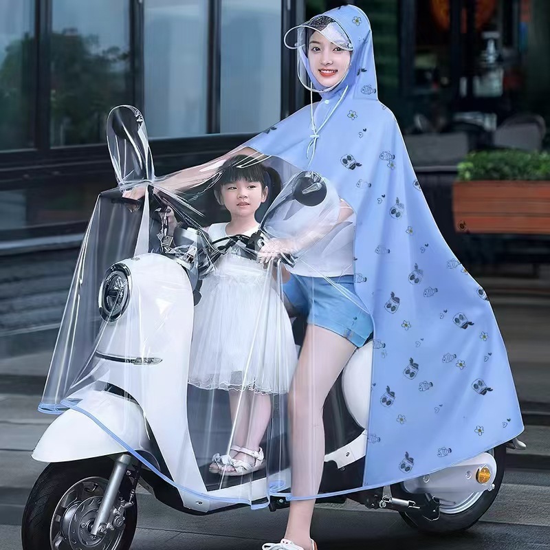 성인 및 어린이용 투명 전기차 우비, 두꺼운 긴 방수 우비, 어린이와 함께 타는 전기차용 우비스토어 가기