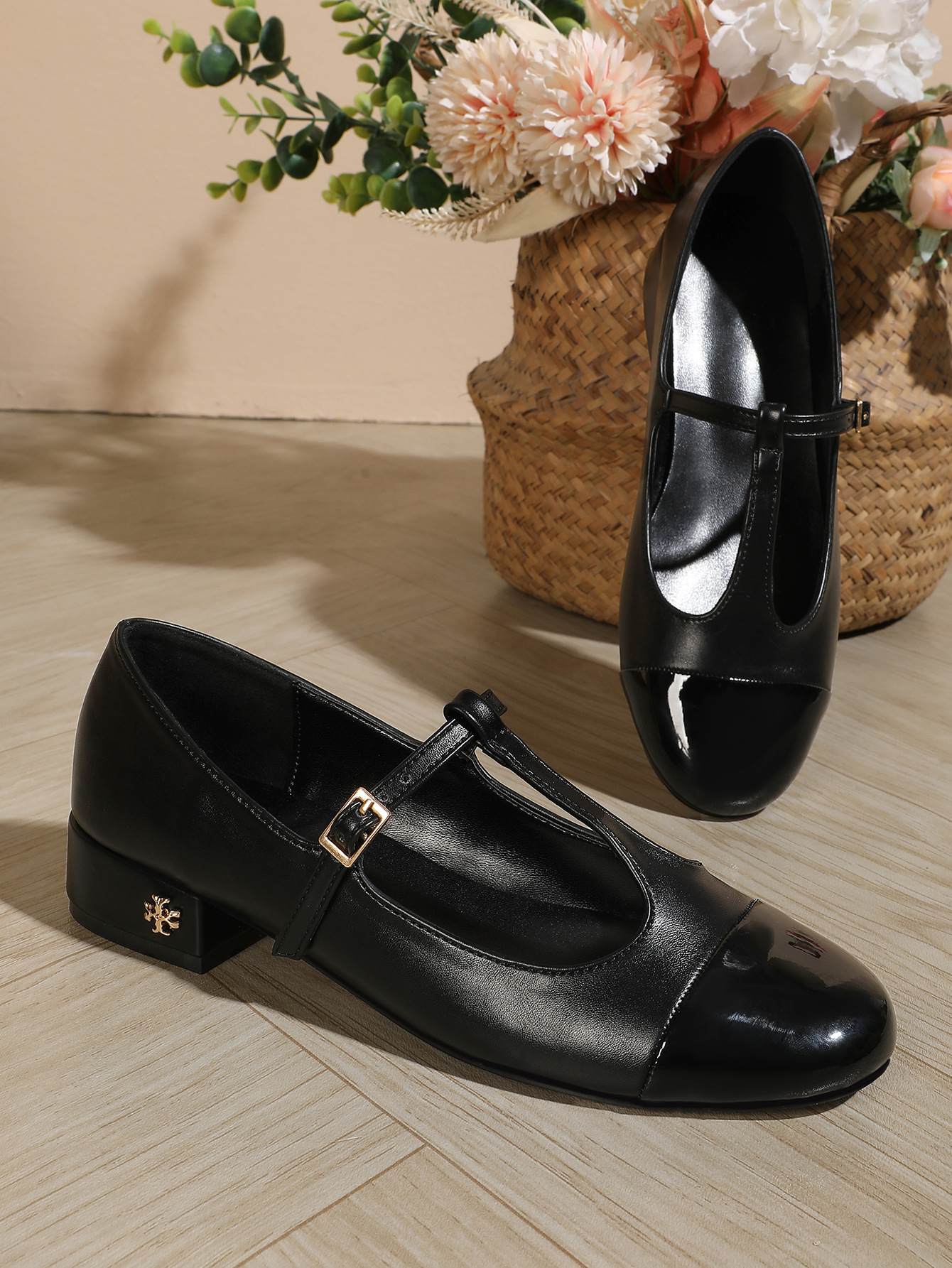 TB 올매치 캐주얼 청키 힐 싱글 레이어 신발 여성의 봄과 가을 2024 새로운 미드 힐 얕은 펌프 프랑스 하이힐 신발스토어 가기