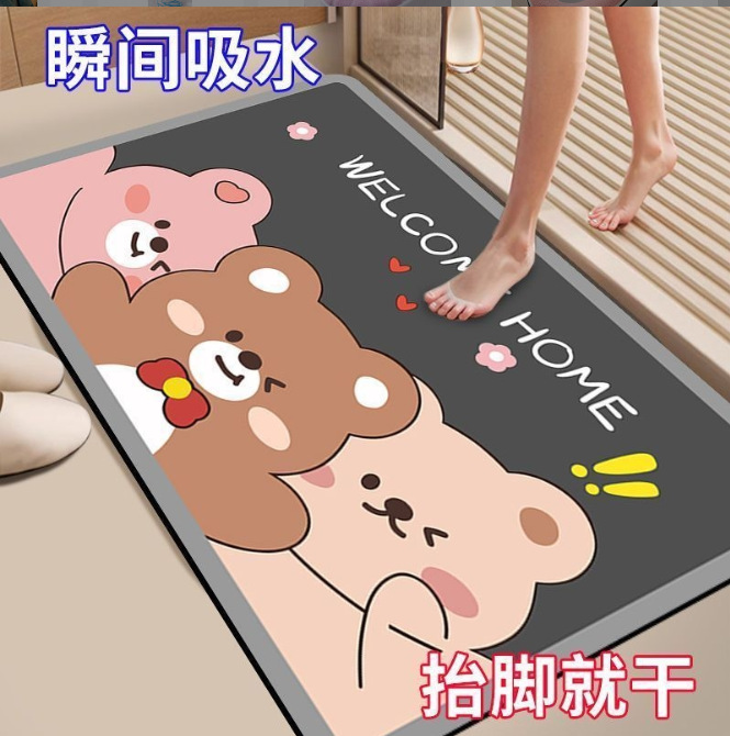 헬로 베어 디아 톰 진흙 스타일 바닥 매트 만화 욕실 바닥 매트 화장실 물 흡수성 발 매트 샤워 바닥 매트스토어 가기