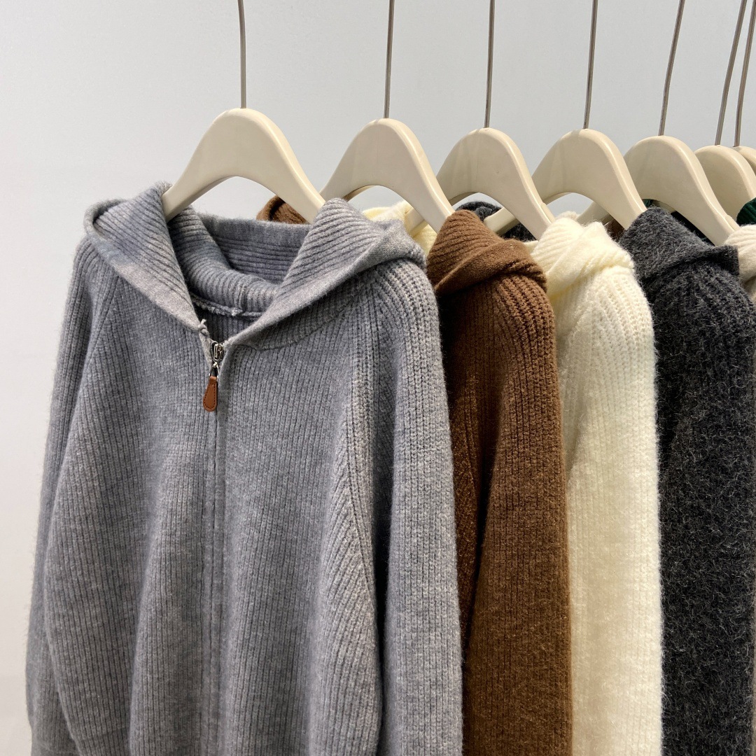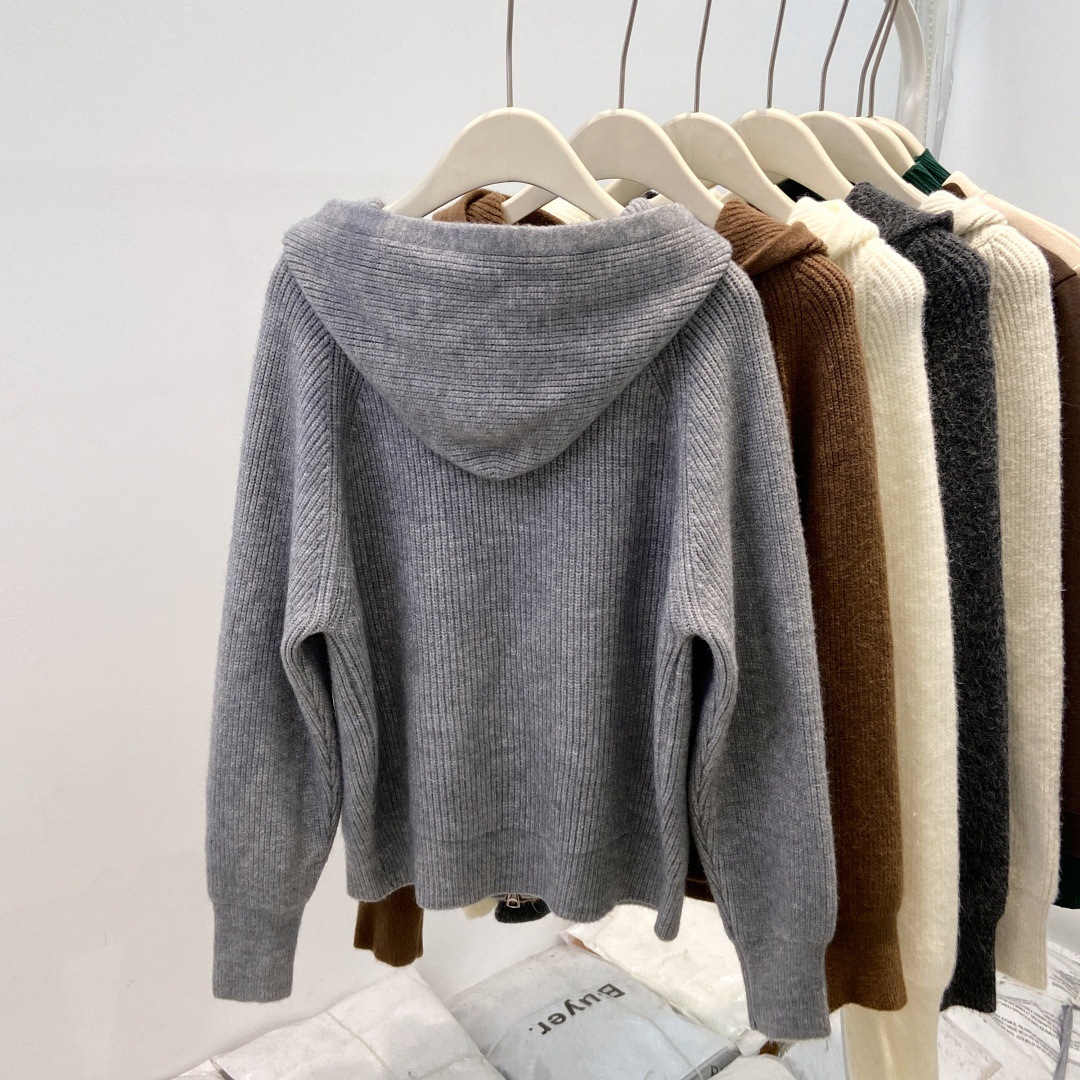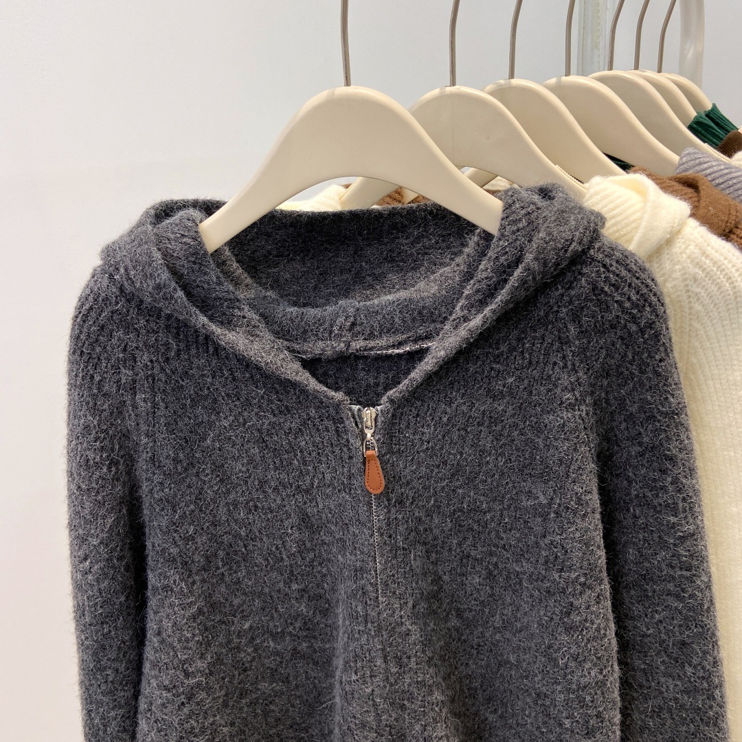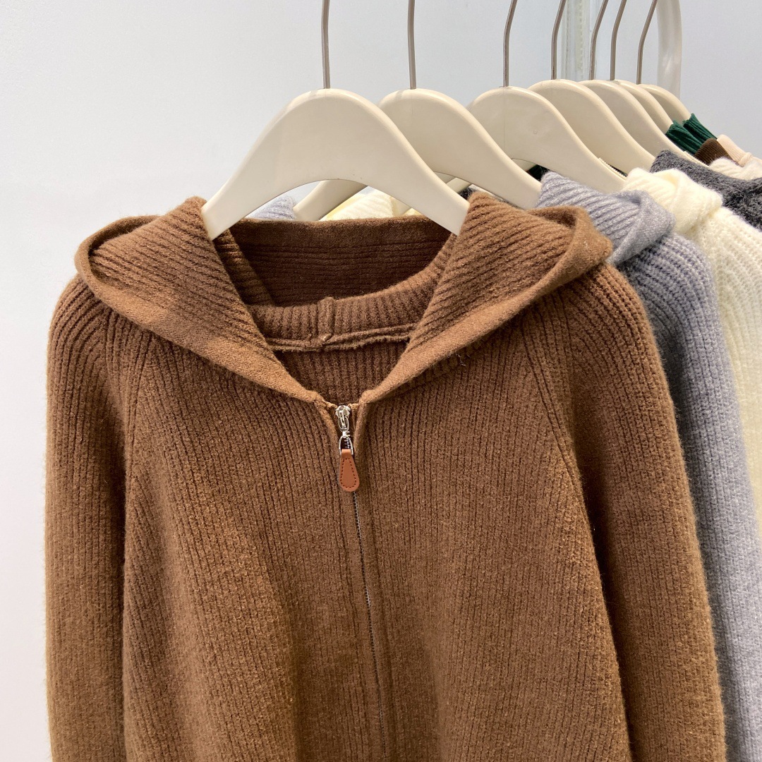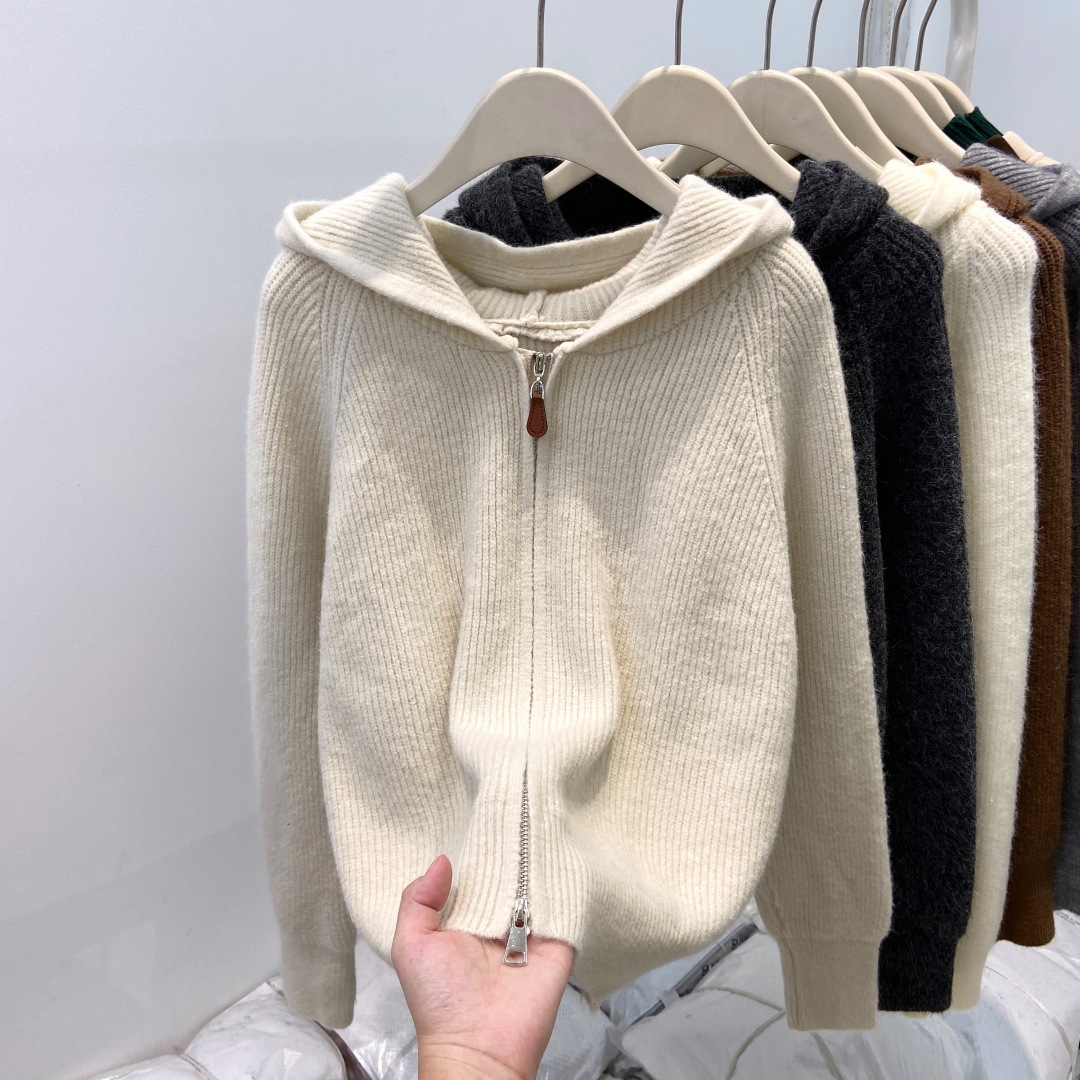 가을 겨울 더블 지퍼 니트 스웨터 재킷 여성용 2025 유행 후드 디자인 나이 감소 효과 작은 사이즈 카디건스토어 가기