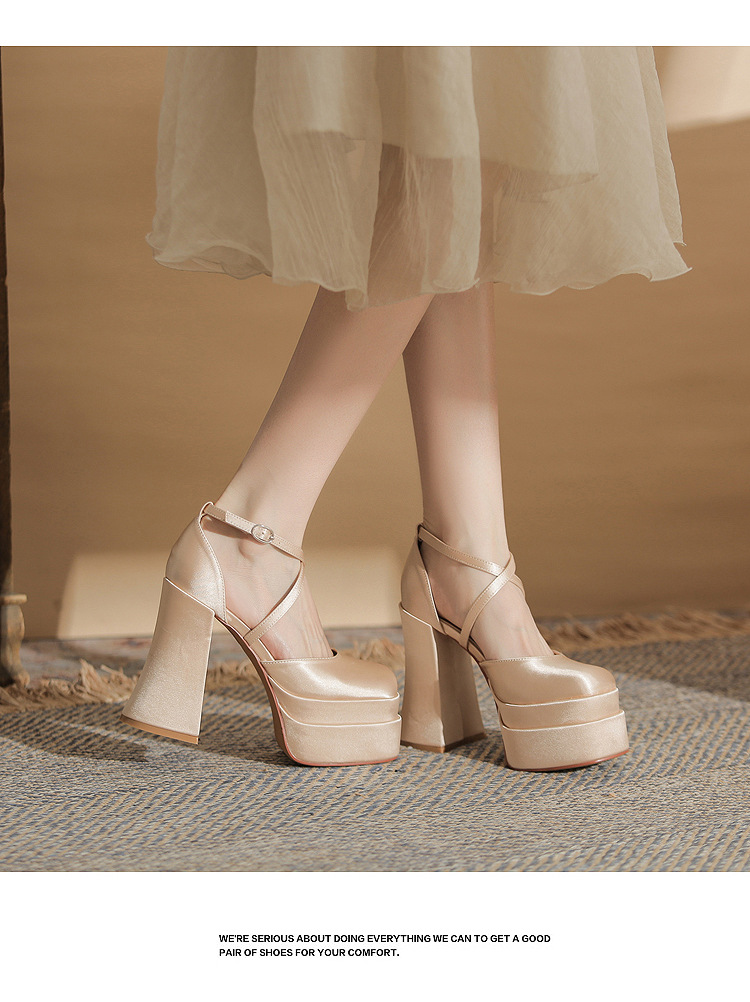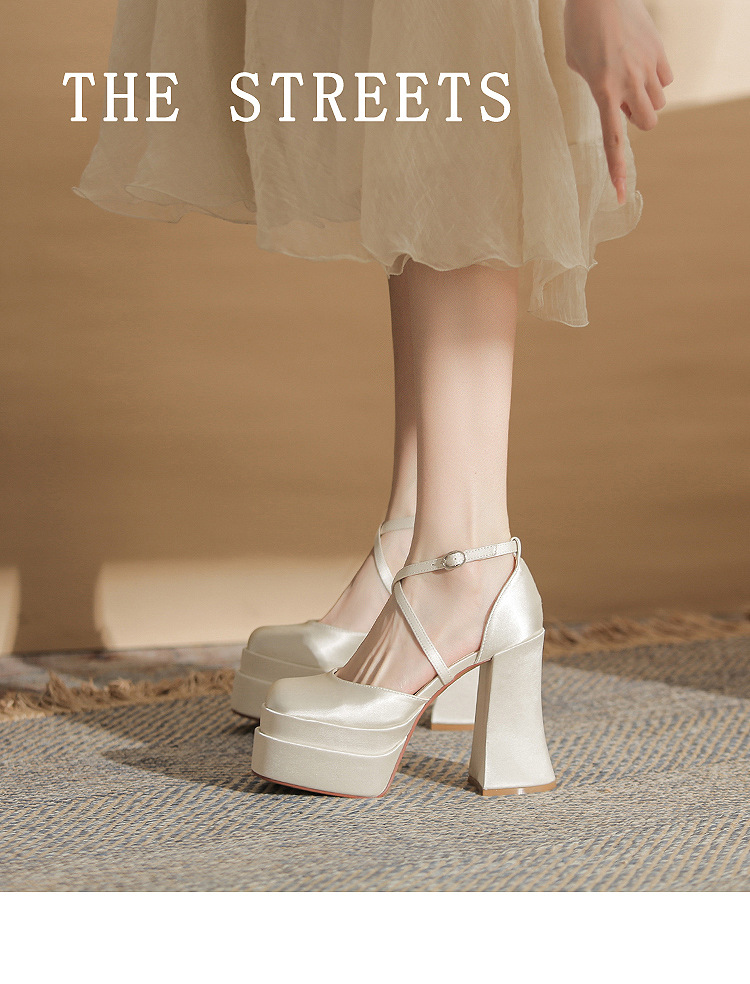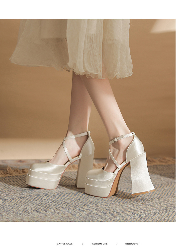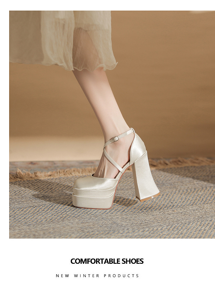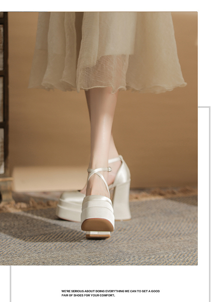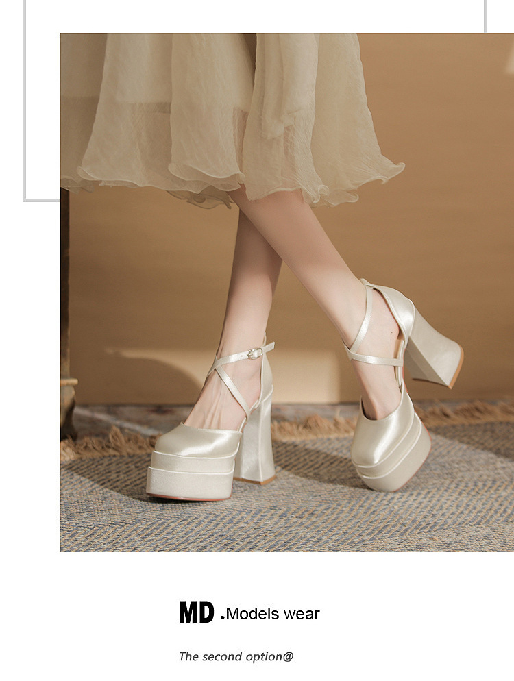 진강 MY12002 스퀘어 헤드 두꺼운 힐 빈 더블 레이어 방수 플랫폼 슈퍼 하이힐 신발 여성의 2024 웨딩 슈즈 신부 신발스토어 가기