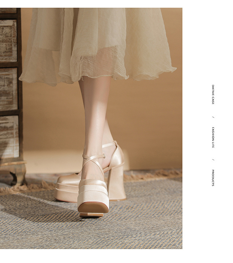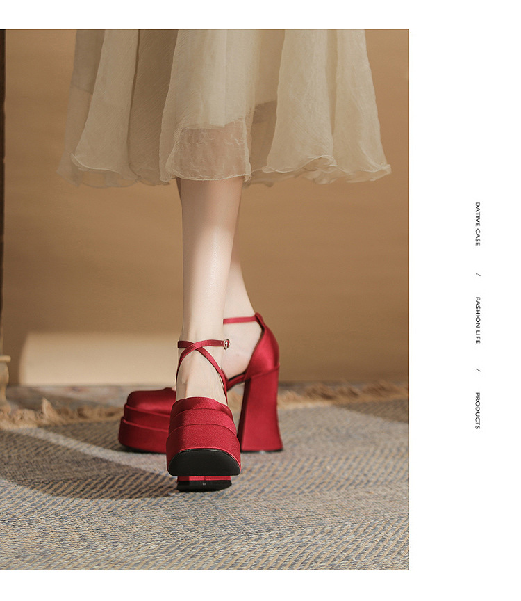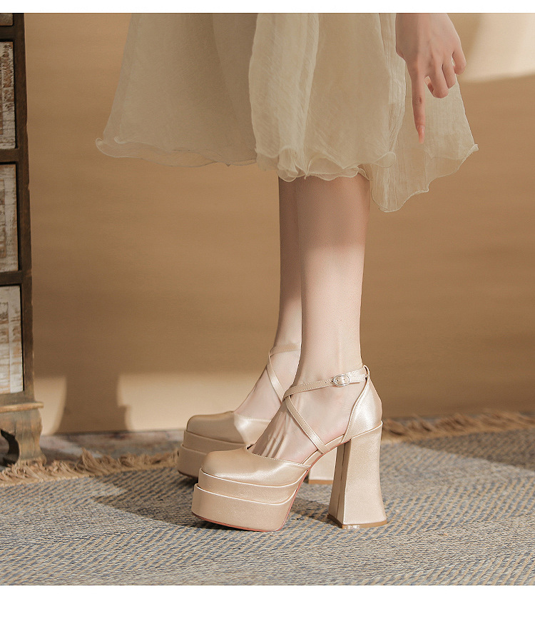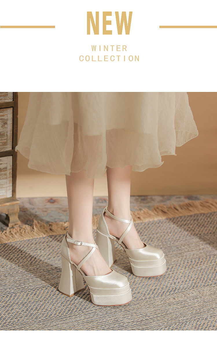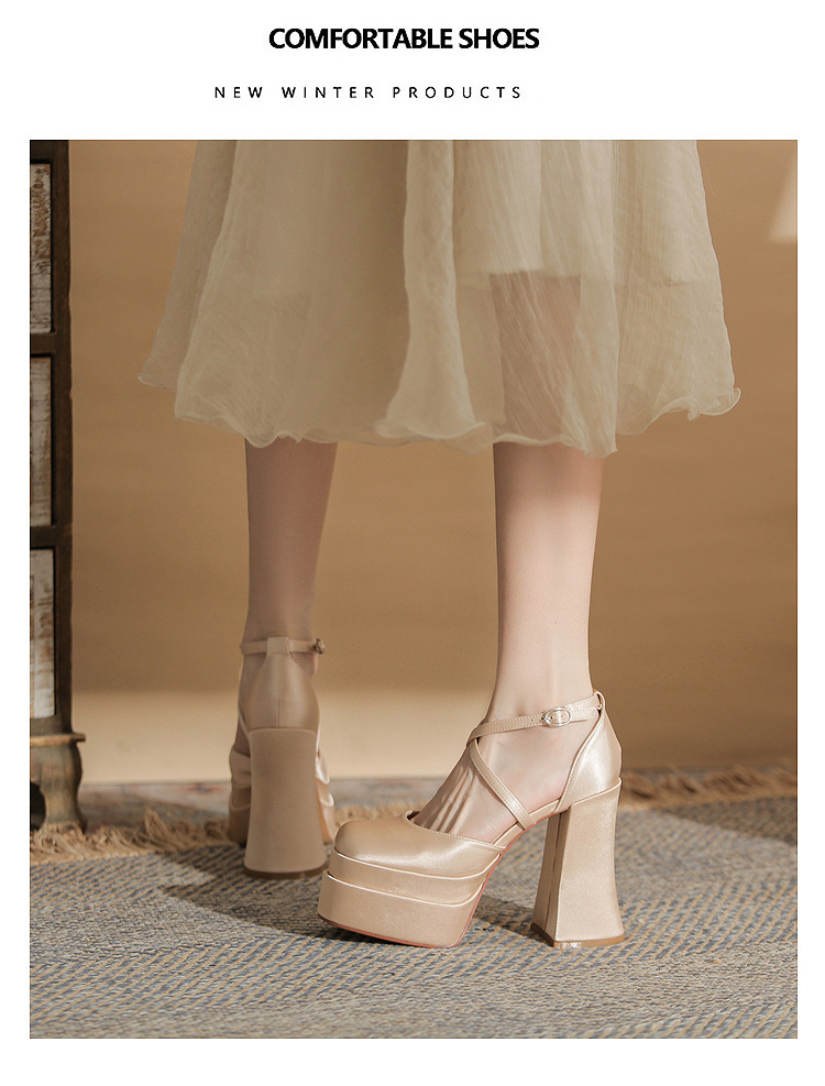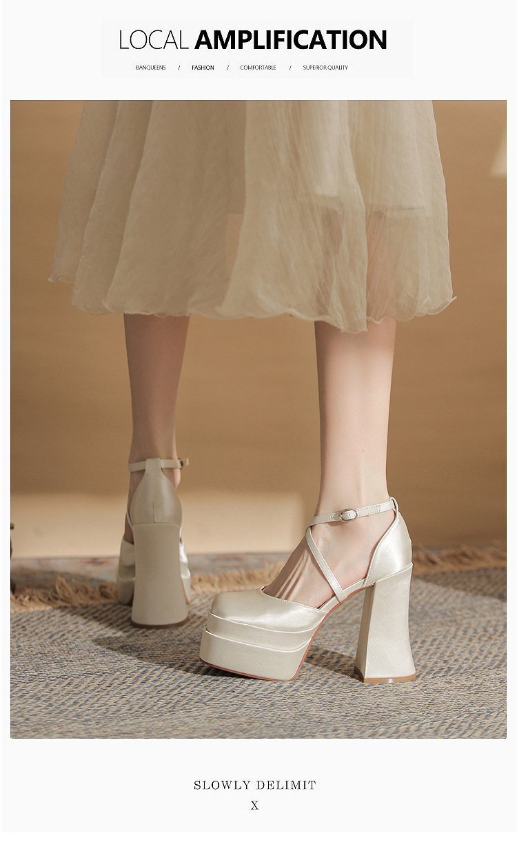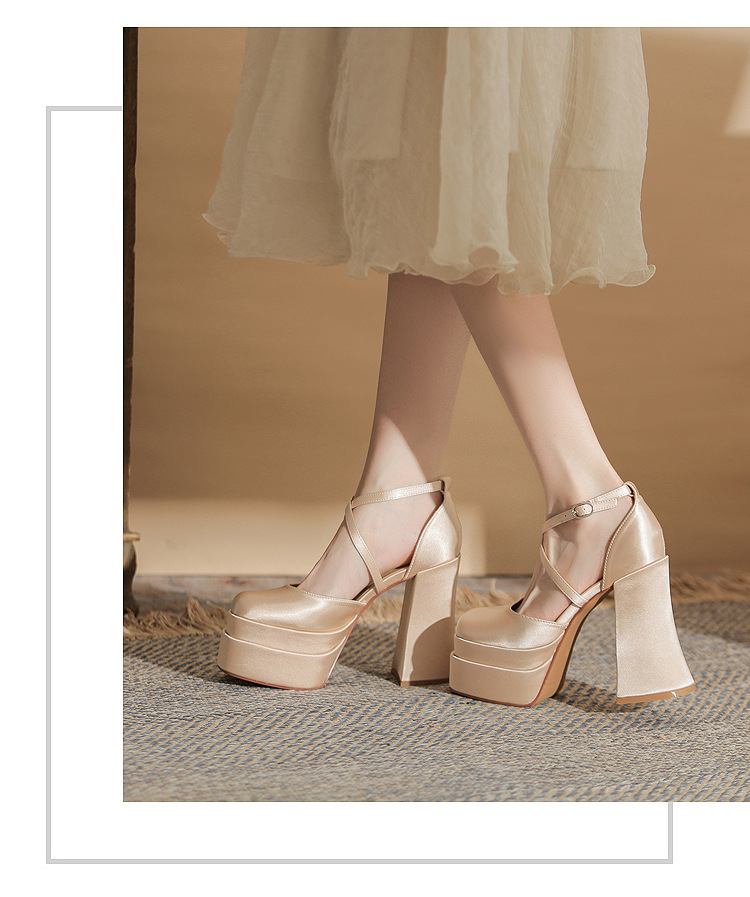 진강 MY12002 스퀘어 헤드 두꺼운 힐 빈 더블 레이어 방수 플랫폼 슈퍼 하이힐 신발 여성의 2024 웨딩 슈즈 신부 신발스토어 가기