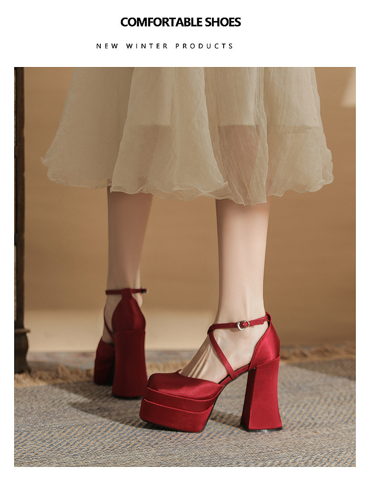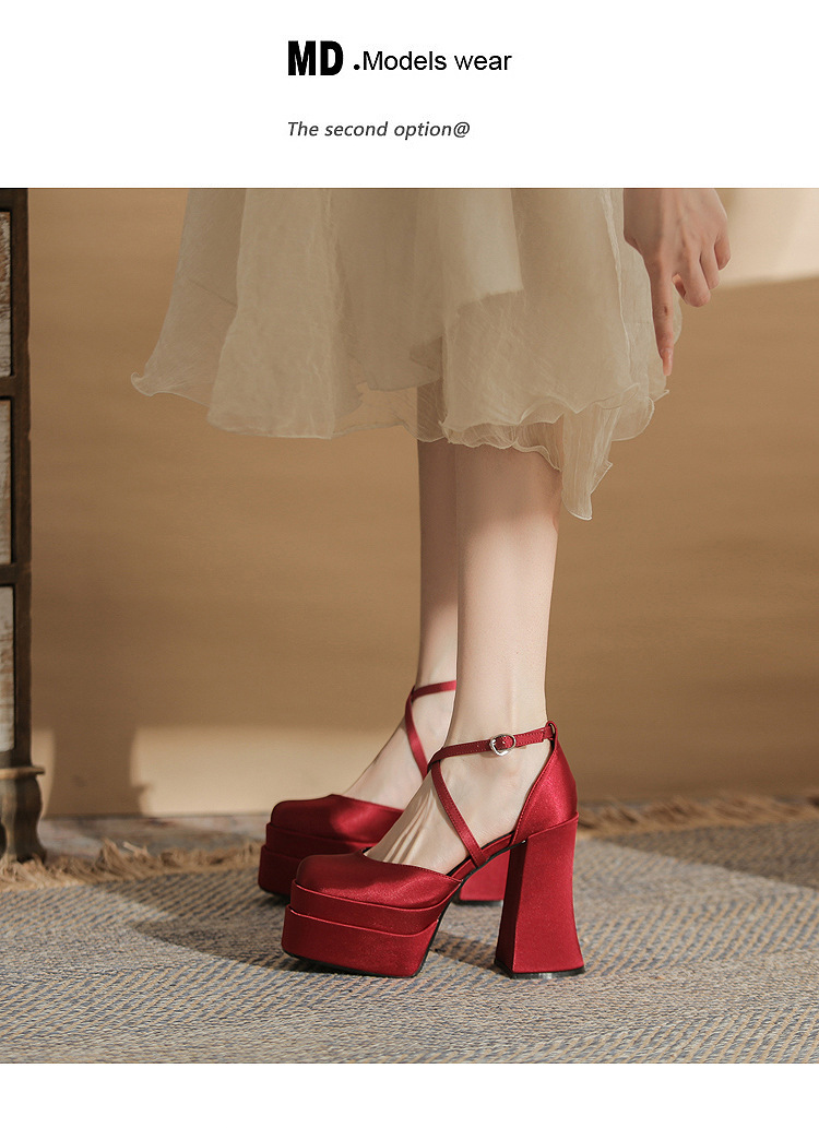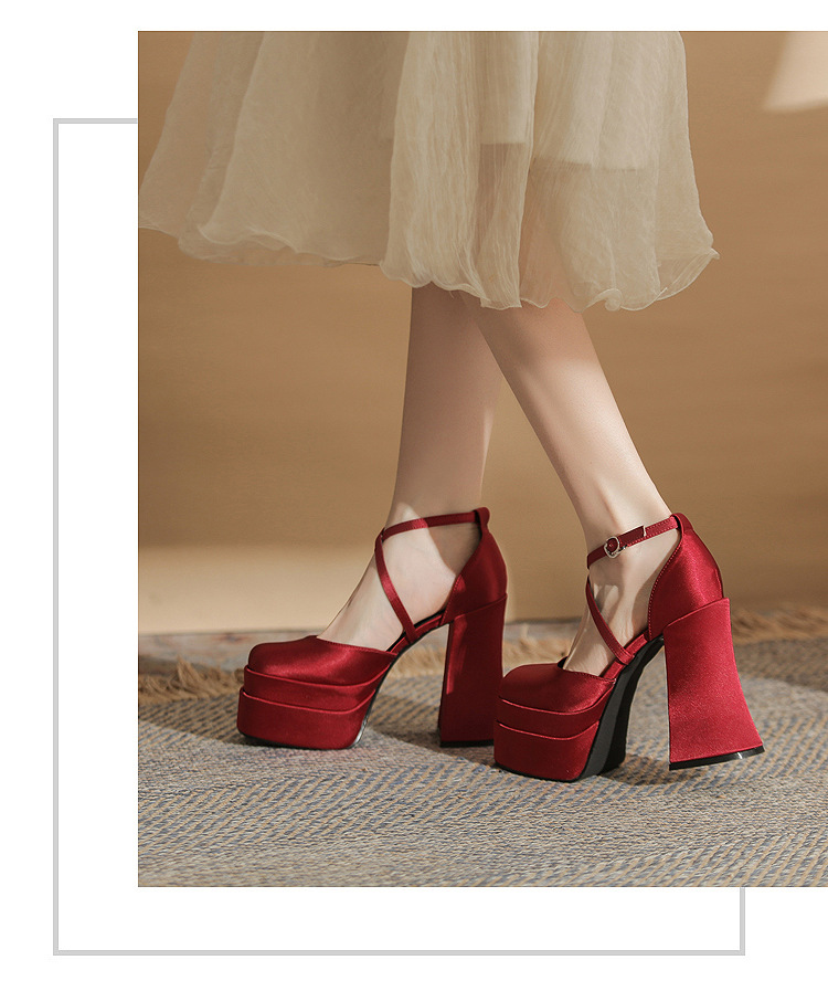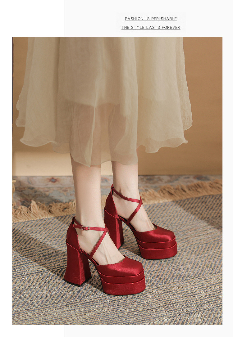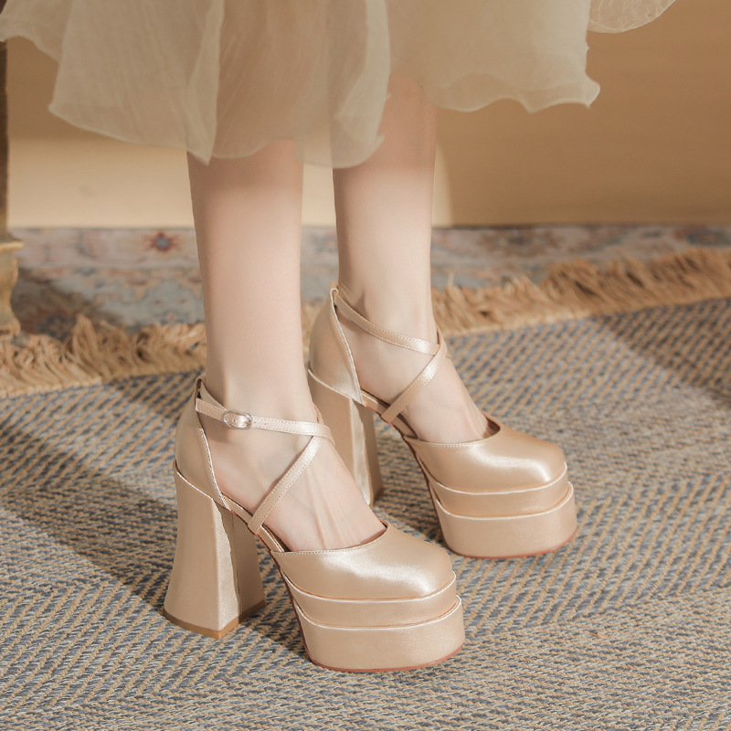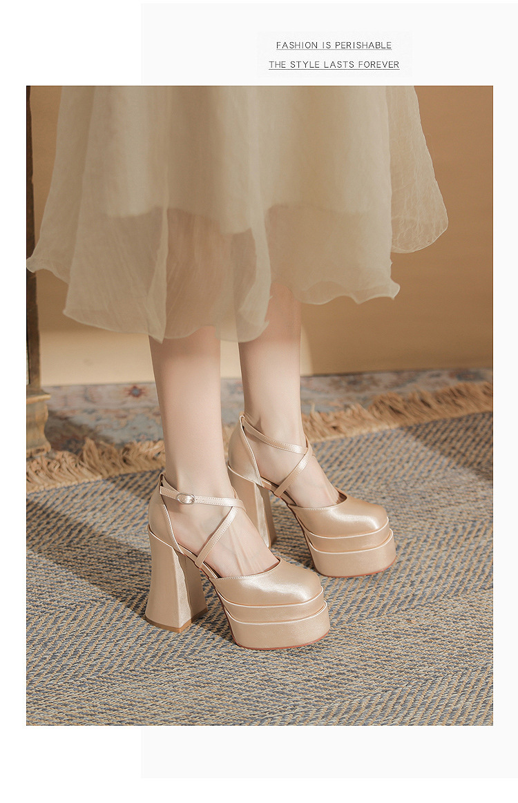 진강 MY12002 스퀘어 헤드 두꺼운 힐 빈 더블 레이어 방수 플랫폼 슈퍼 하이힐 신발 여성의 2024 웨딩 슈즈 신부 신발스토어 가기