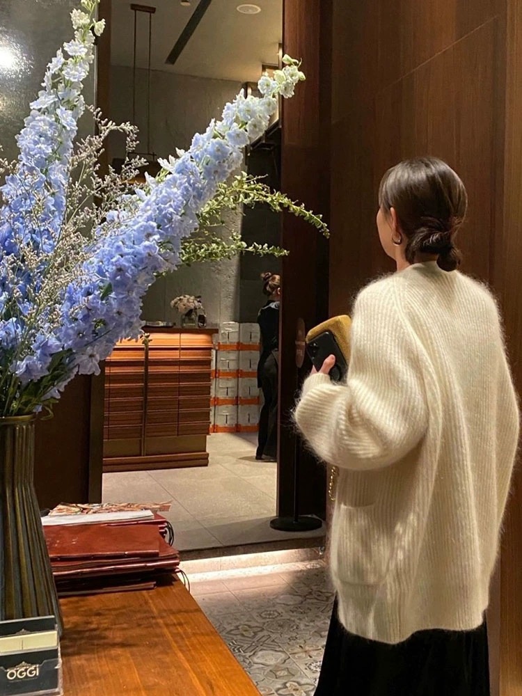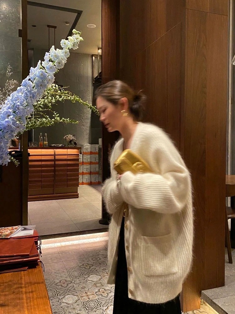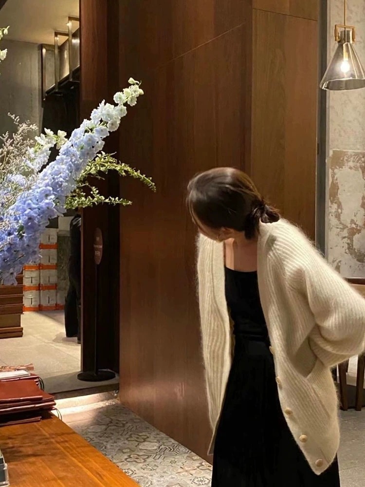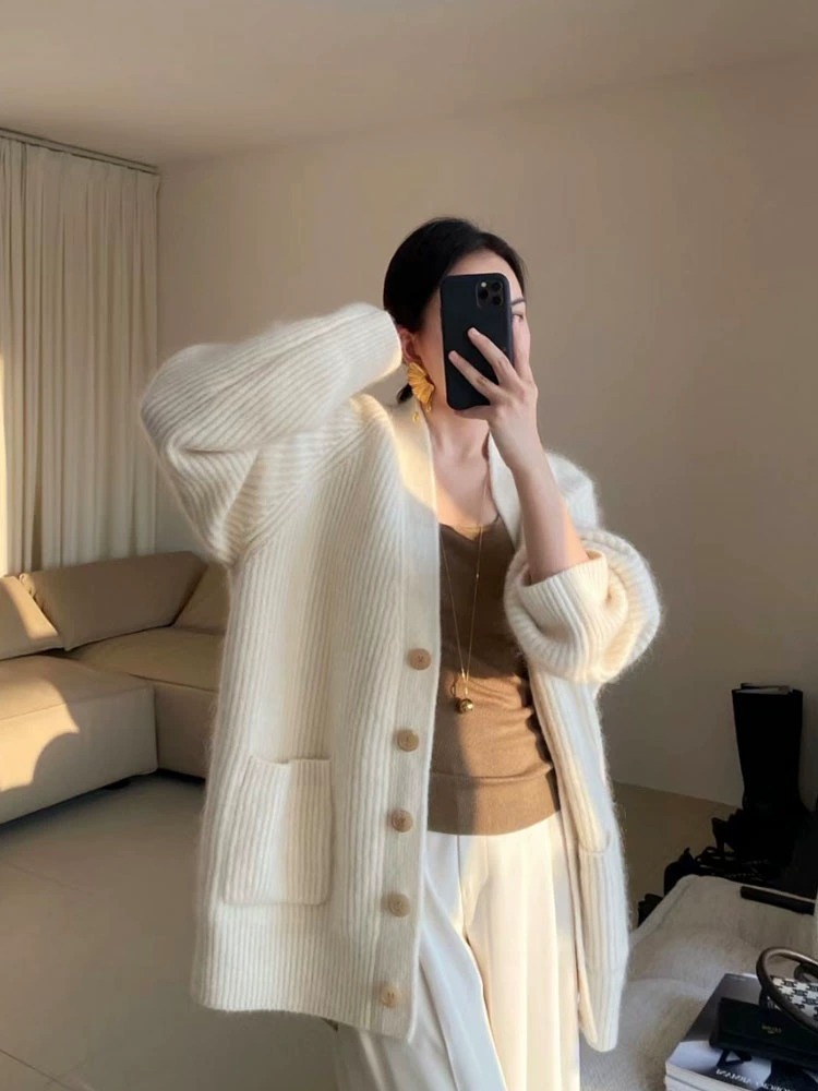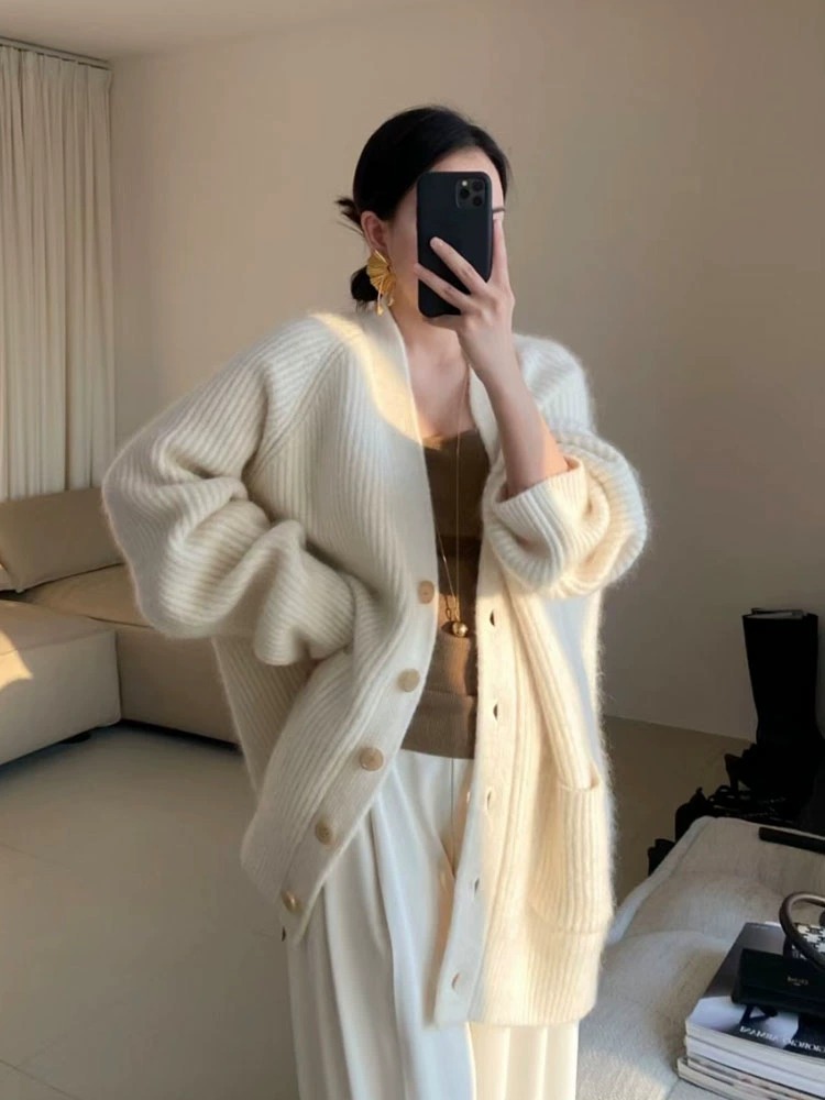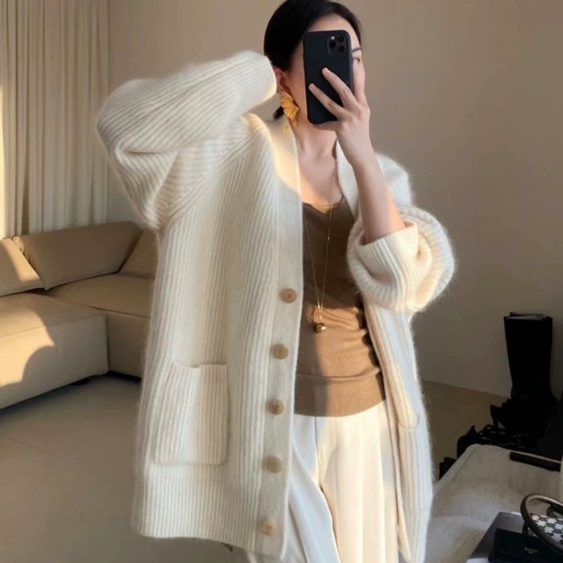 새로운 가을과 겨울 두꺼운 느슨한 게으른 스타일 부드러운 왁스 니트 V-넥 캐시미어 스웨터 중장 100 여성용 울 카디건스토어 가기