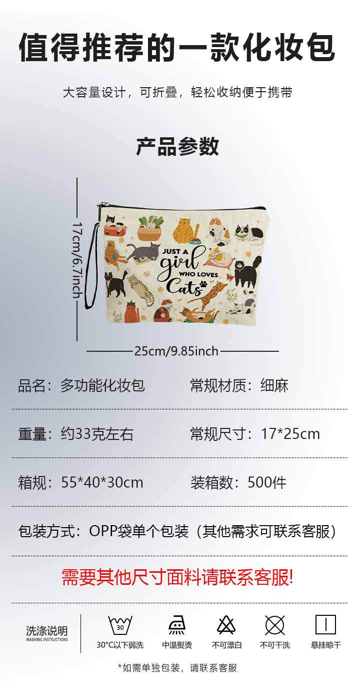 국경 간 폭발 귀여운 고양이 화장품 가방 야외 다기능 휴대용 저장 가방 홈 지퍼 세척 가방 재고스토어 가기