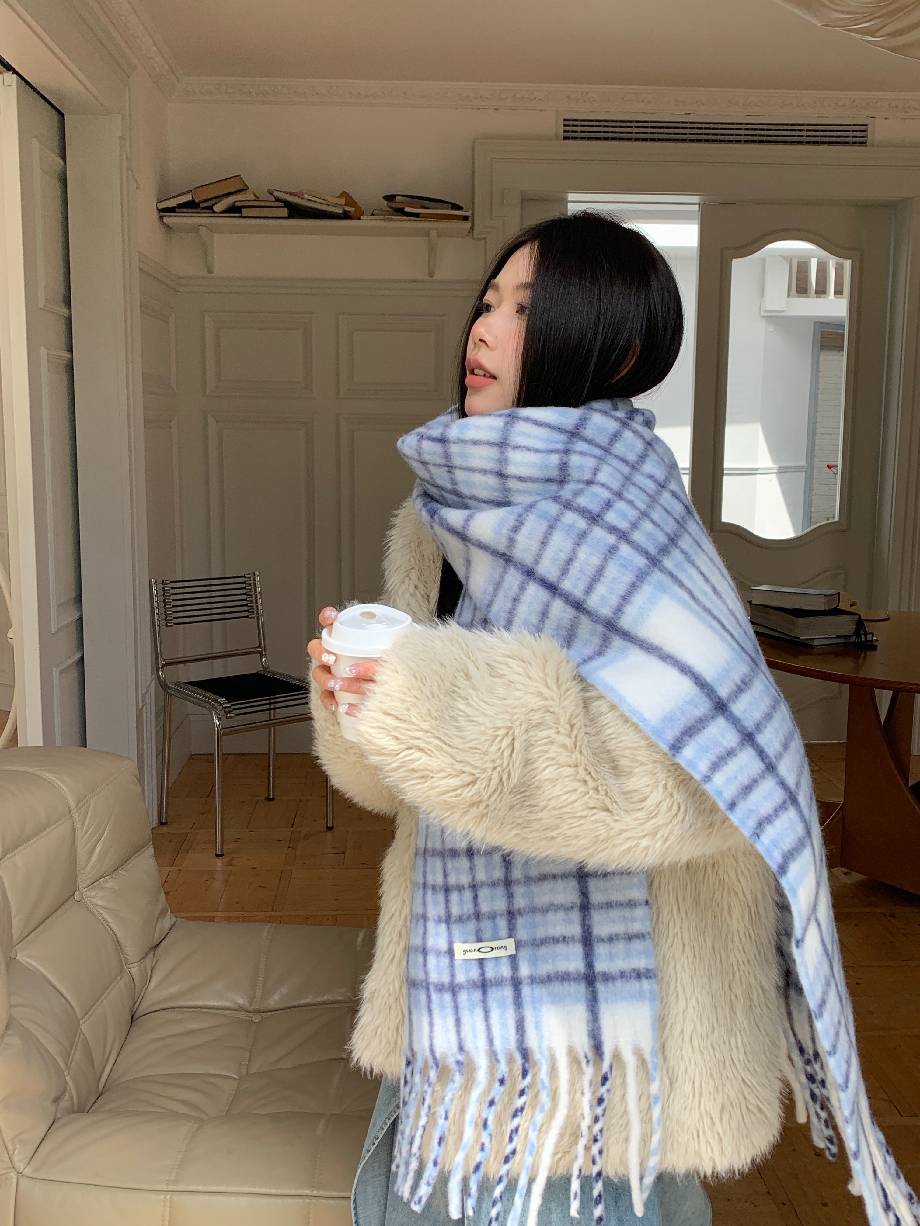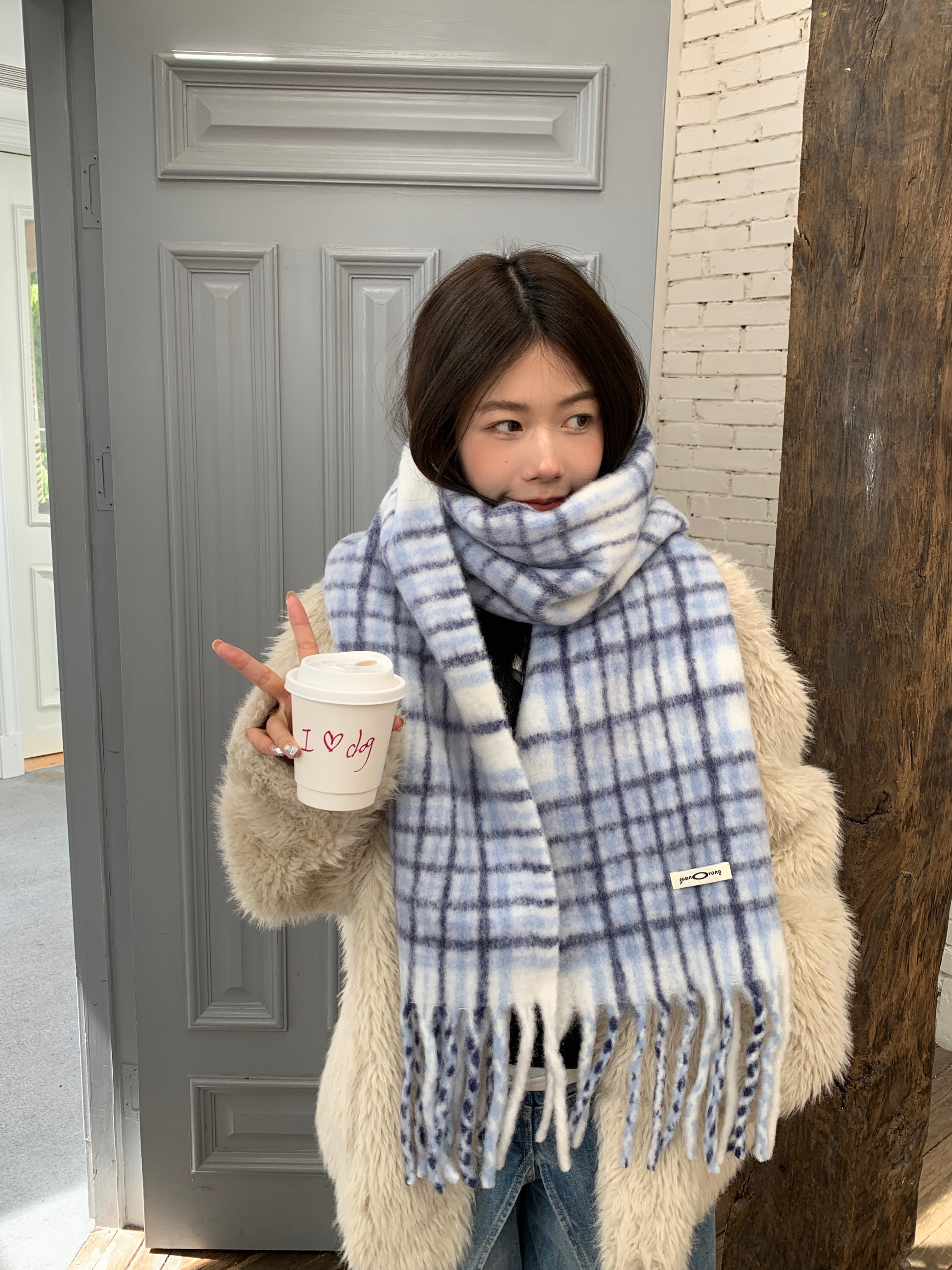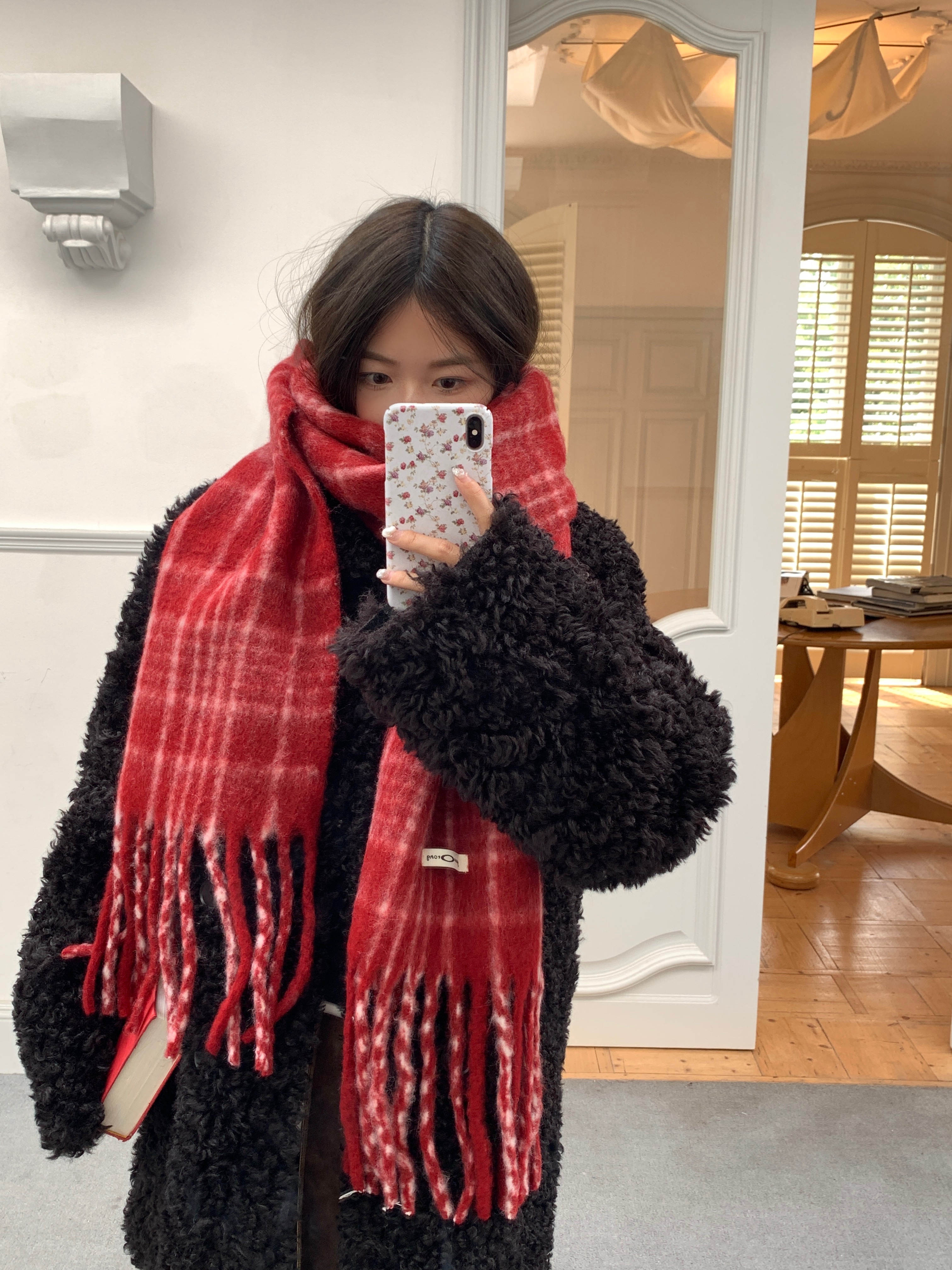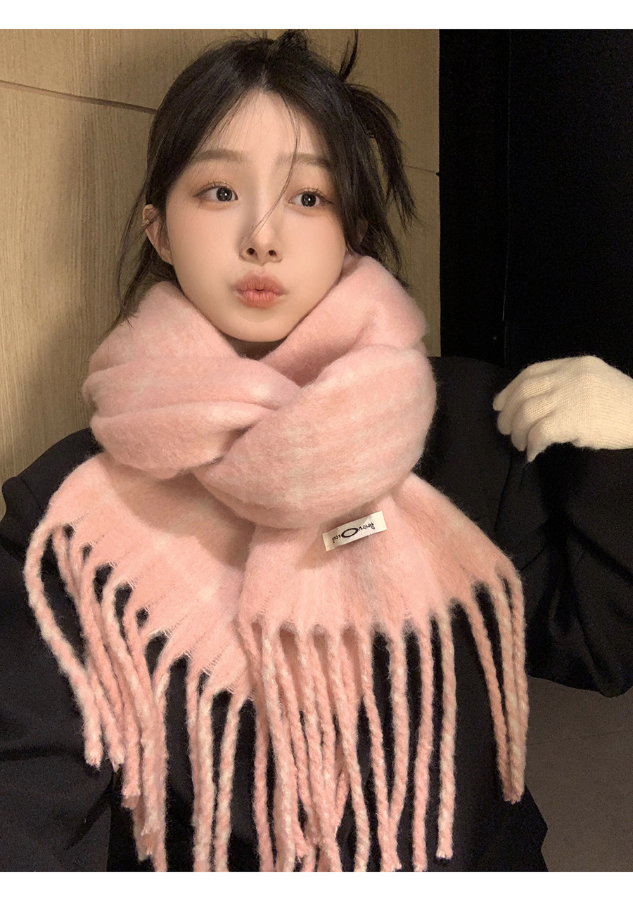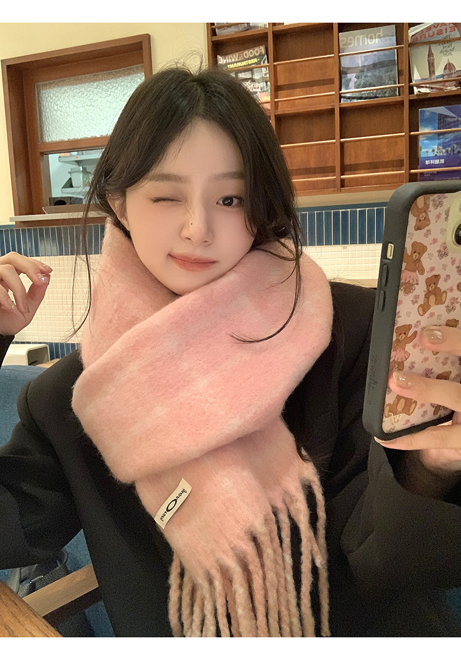 한국 스타일 단색 술 봉제 스카프 여성 겨울 야외 사이클링 학생 통근 따뜻한 방한 유행 스카프스토어 가기