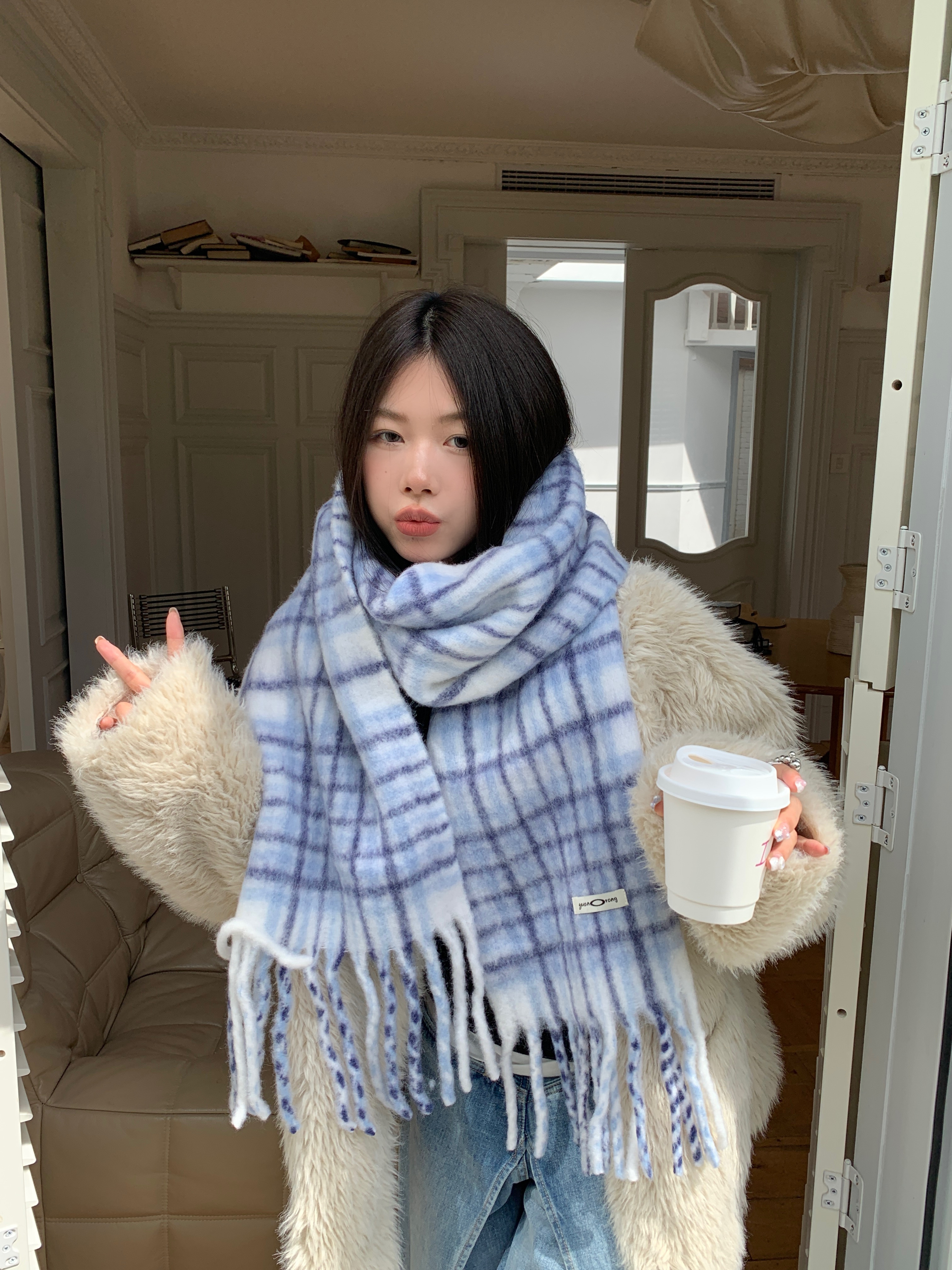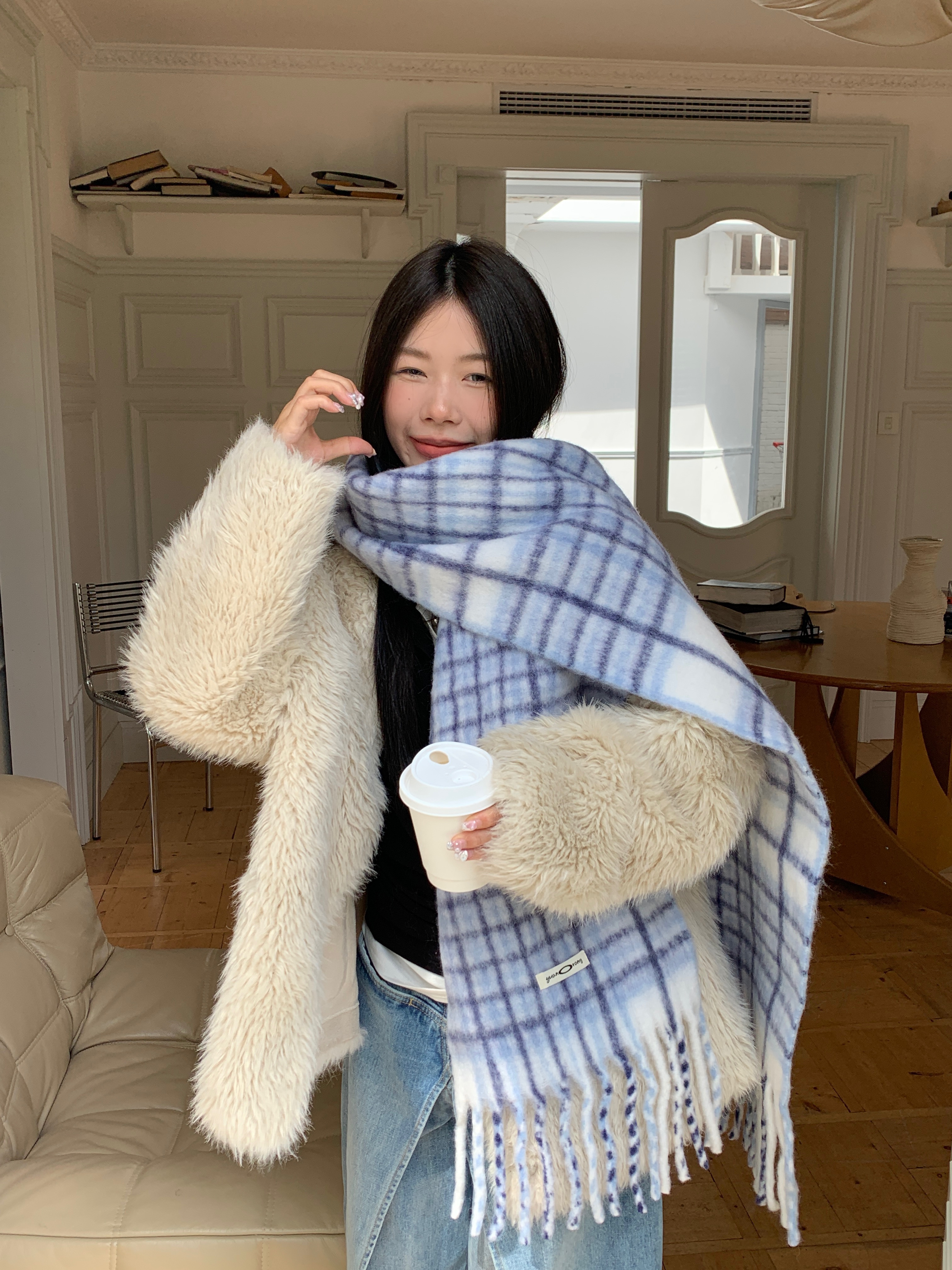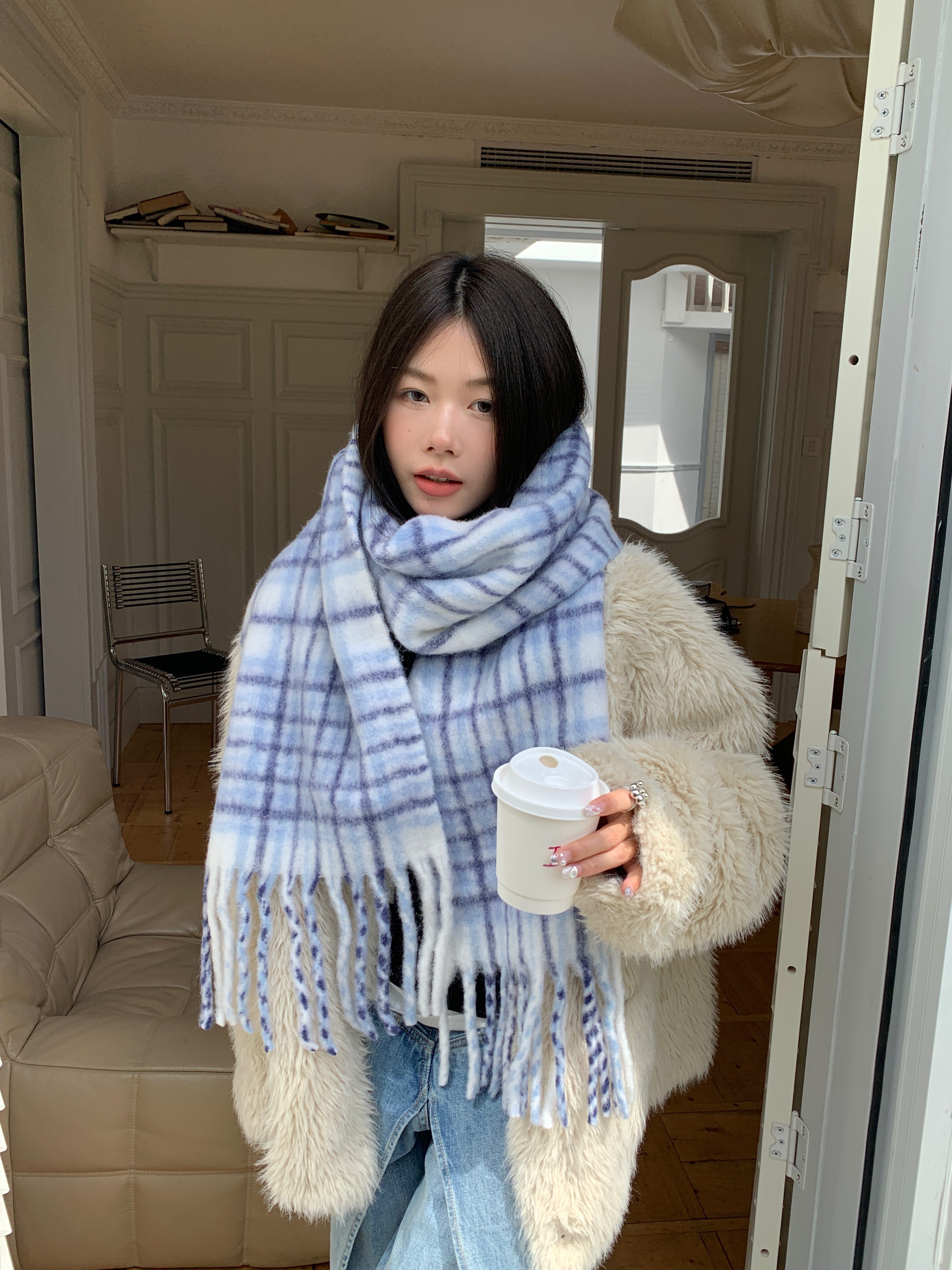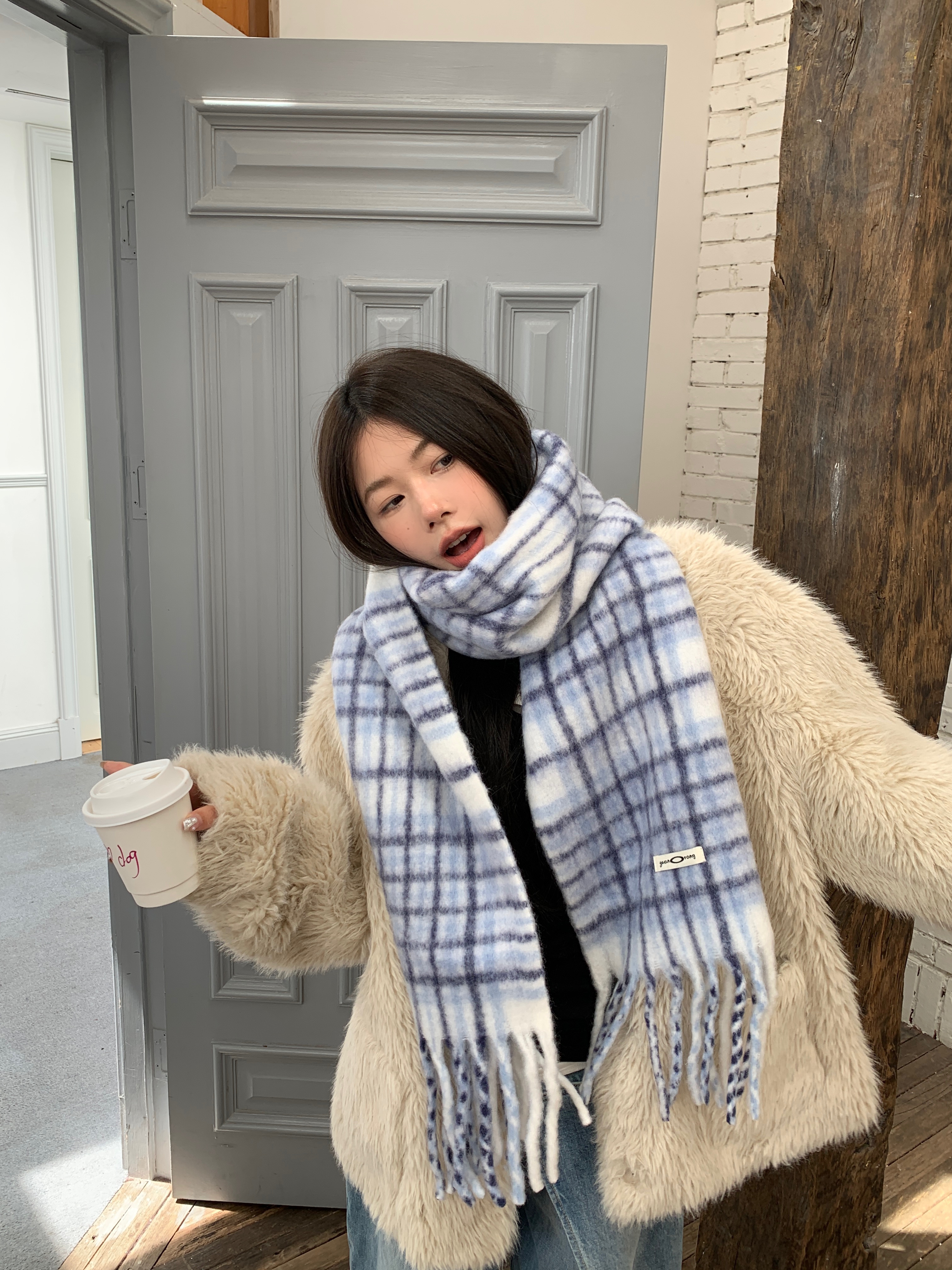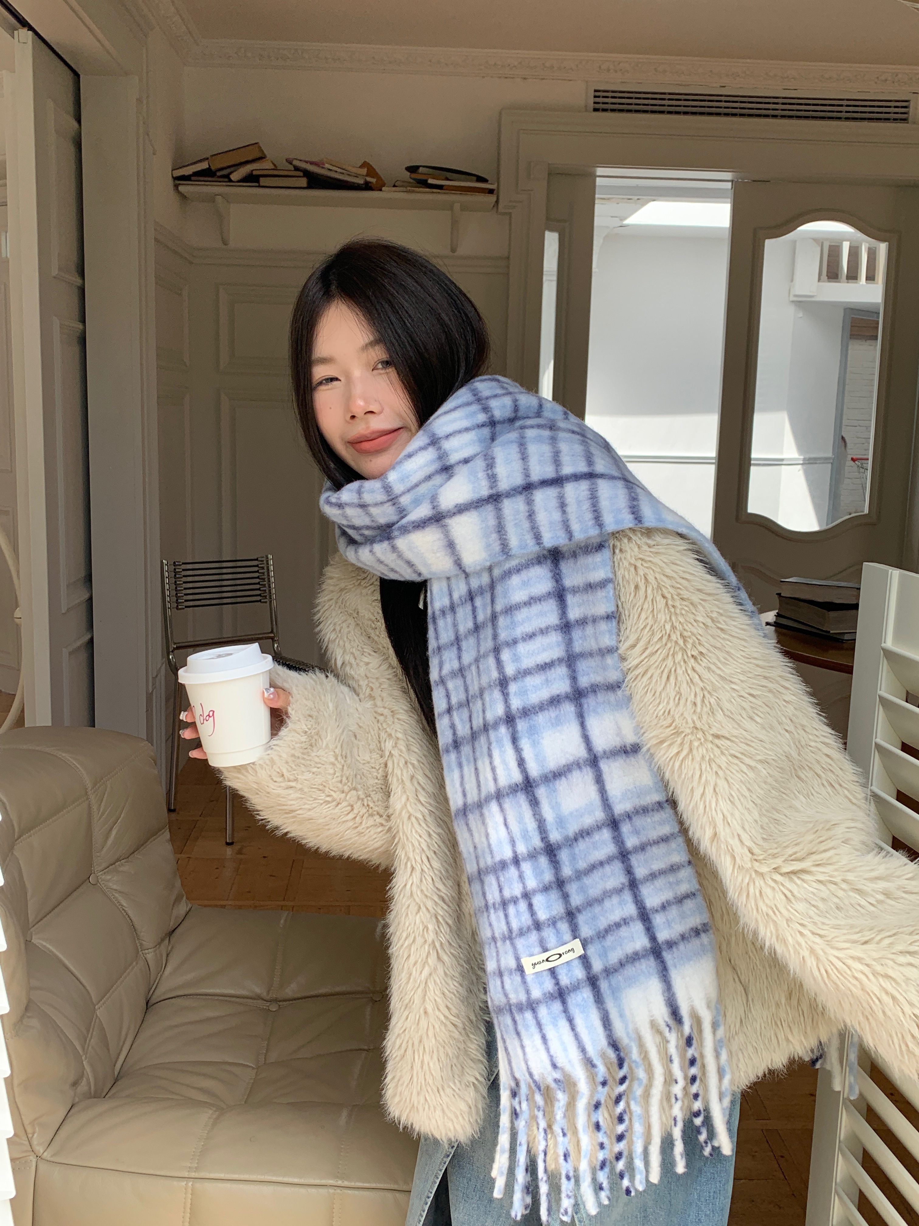 한국 스타일 단색 술 봉제 스카프 여성 겨울 야외 사이클링 학생 통근 따뜻한 방한 유행 스카프스토어 가기